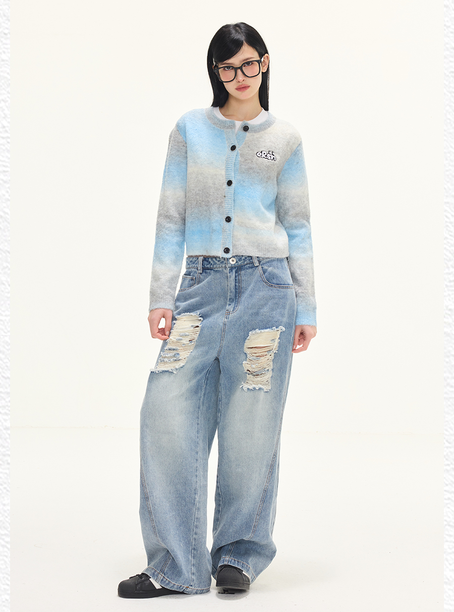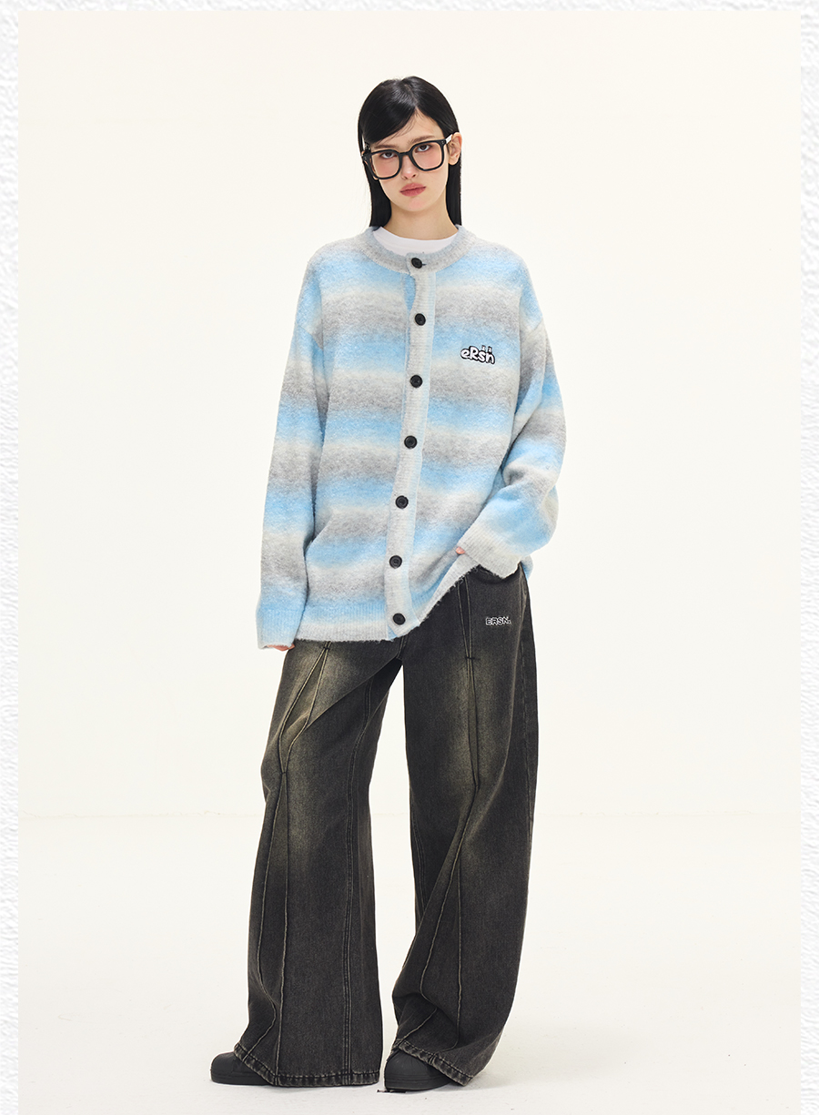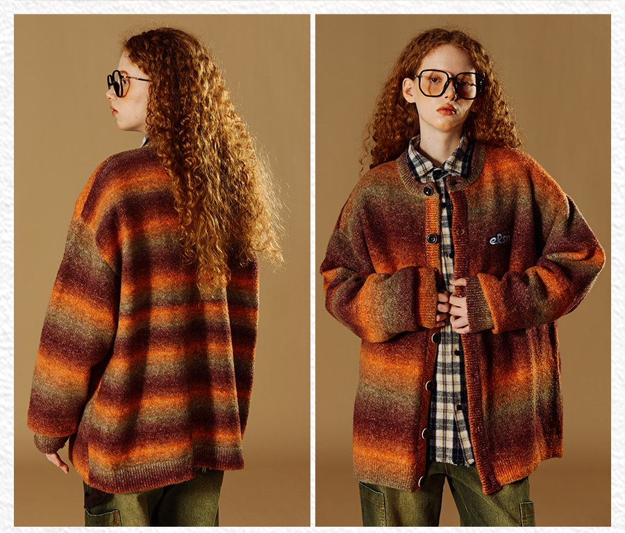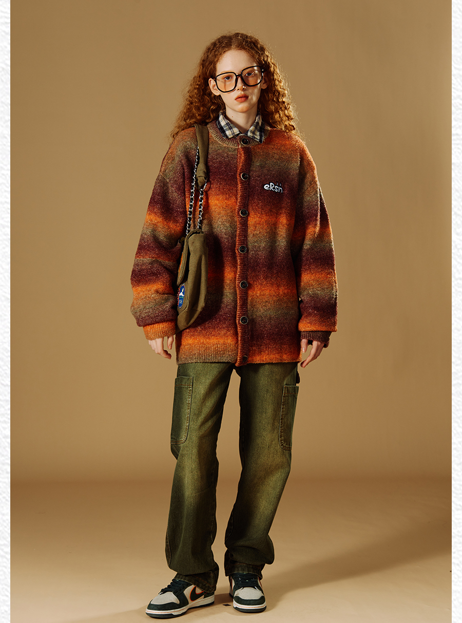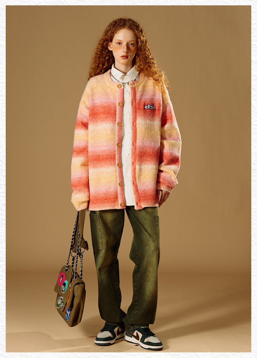 [Same Style as Huang Zihongfan] Er Rainbow Sweater Cardigan for Men 2025 Spring and Autumn Campus Trendy Brand Knitted Jacket