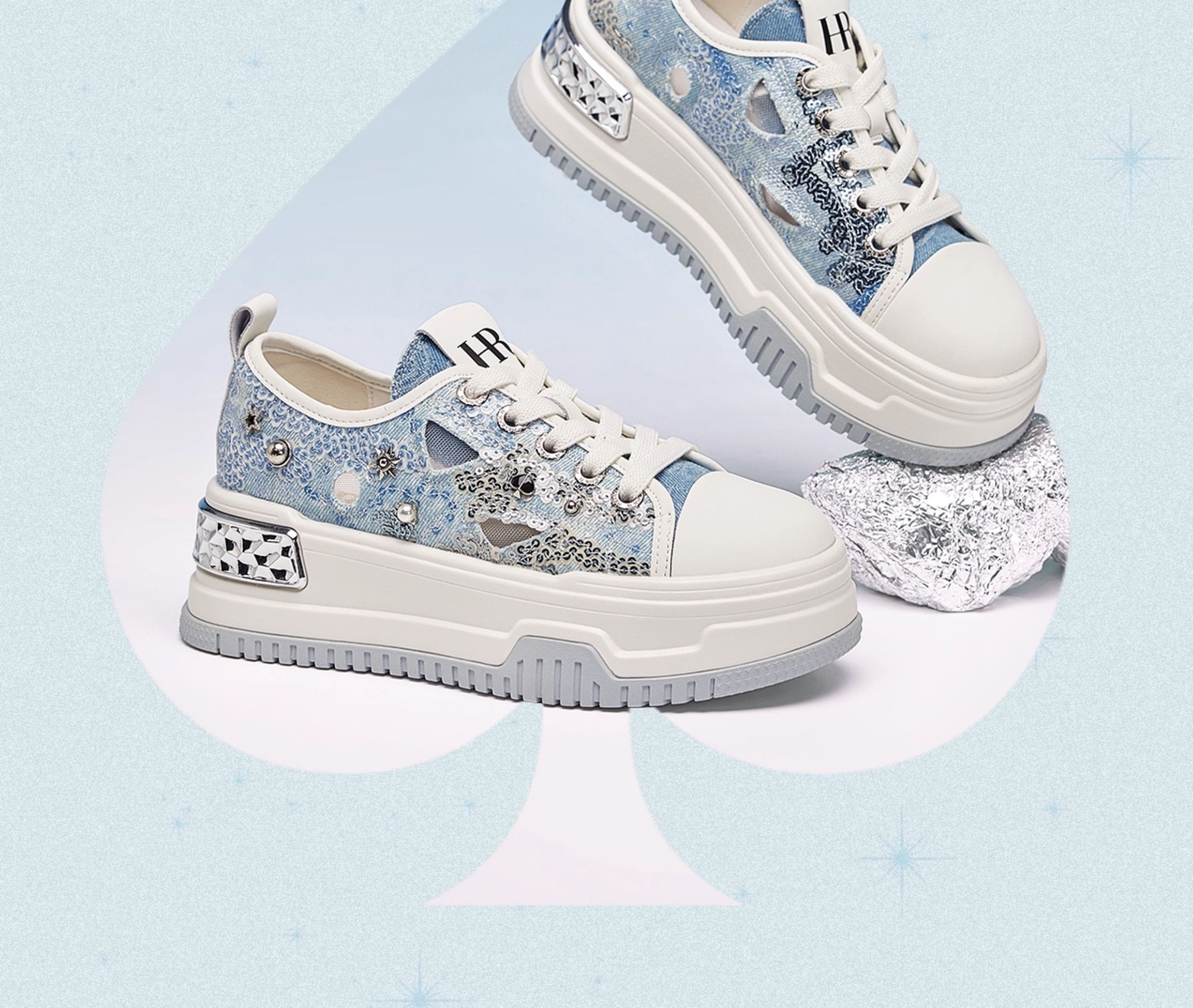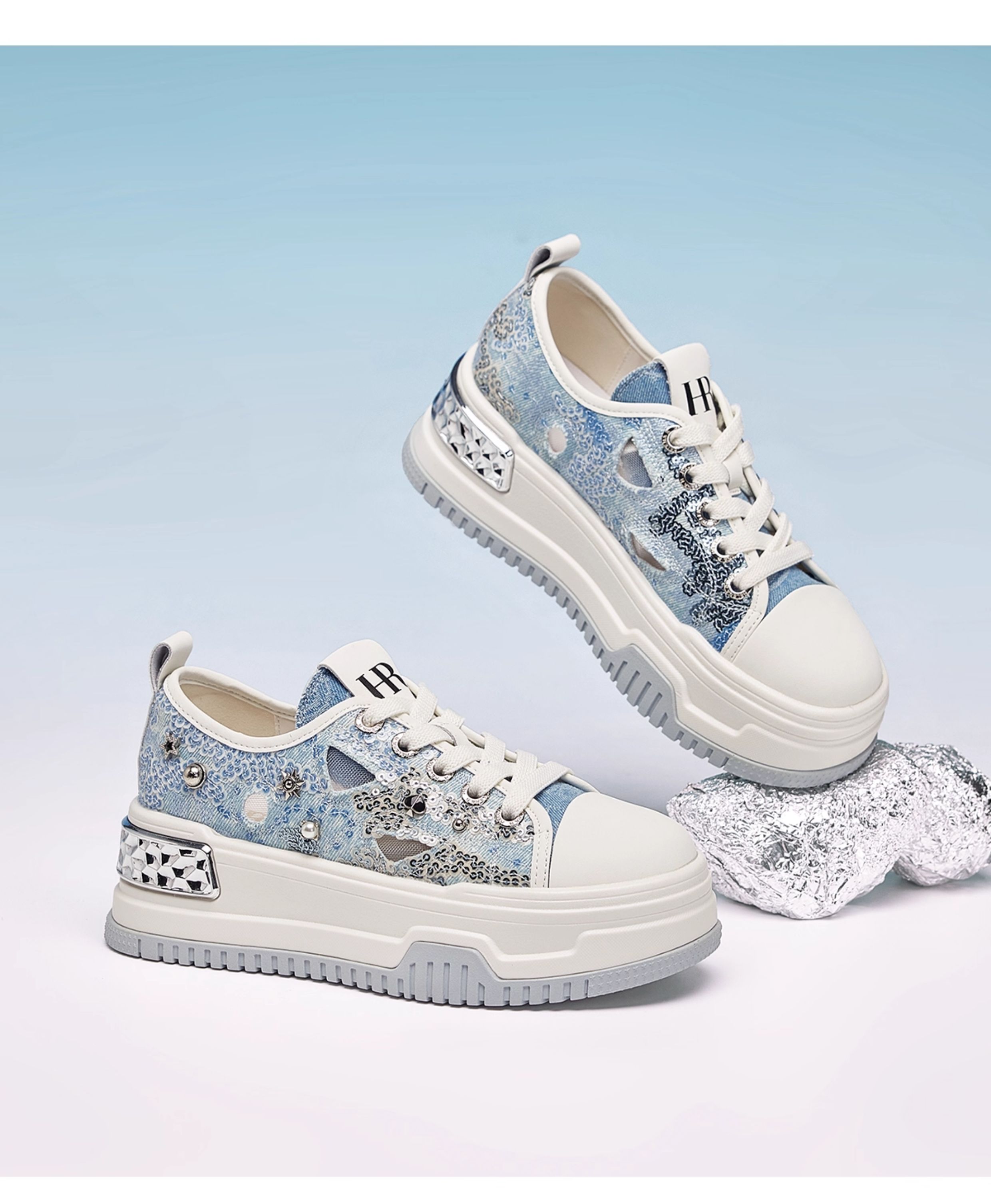 Hr Helena Sneakers 2025 Summer New Style Ripped Denim Canvas Shoes Thick-Soled Niche Casual Women's Shoes Breathable