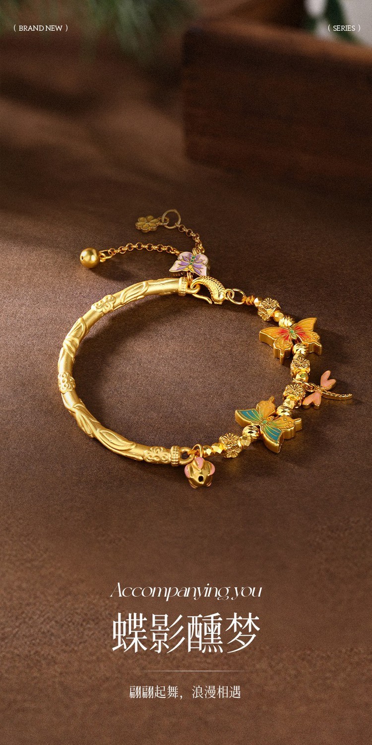 Jinliufu Auspicious S925 Silver Butterfly Enamel Half Bangle Bracelet Colorful Silver Bracelet Jewelry Birthday Gift for Girlfriend