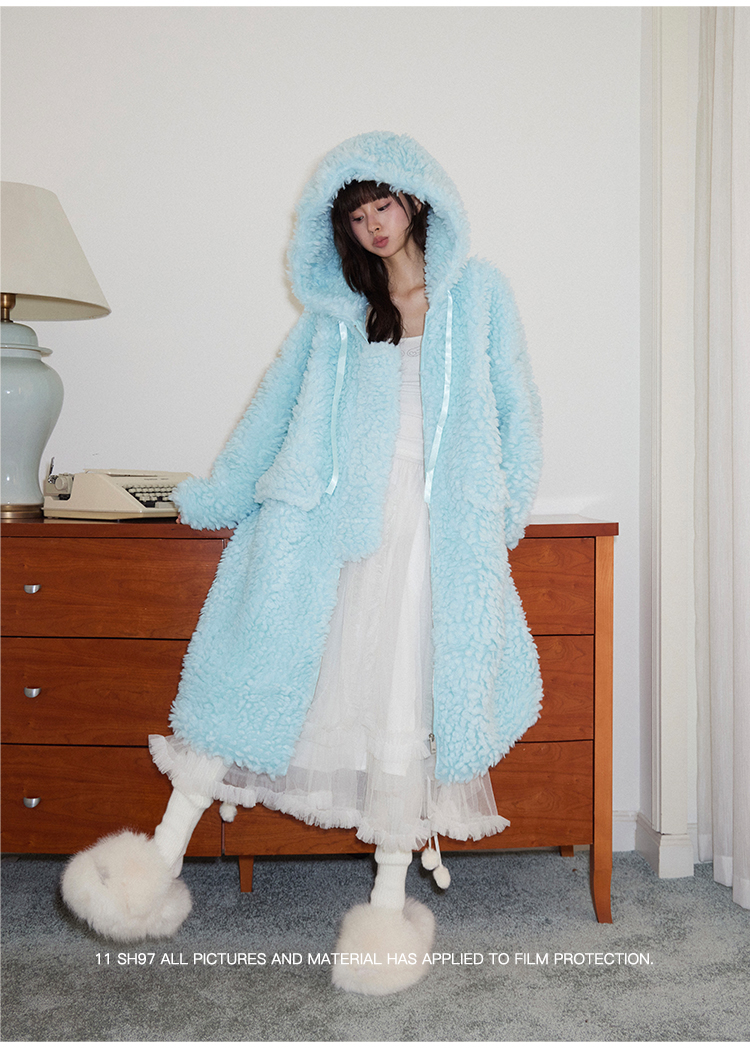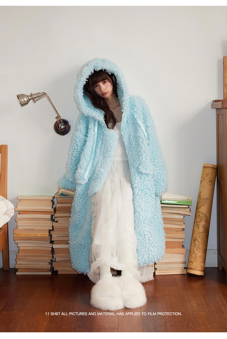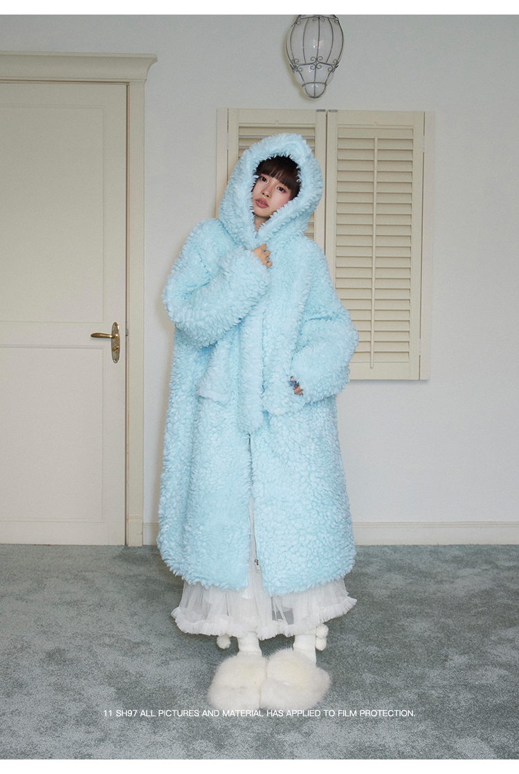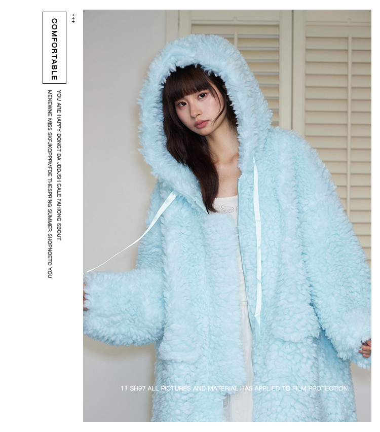 [in Stock] 11Sh97 Women's Cotton Jacket, Warm, Thick, Loose, Soft, Fluffy, Mid-Length Hooded Coat, Cotton Padded Jacket