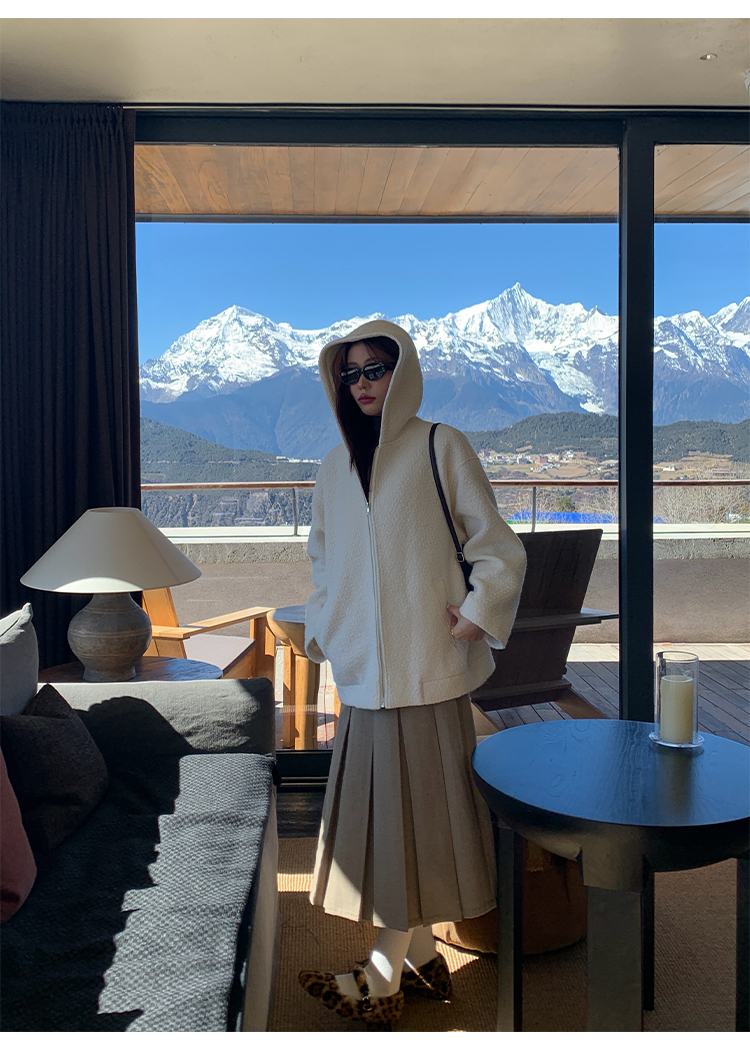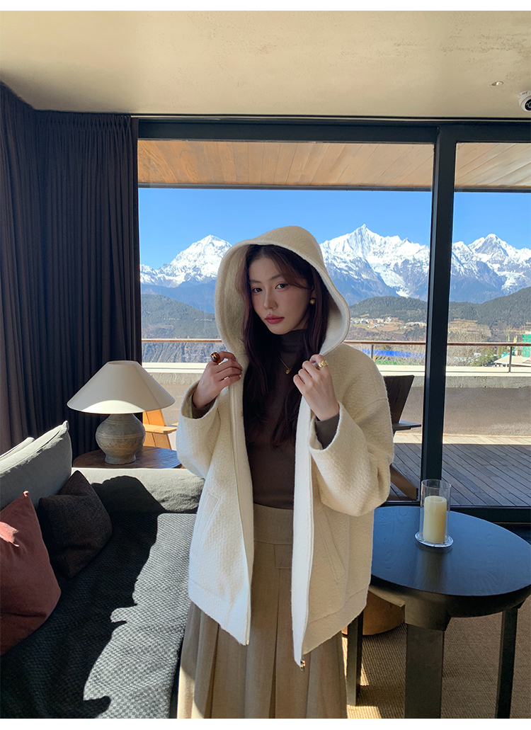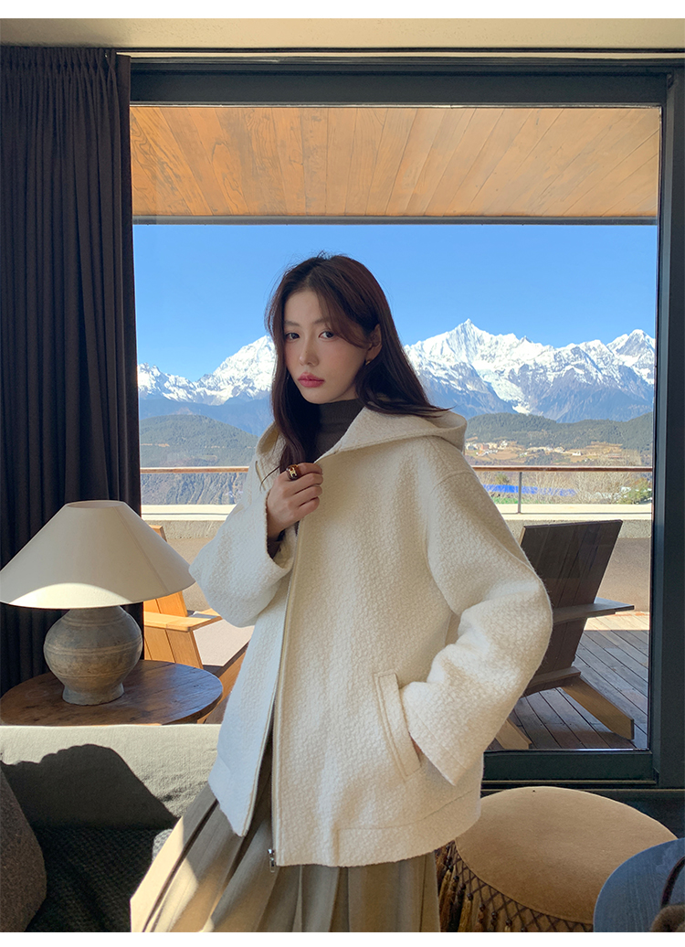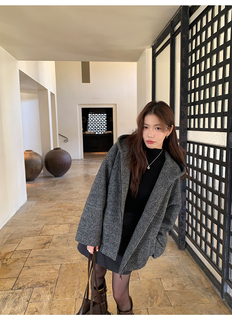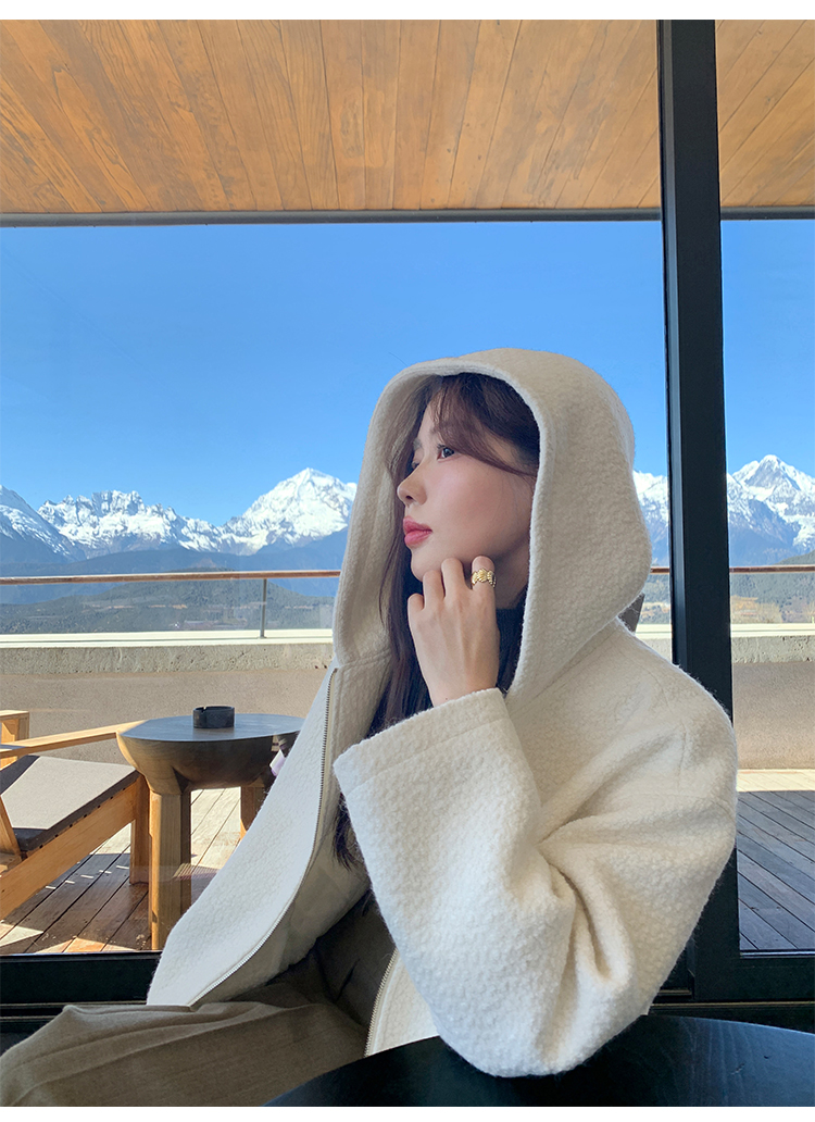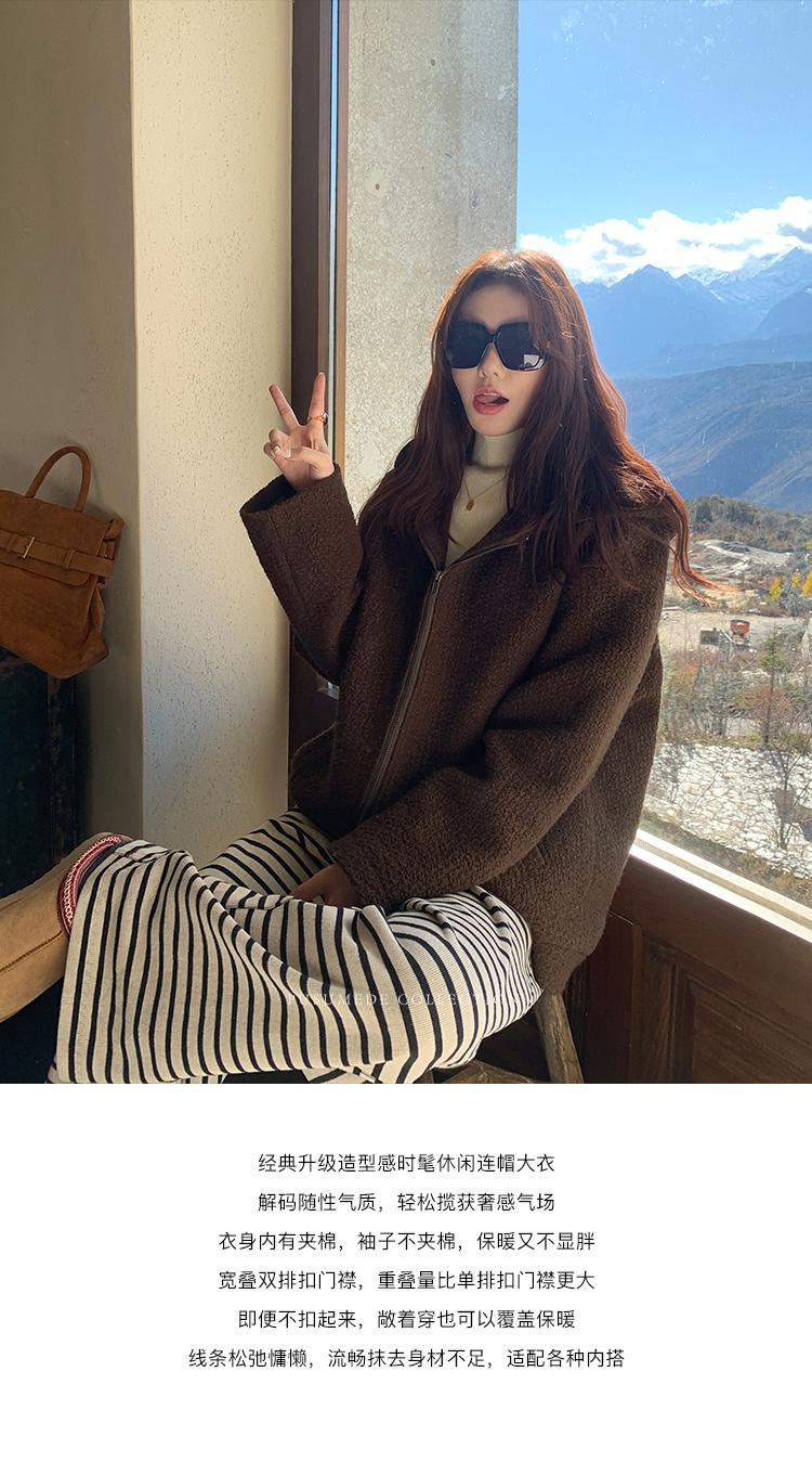 Pusumede Hooded Wool Jacket for Women, New Autumn and Winter Style, Quilted Loose Casual Woolen Zipper Cardigan Top