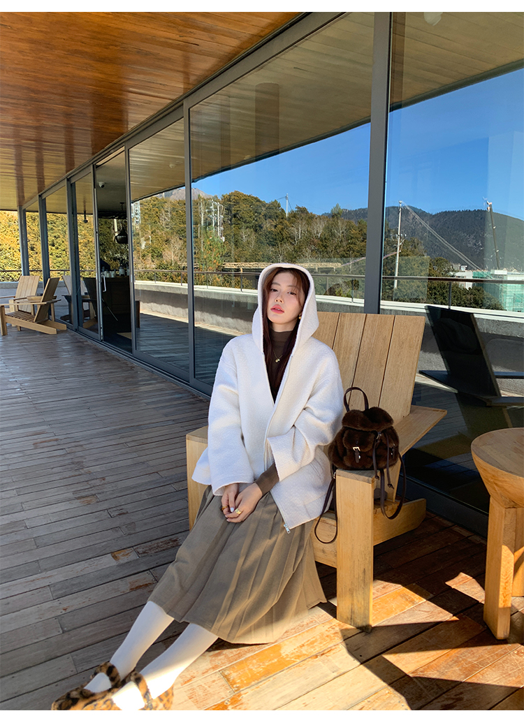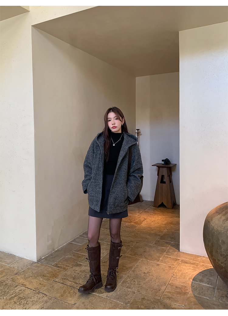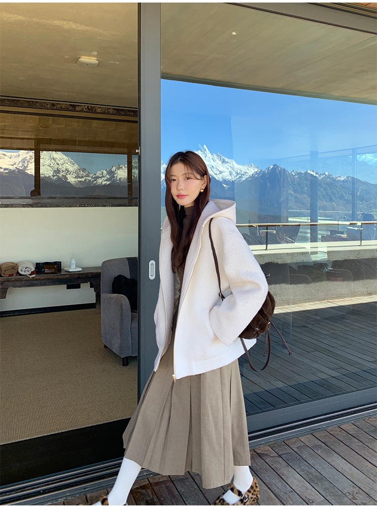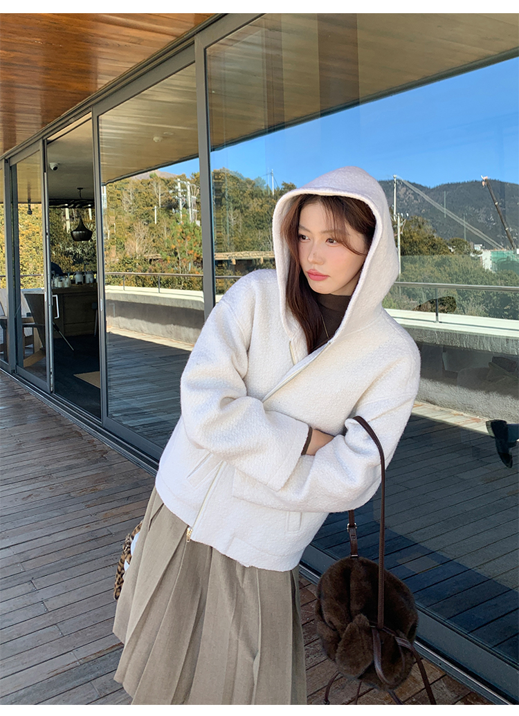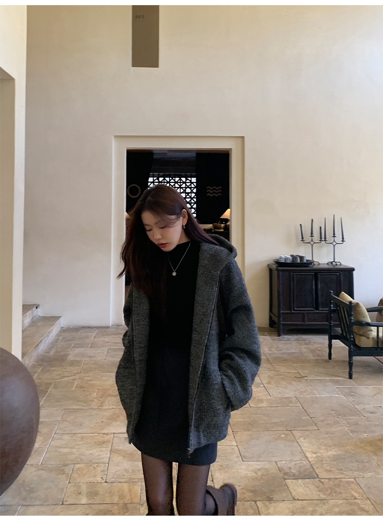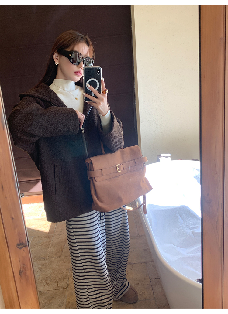 Pusumede Hooded Wool Jacket for Women, New Autumn and Winter Style, Quilted Loose Casual Woolen Zipper Cardigan Top