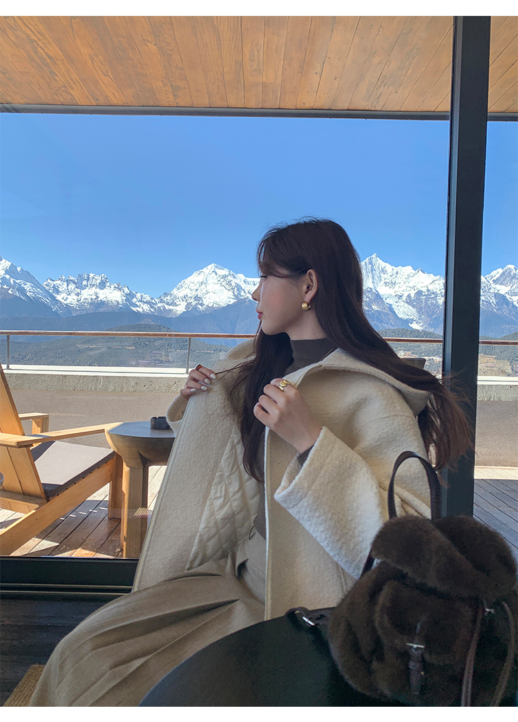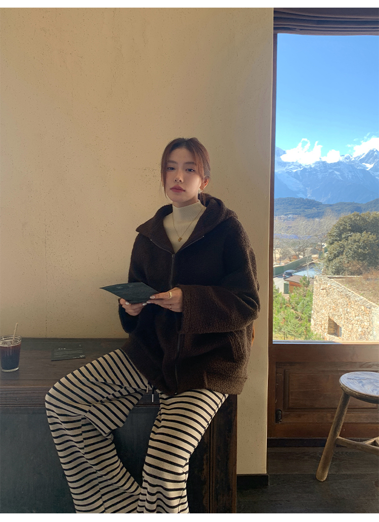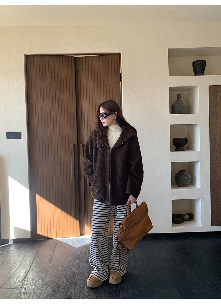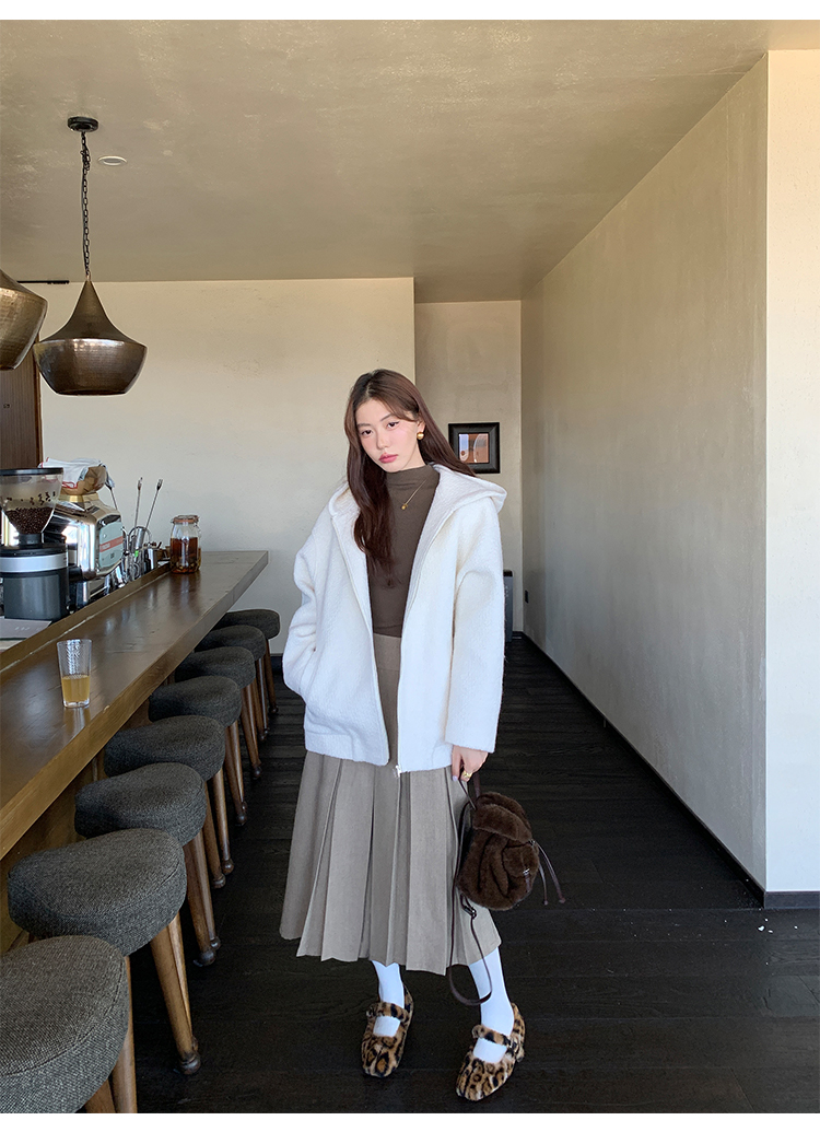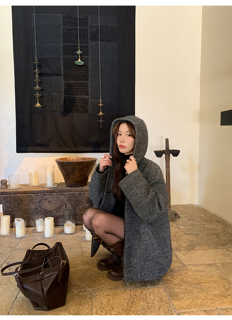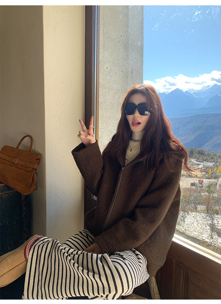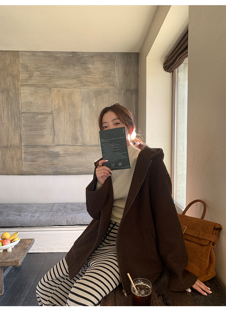 Pusumede Hooded Wool Jacket for Women, New Autumn and Winter Style, Quilted Loose Casual Woolen Zipper Cardigan Top