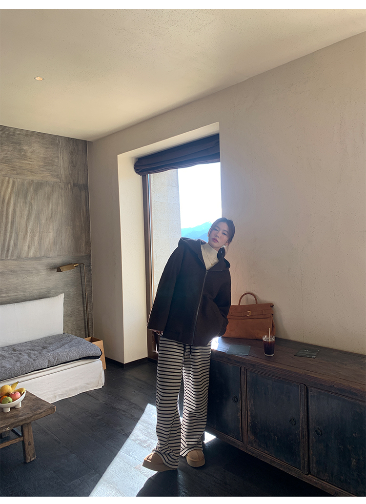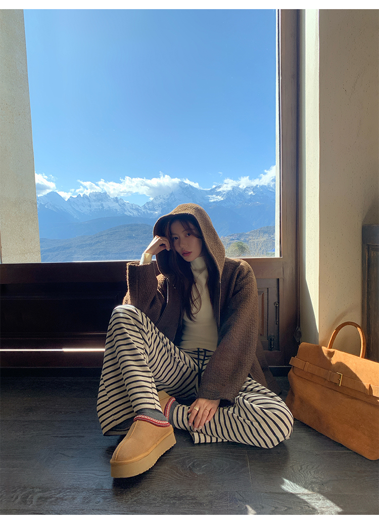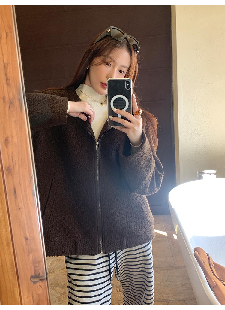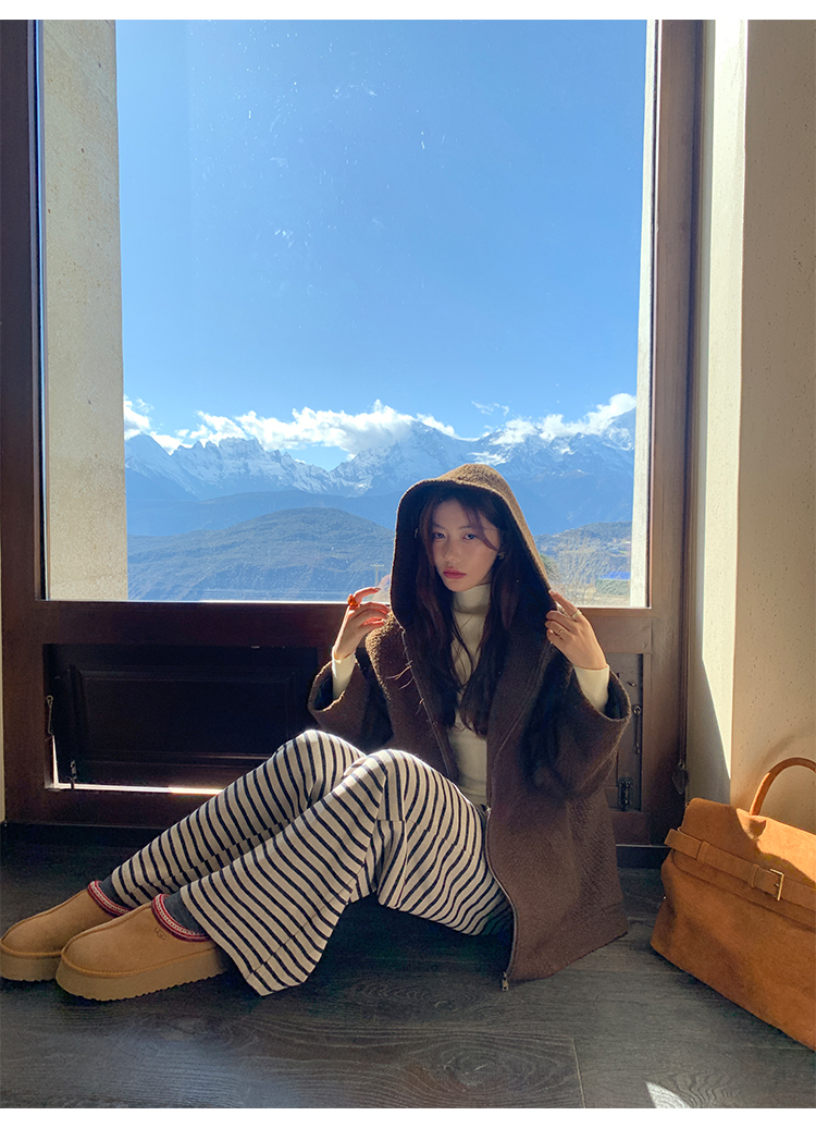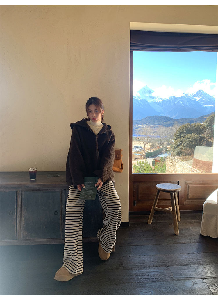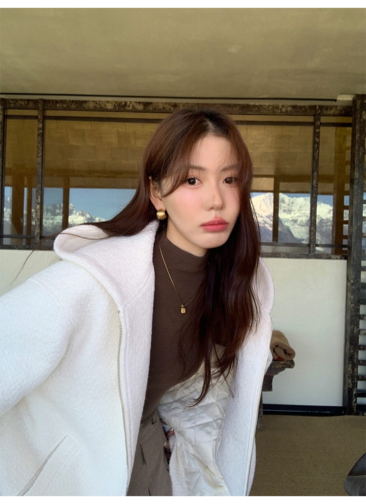 Pusumede Hooded Wool Jacket for Women, New Autumn and Winter Style, Quilted Loose Casual Woolen Zipper Cardigan Top