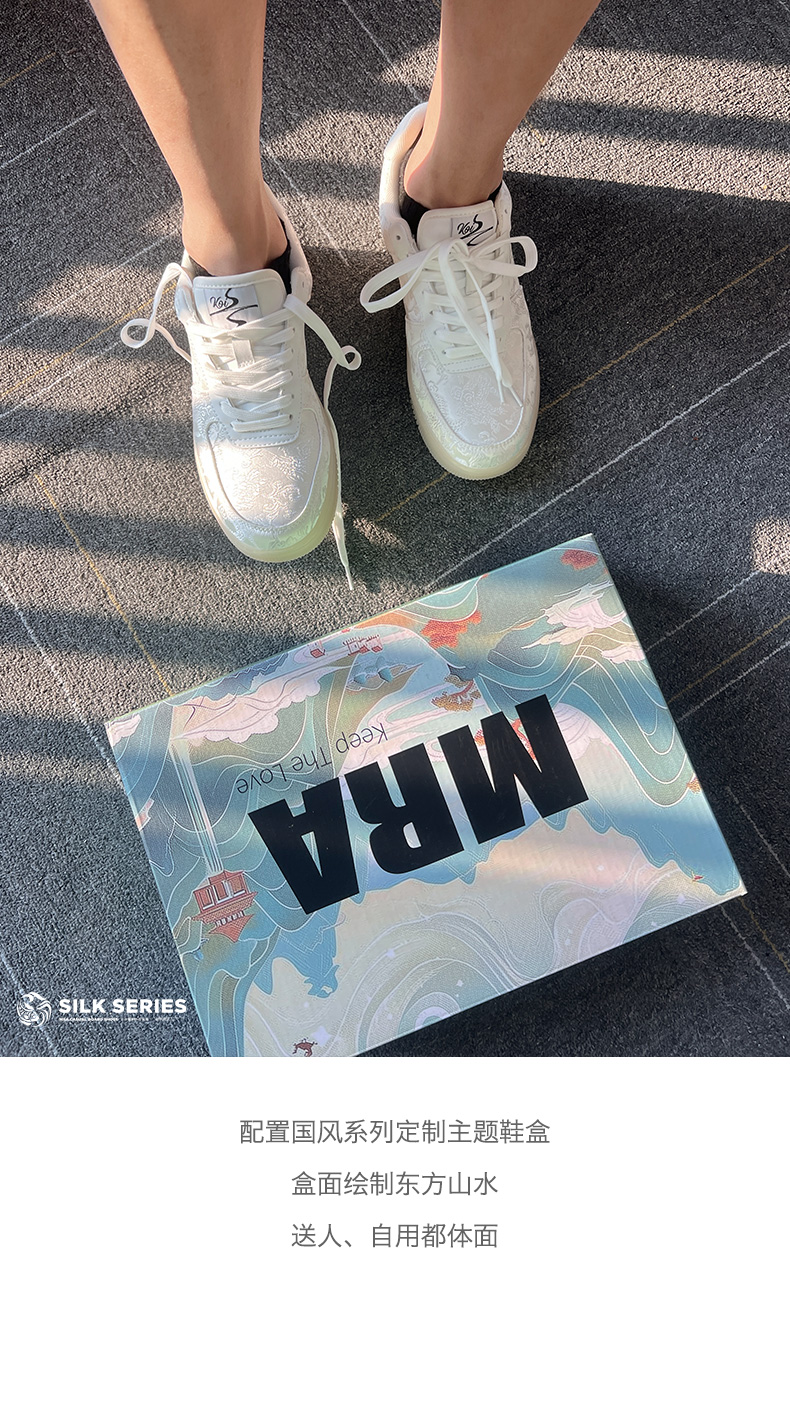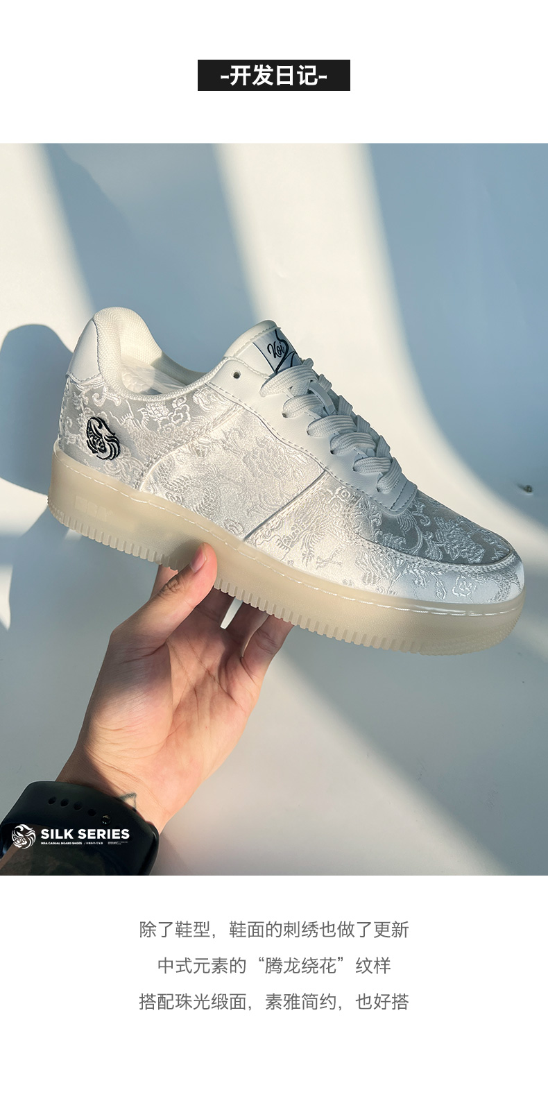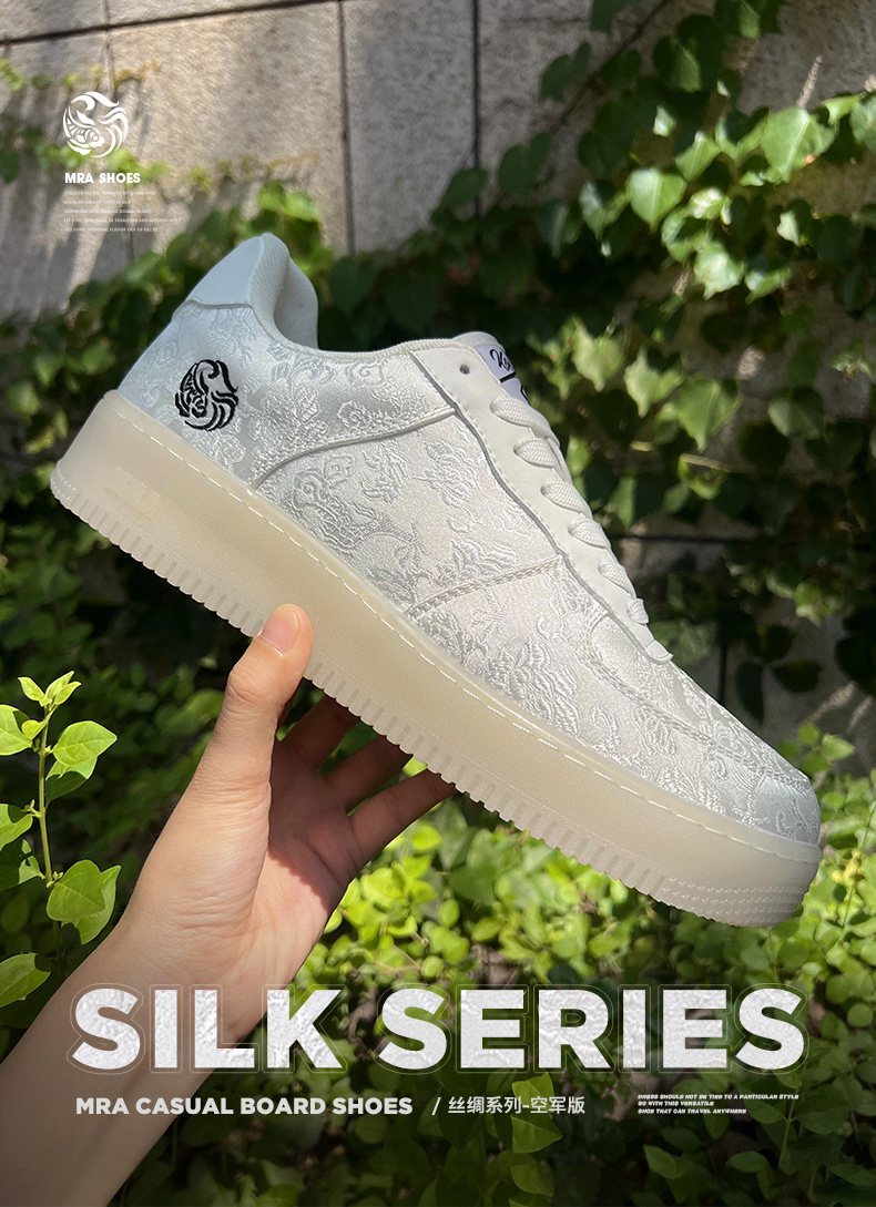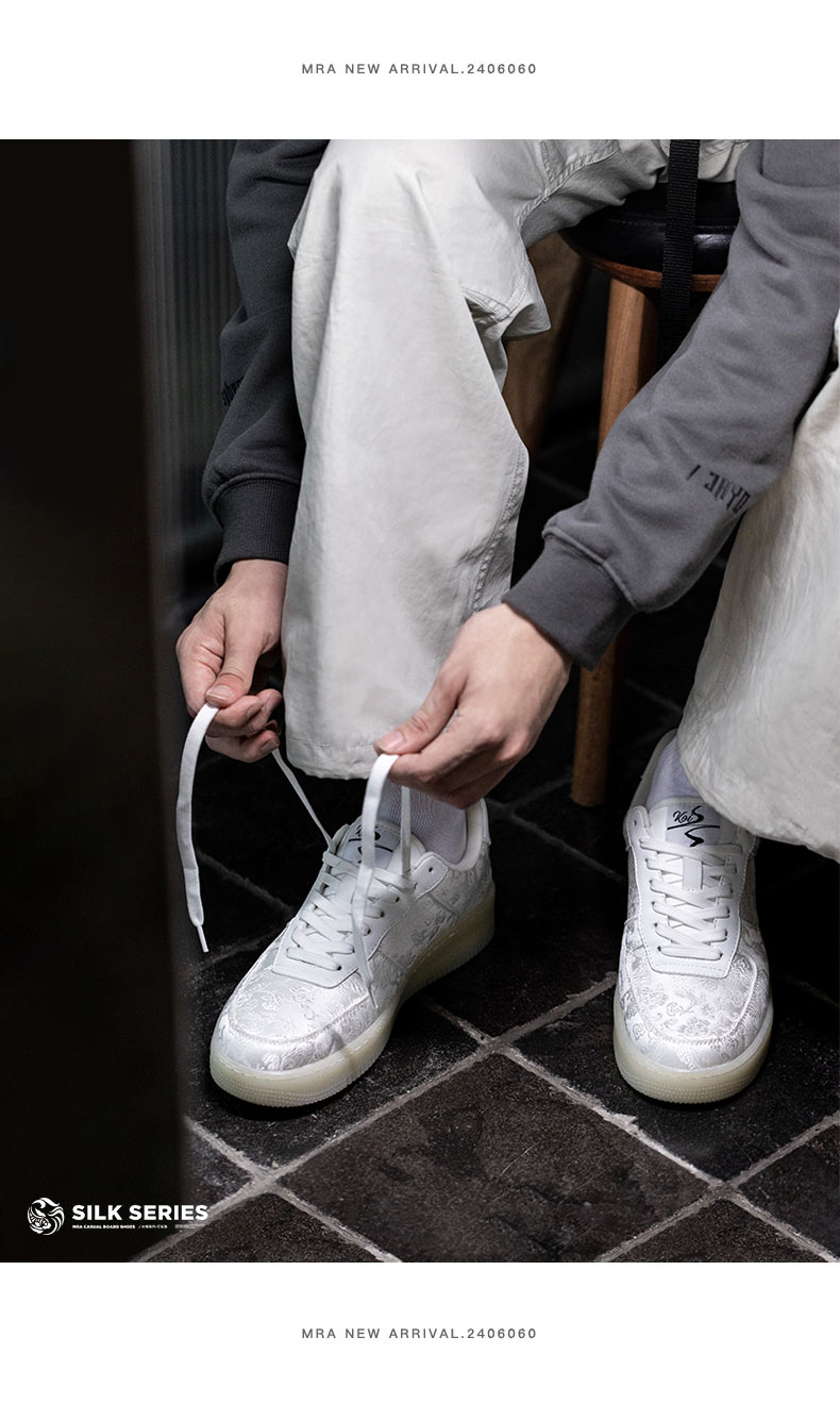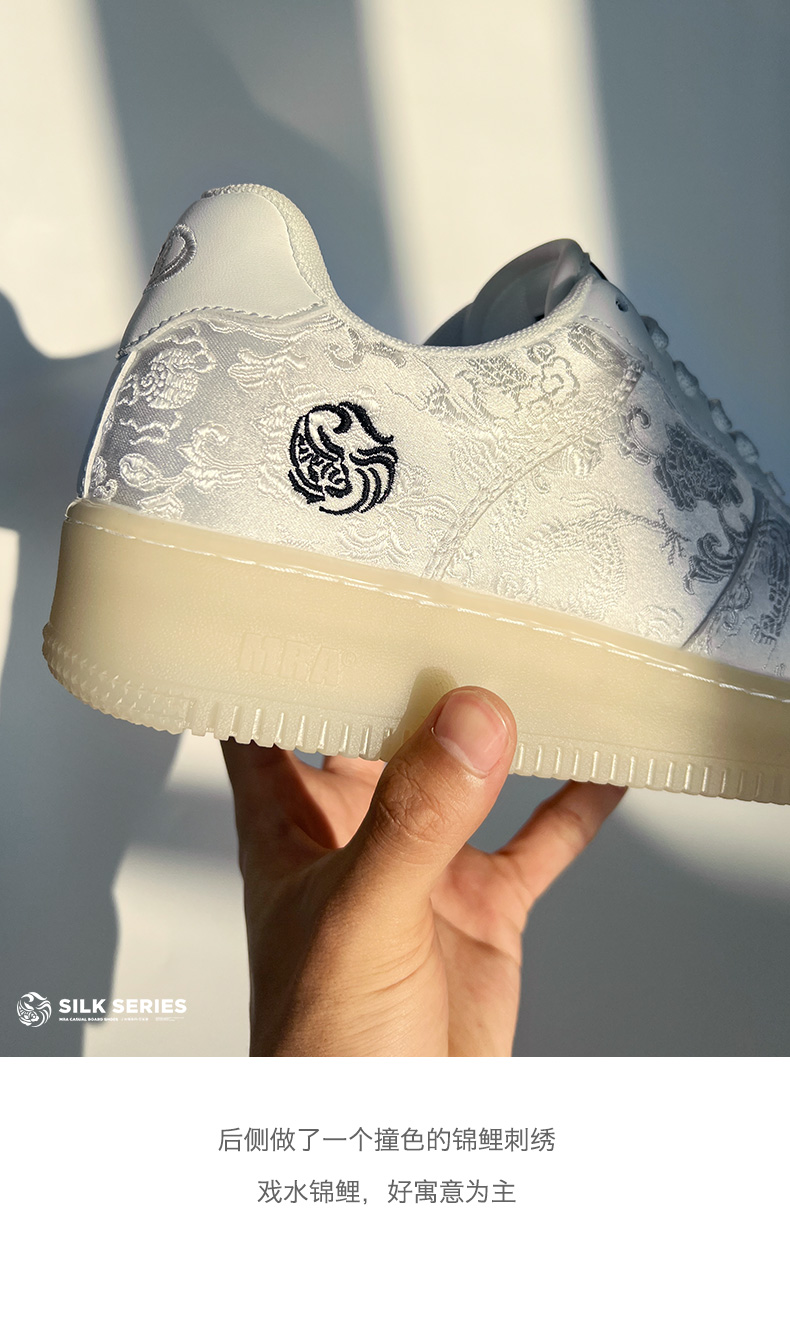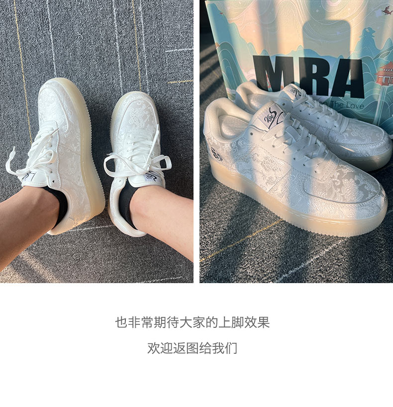 Mra Koi Edition Air Force Silk Sneakers Men's Shoes Niche Design Chinese Style Embroidery White Shoes Thick Sole Casual Trendy Shoes
