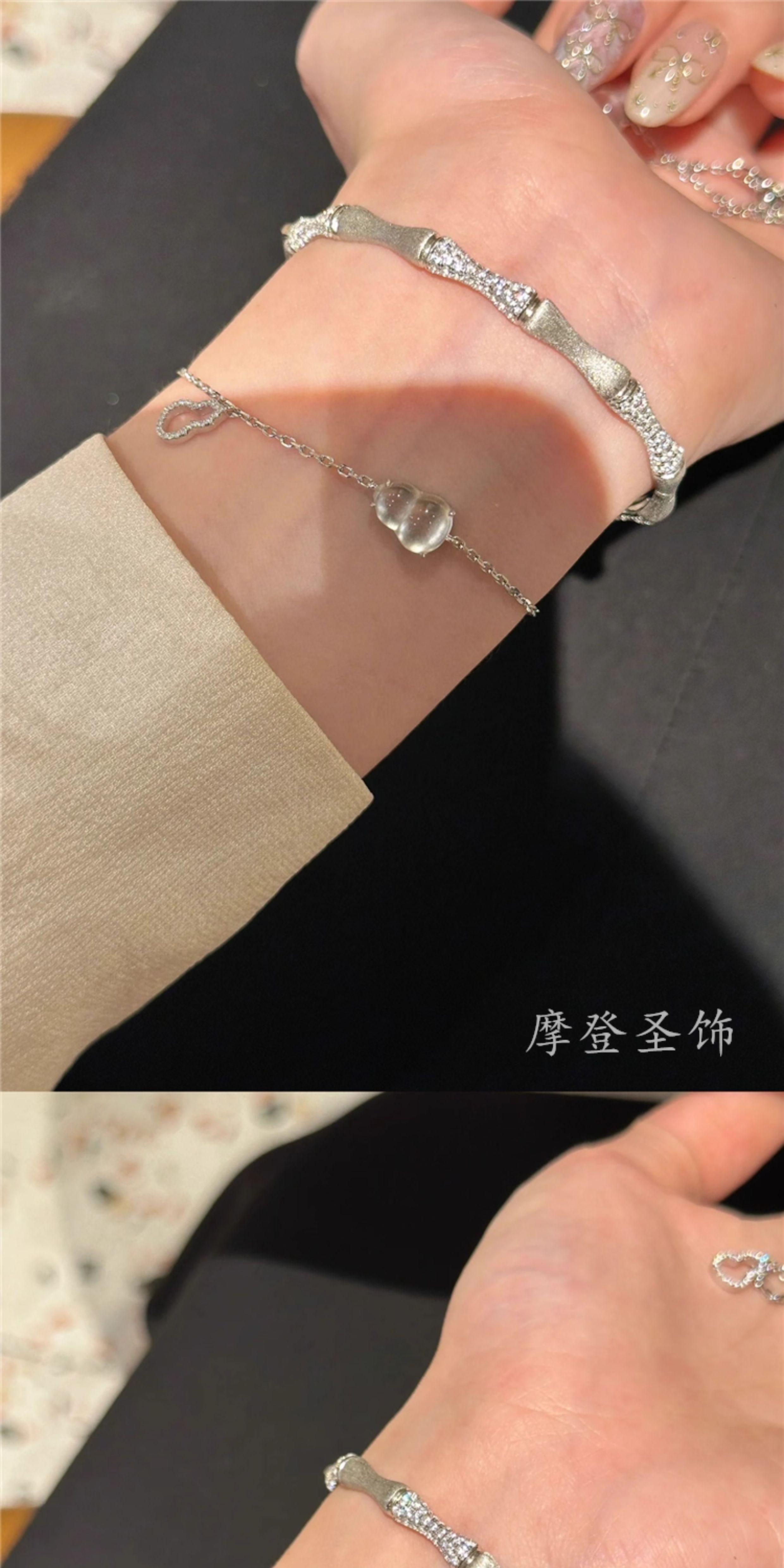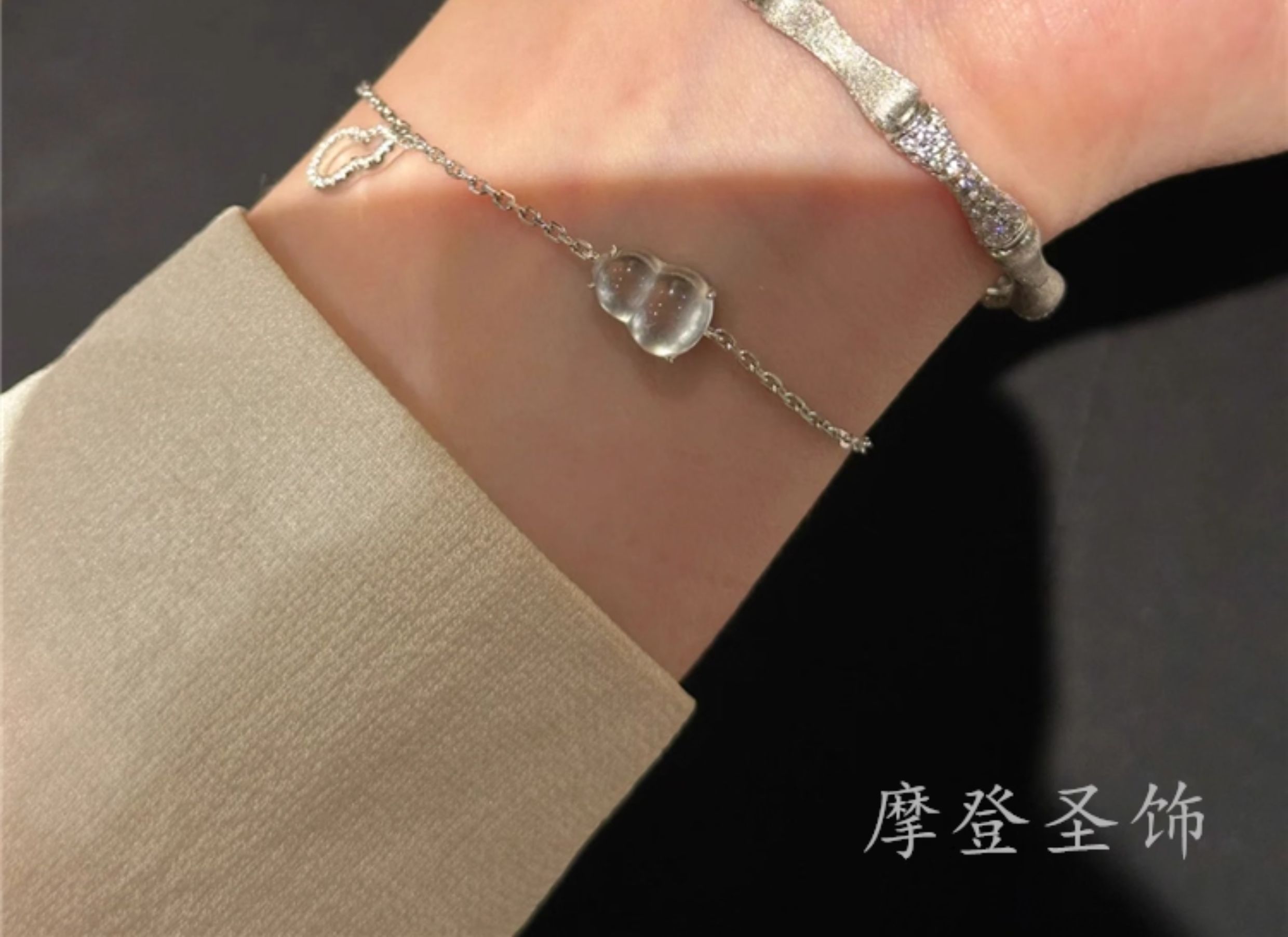 Modern Sacred Jewelry S925 Sterling Silver Water Bubble Jade Gourd Bracelet, Forest Style, Cool and Versatile, Elegant Gift for Girlfriend's Birthday