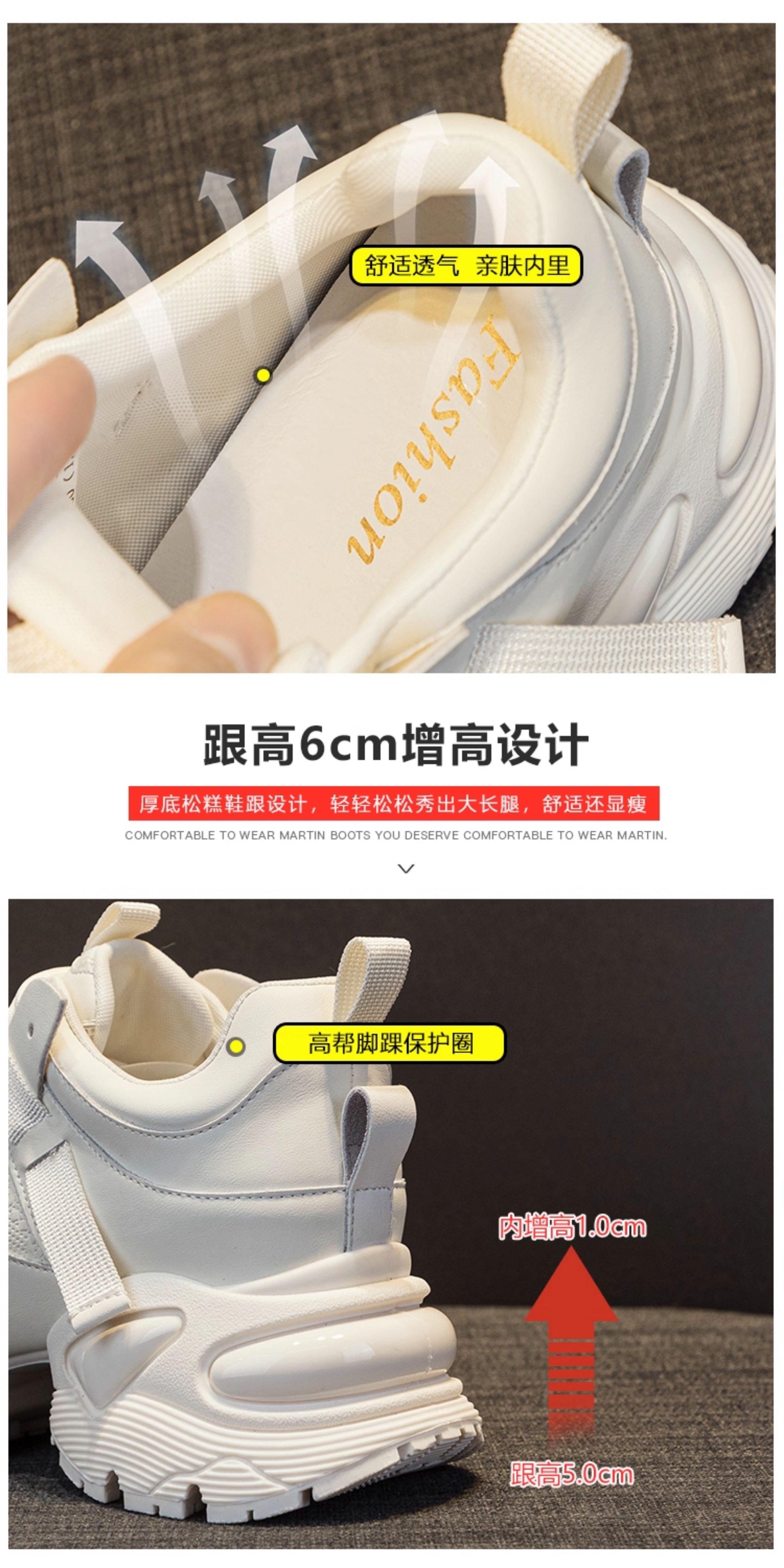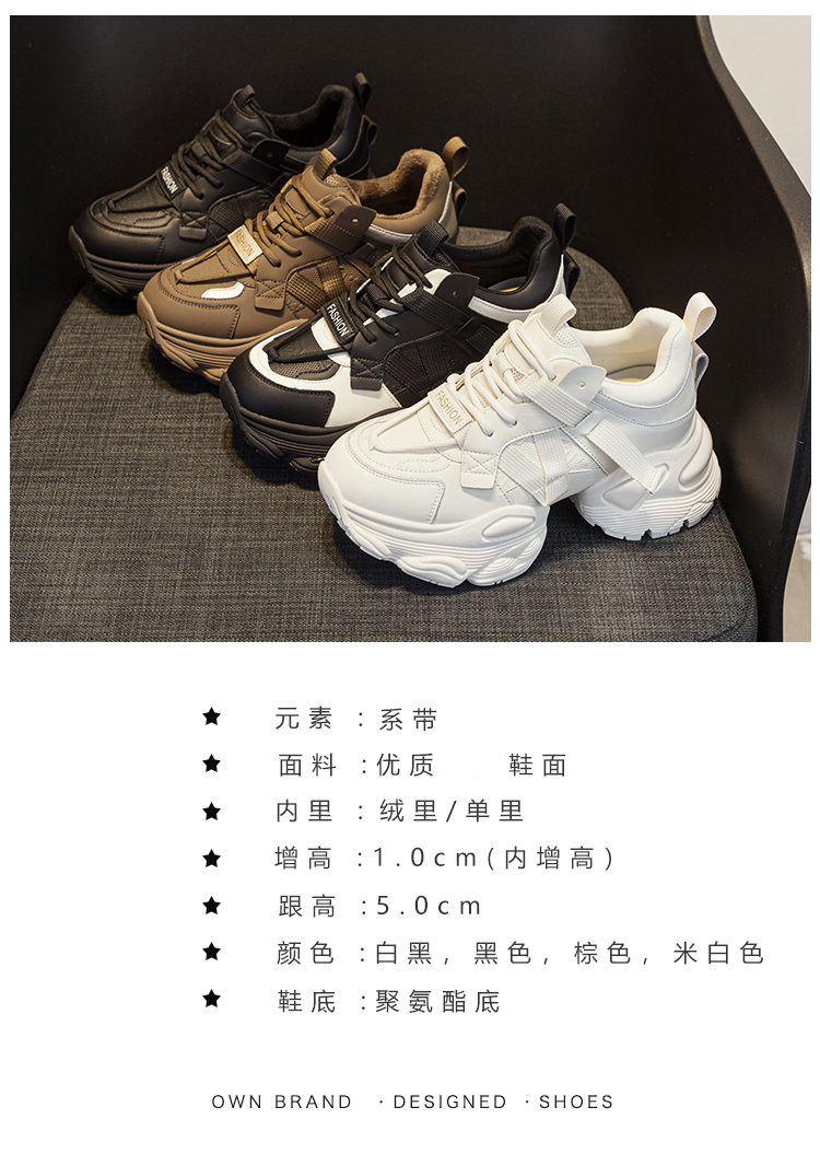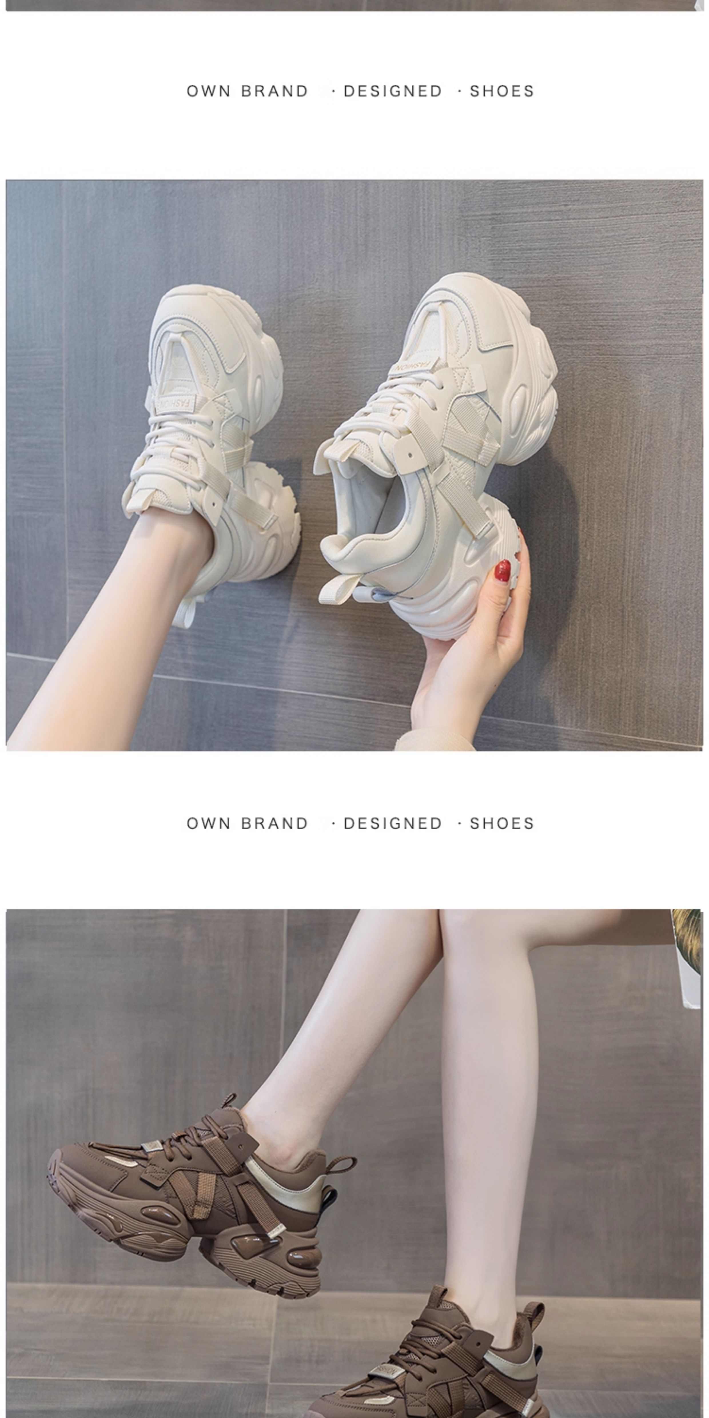 Genuine Leather Thick-Soled Dad Shoes for Women 2025 New Autumn Women's Shoes with Fleece Lining, Sports Shoes for Autumn and Winter, Height-Increasing Casual White Shoes