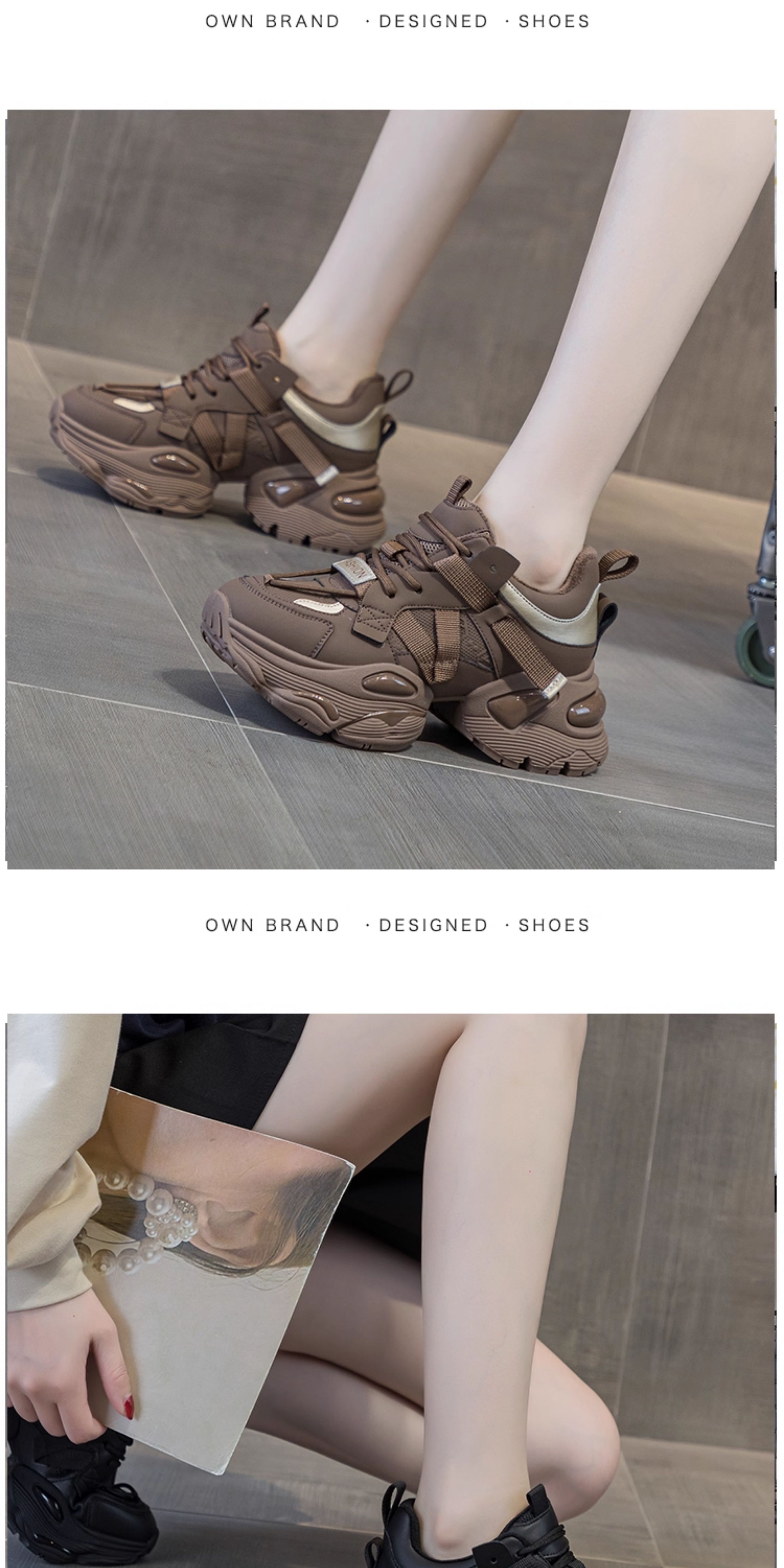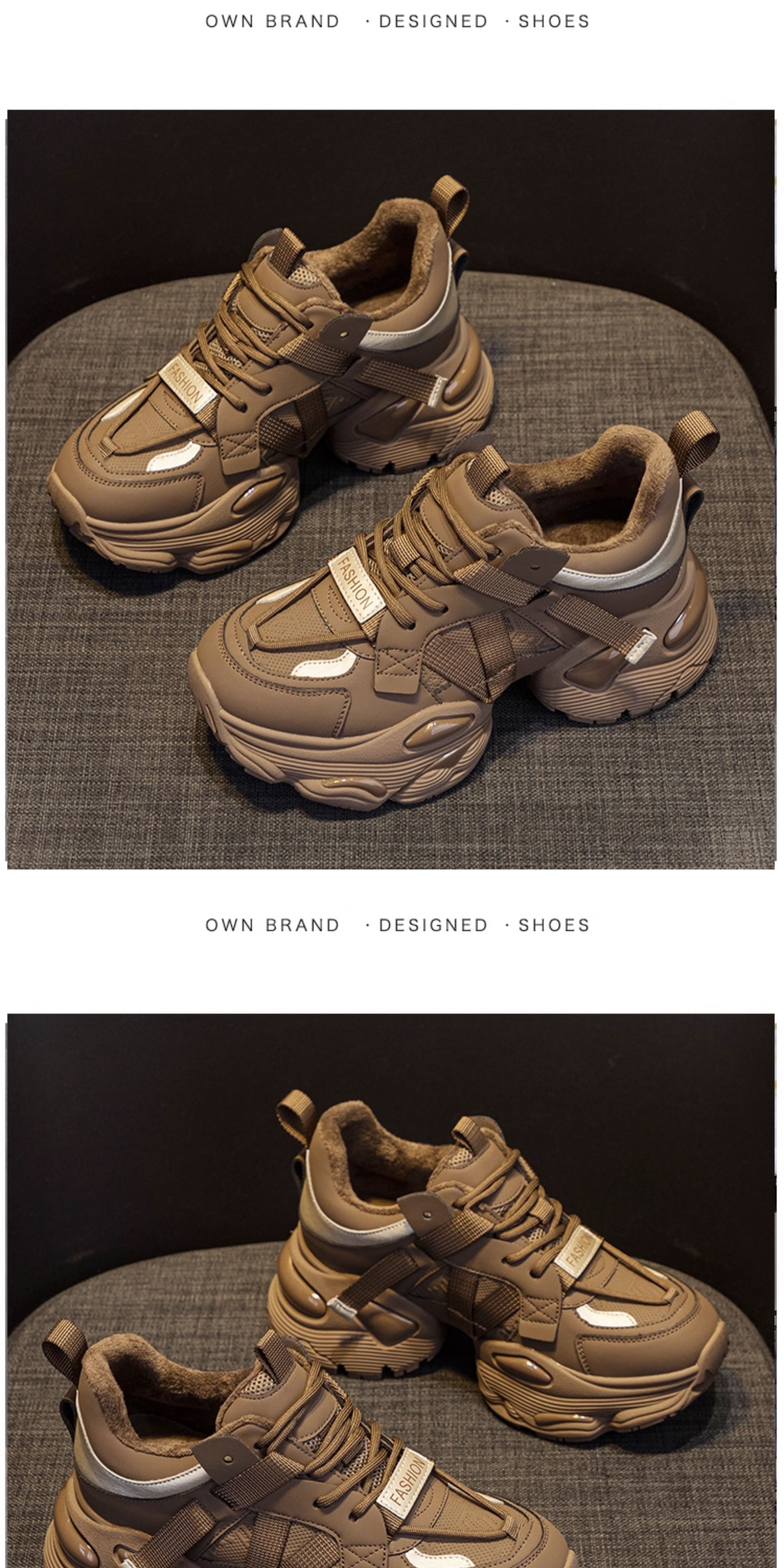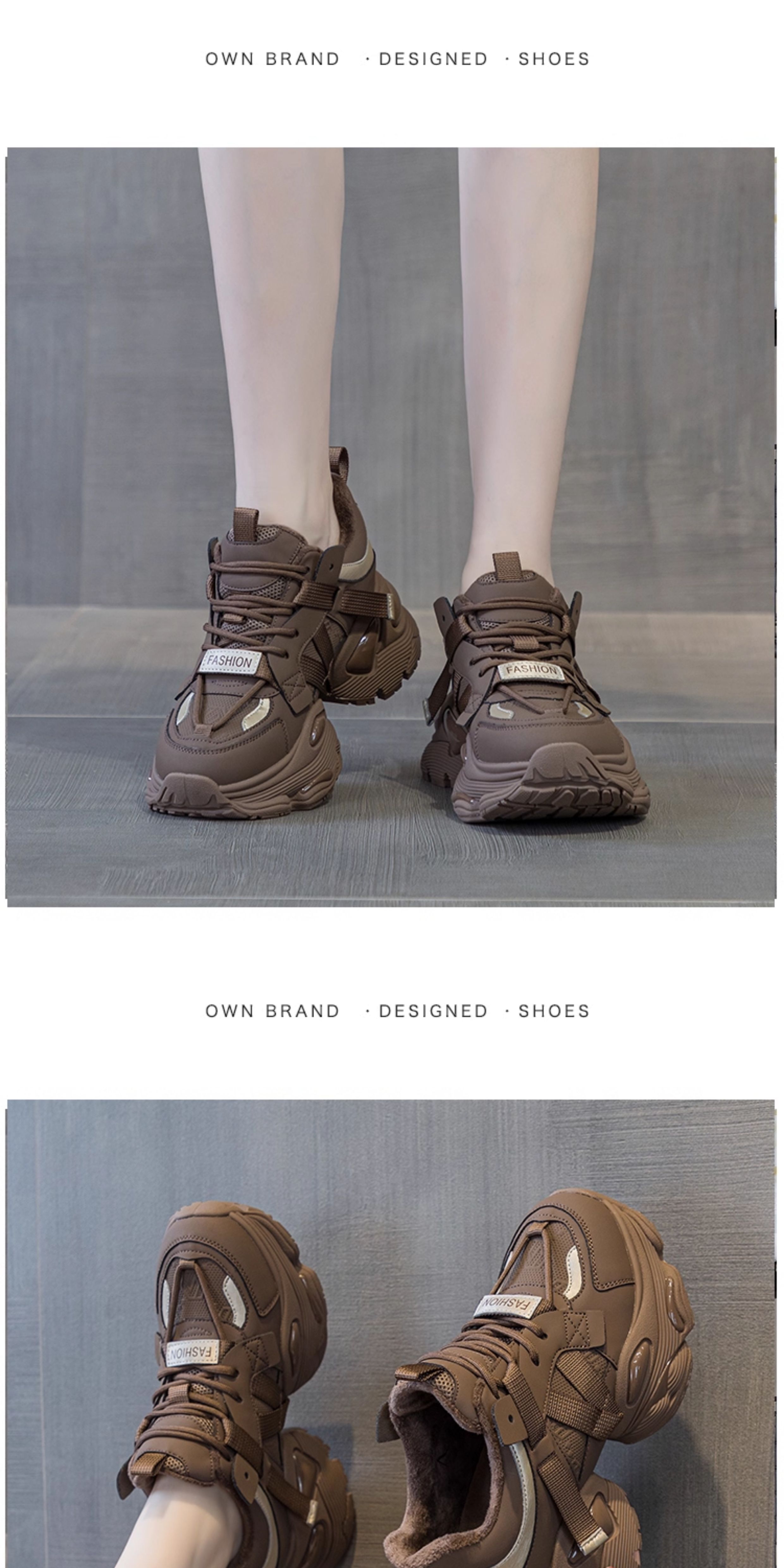 Genuine Leather Thick-Soled Dad Shoes for Women 2025 New Autumn Women's Shoes with Fleece Lining, Sports Shoes for Autumn and Winter, Height-Increasing Casual White Shoes