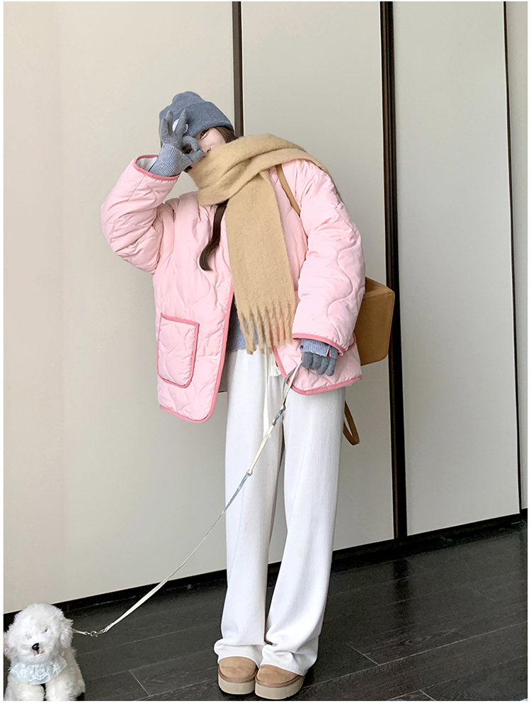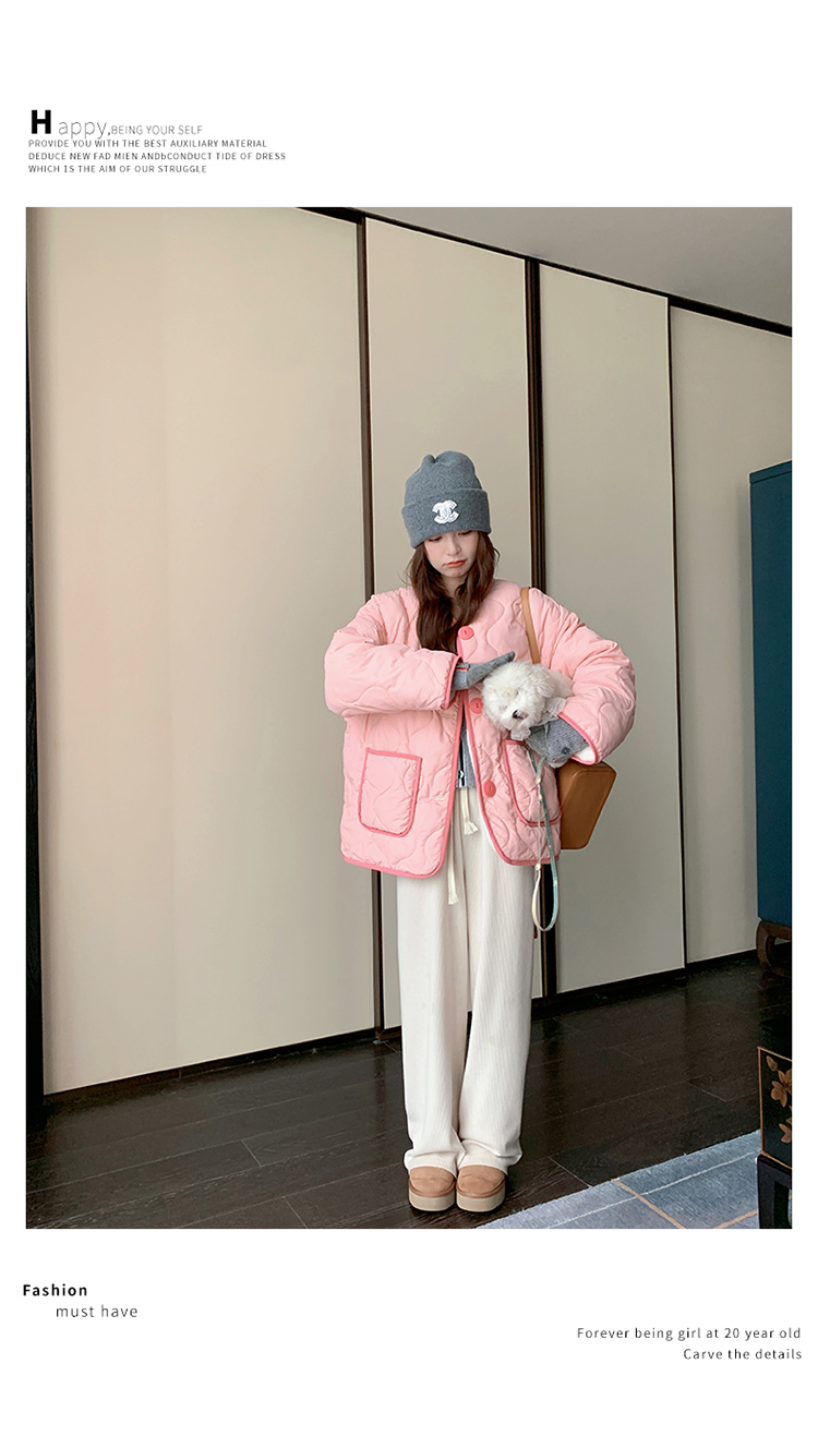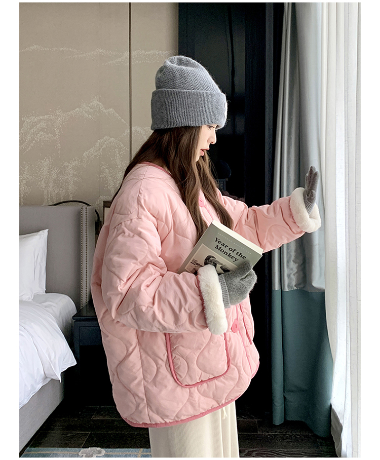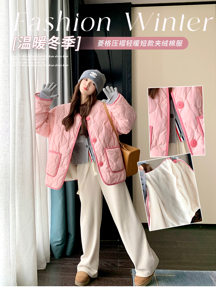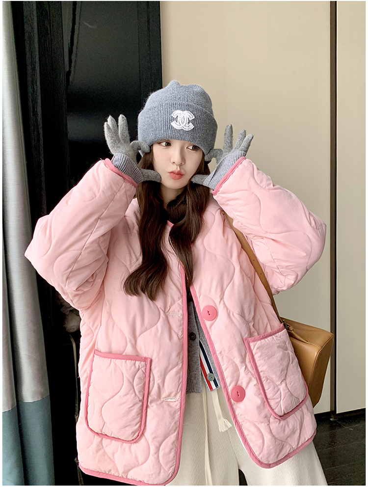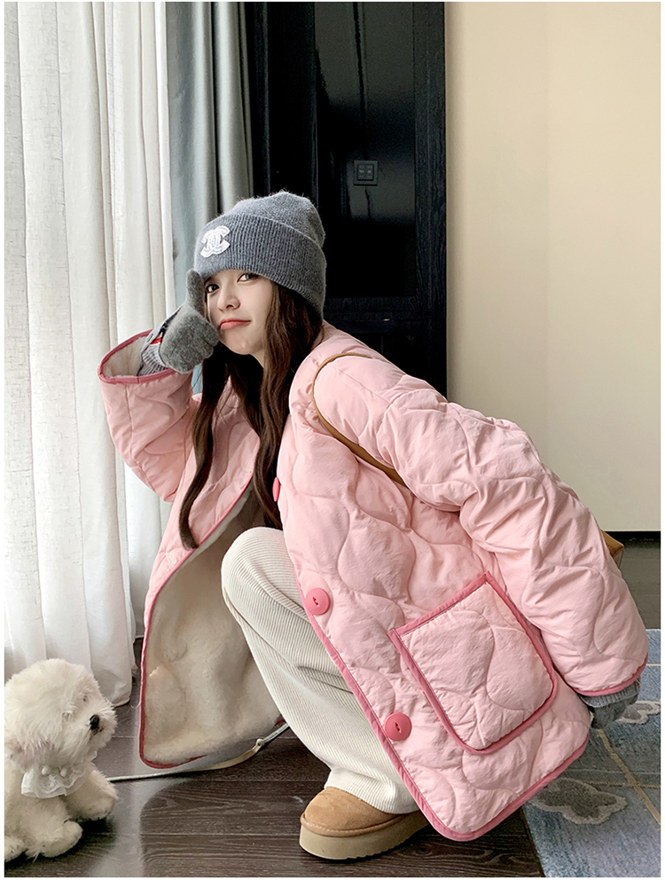 Pink Quilted Fleece-Lined Thick Coat for Women, 2025 Winter New Design, Loose and Stylish, Warm and Age-Reducing Cotton Jacket