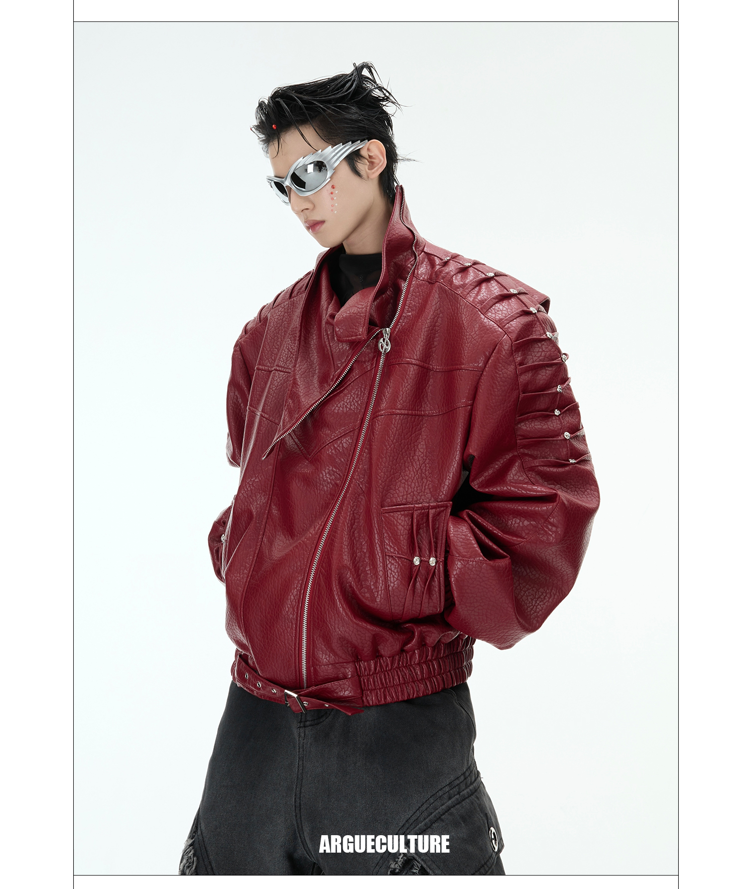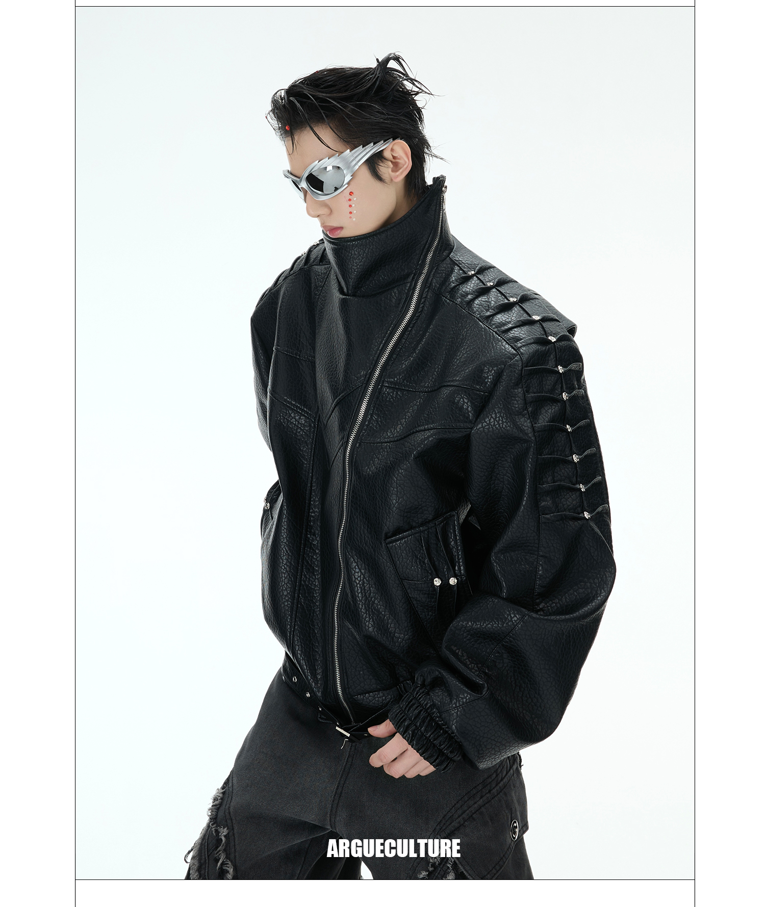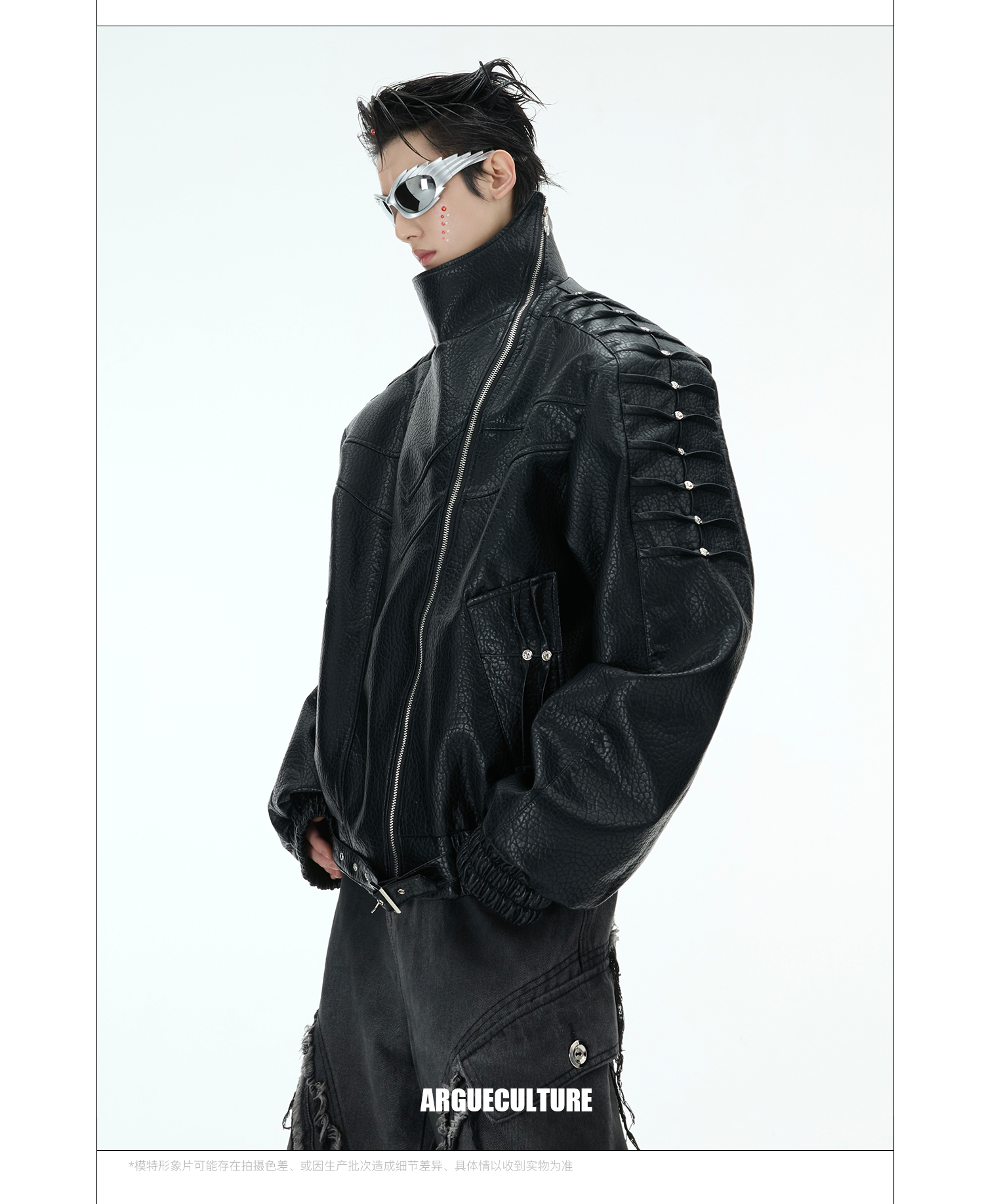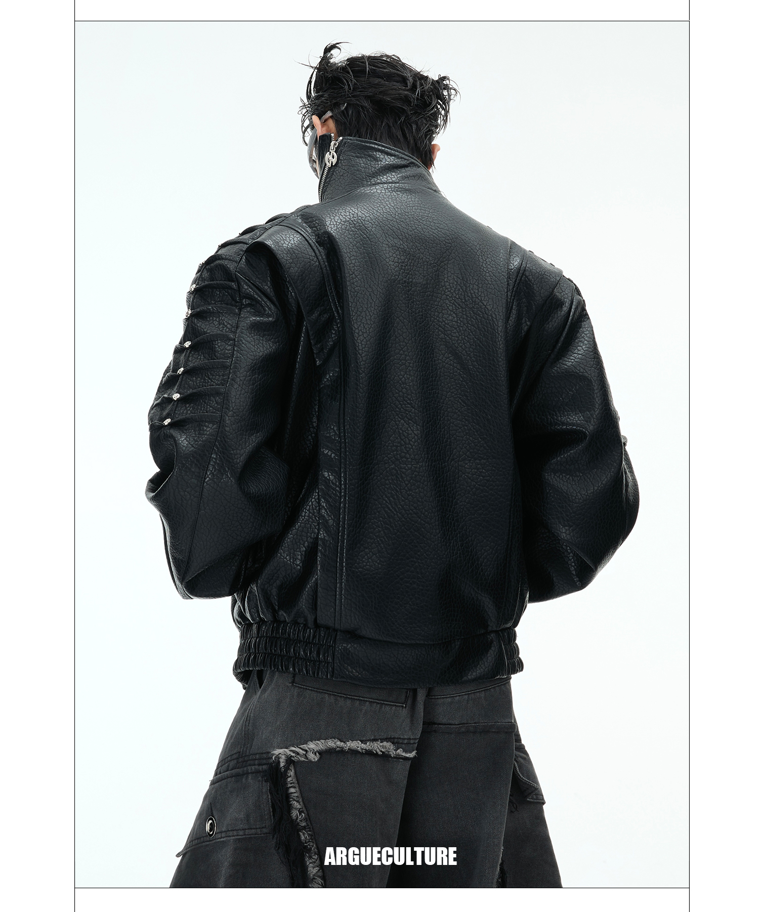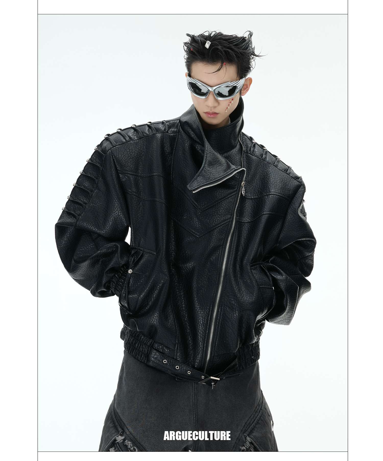 Argue Culture Split Niche Deconstructed Spine Crumpled Metal Studded Jacket Leather Coat for Men