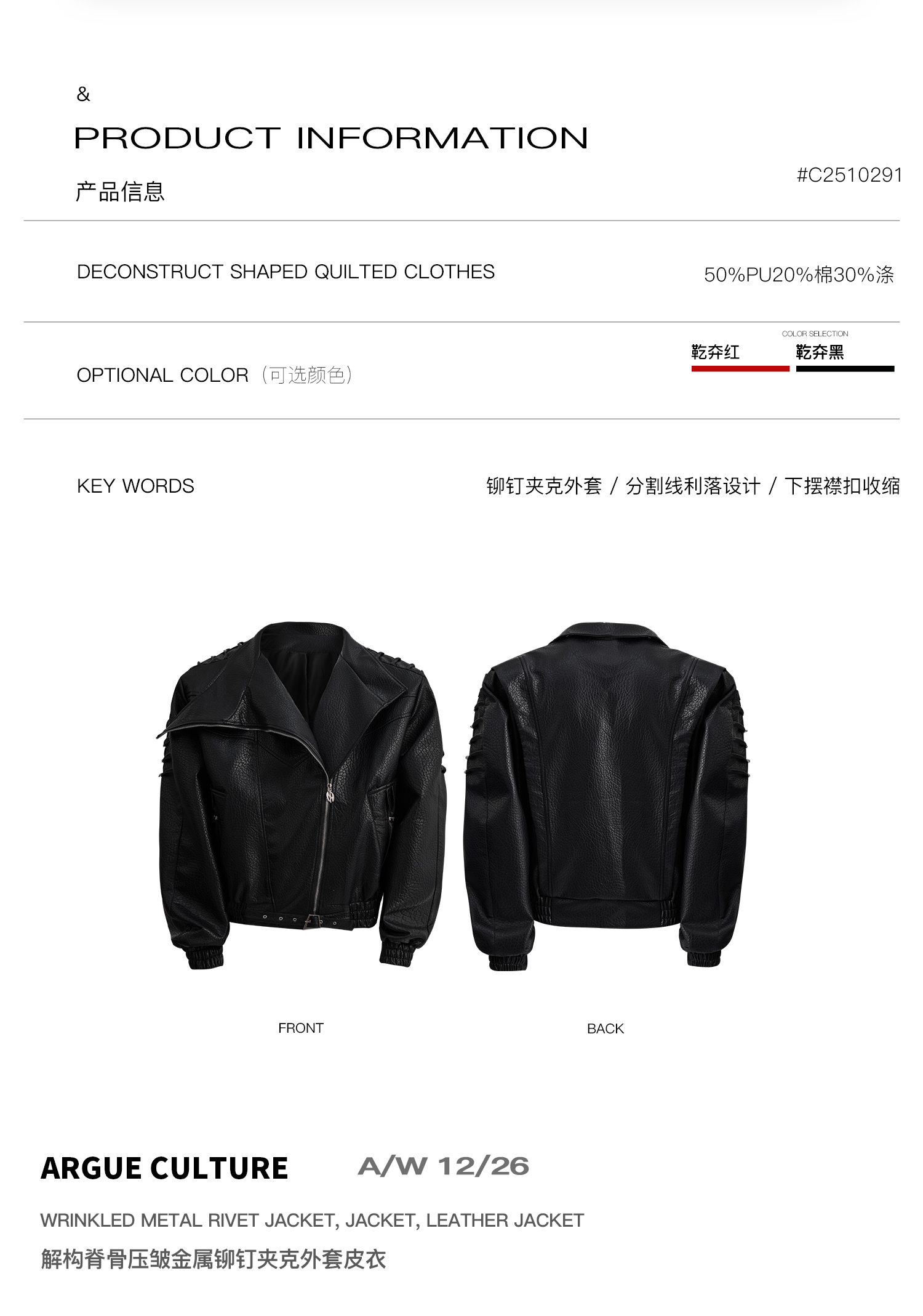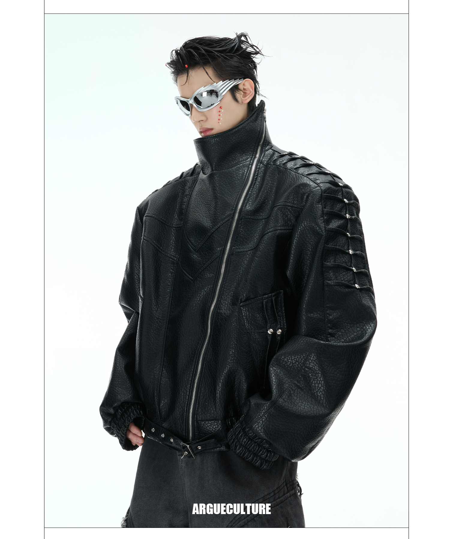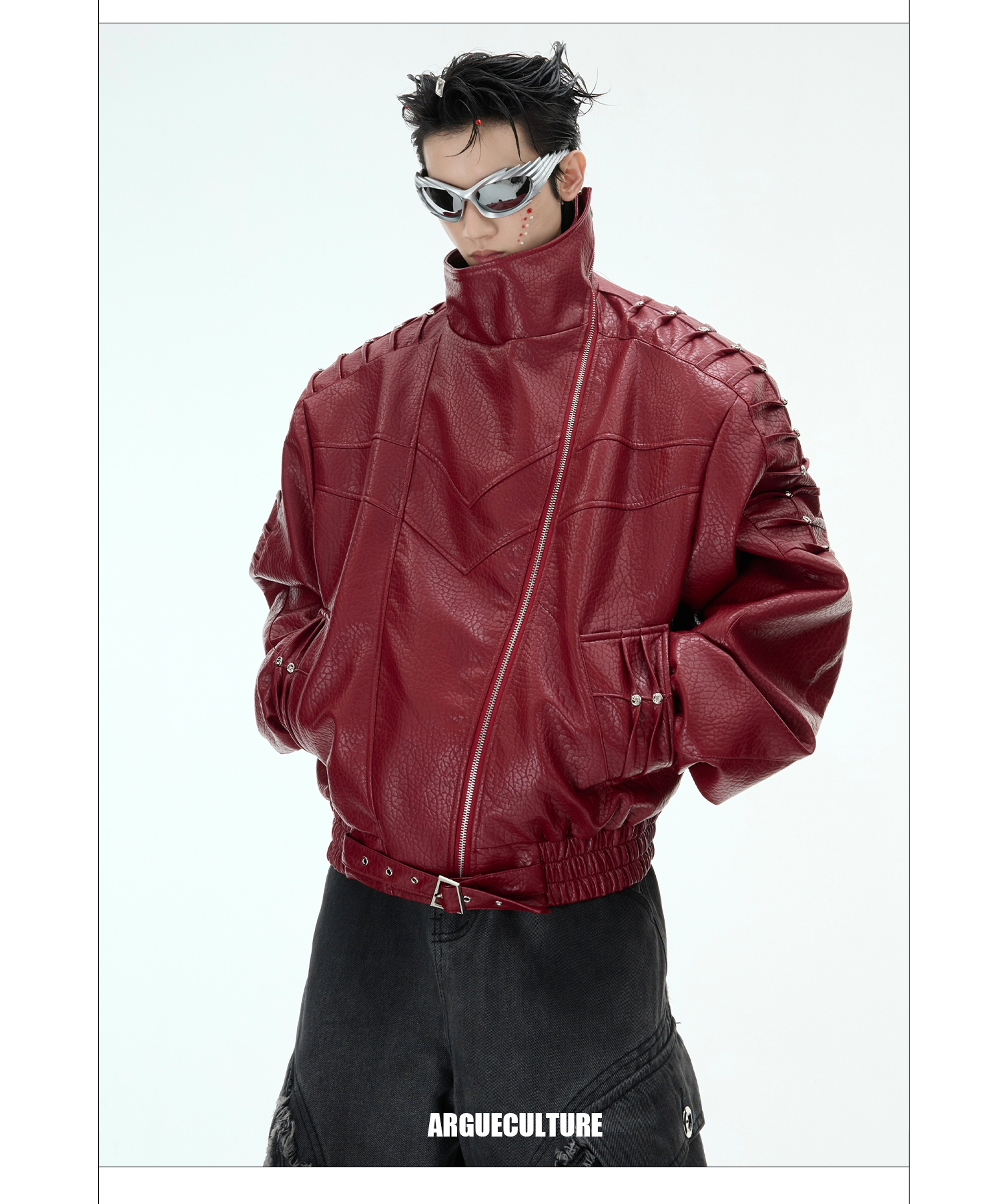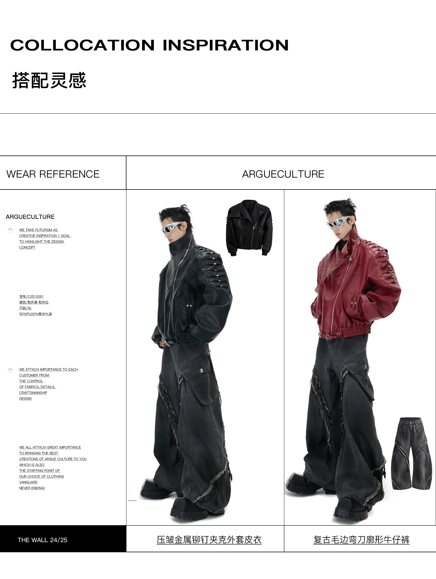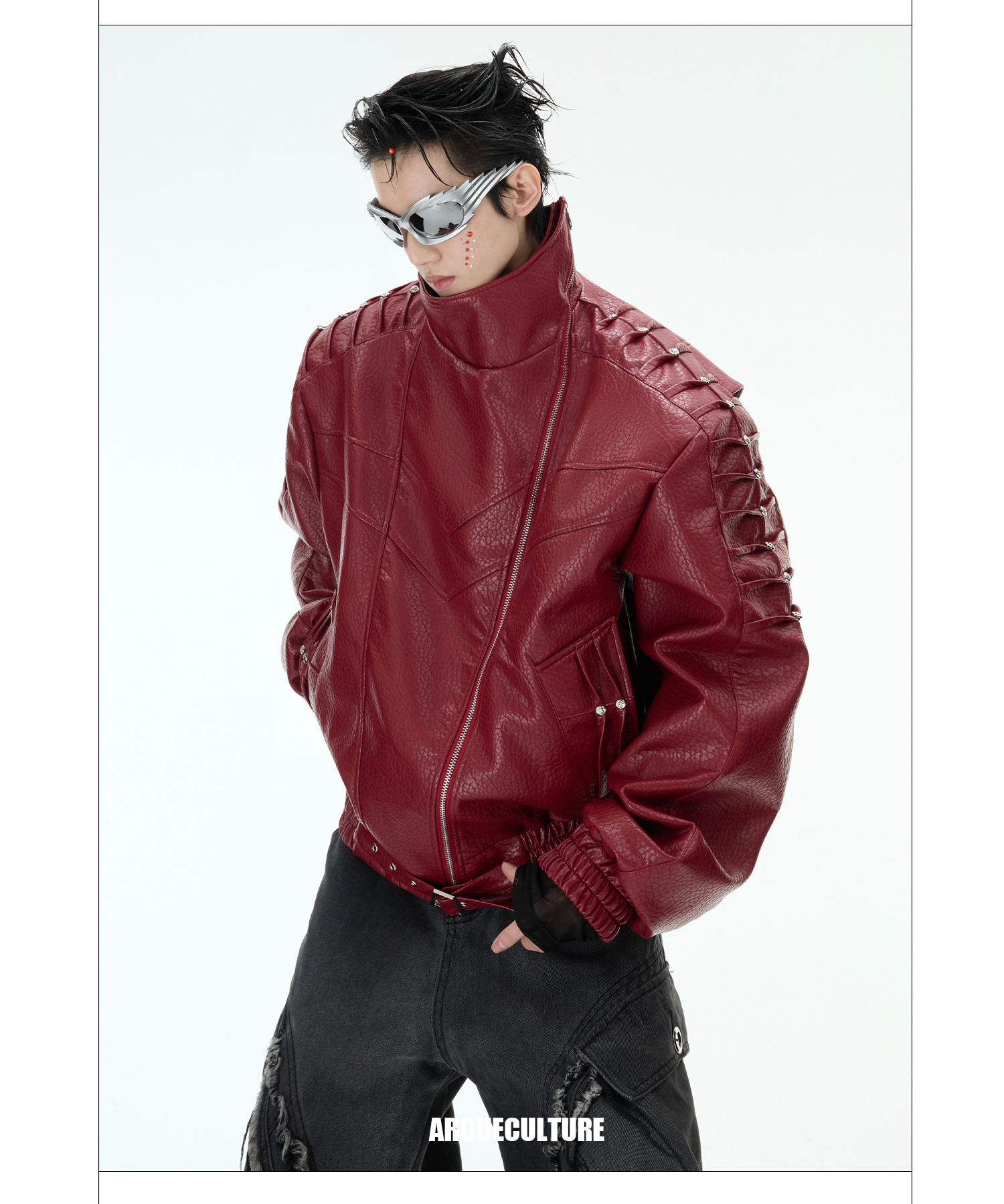 Argue Culture Split Niche Deconstructed Spine Crumpled Metal Studded Jacket Leather Coat for Men