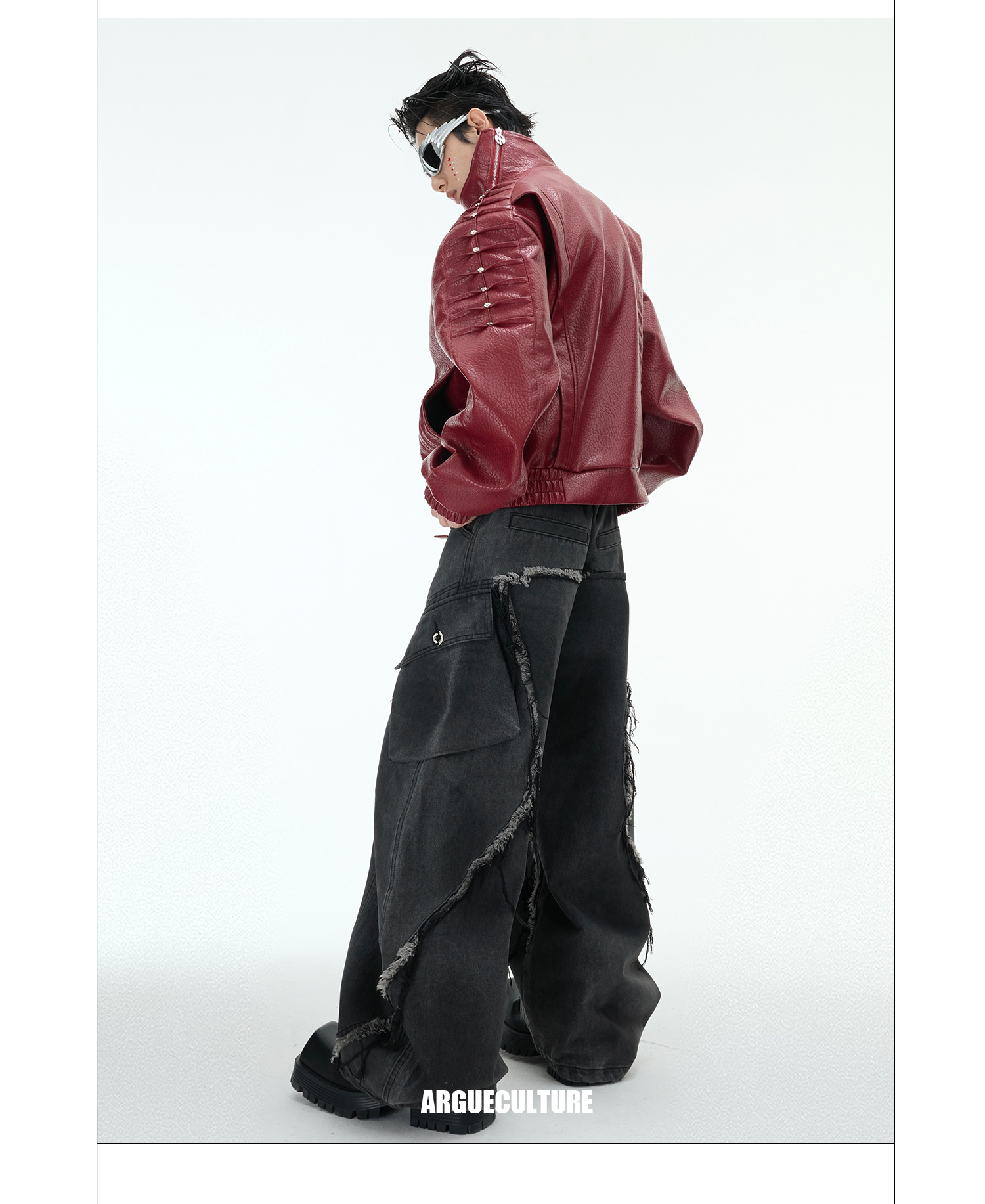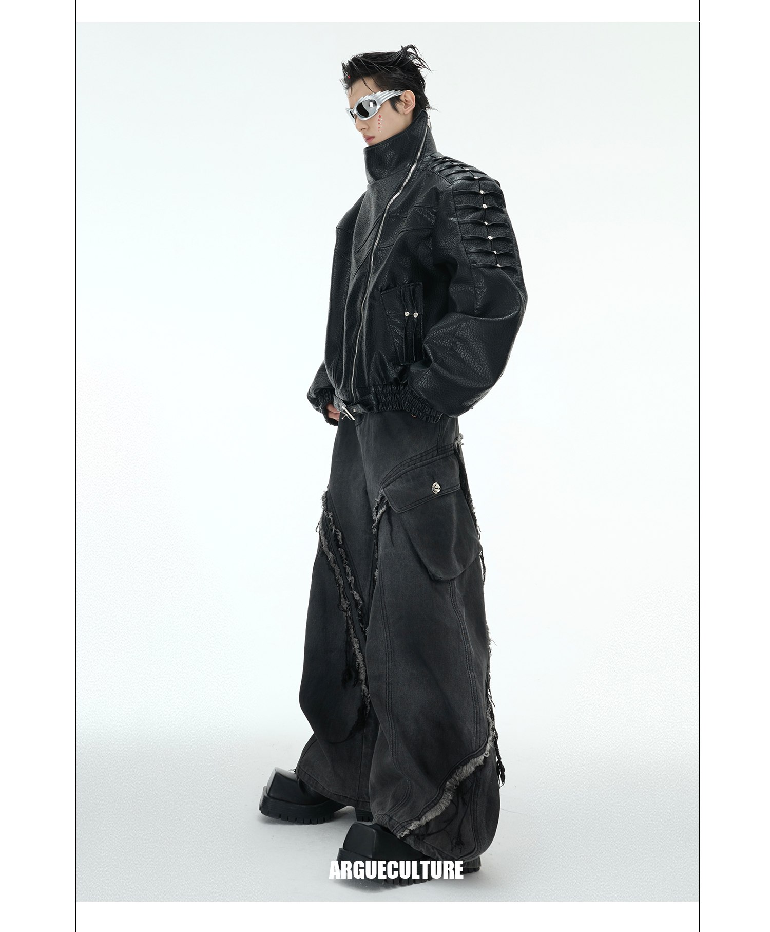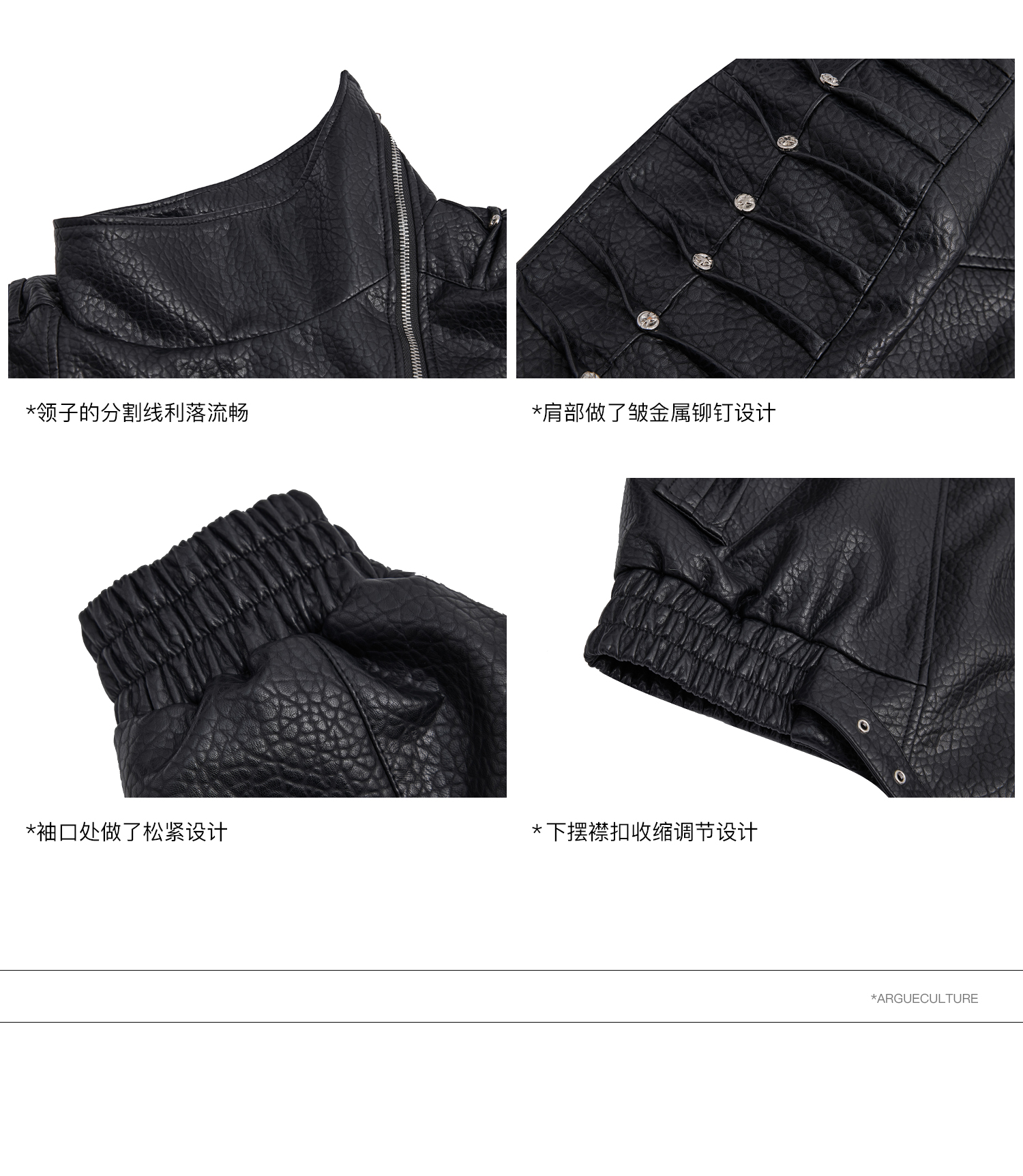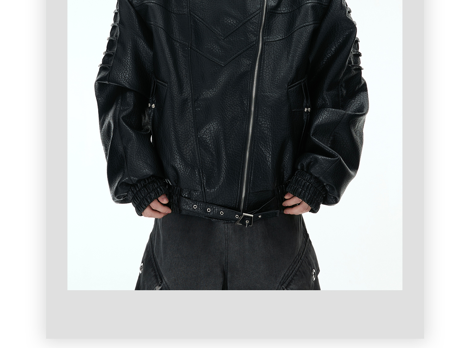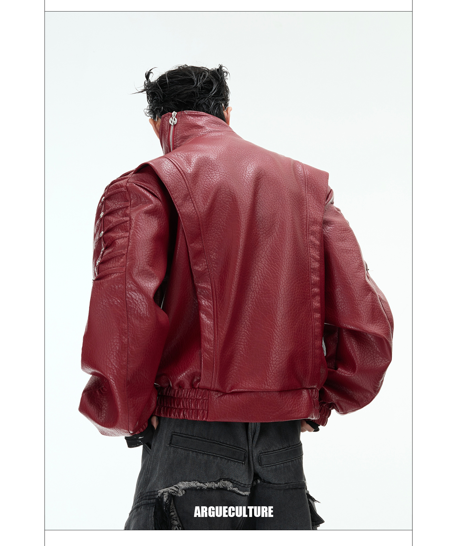 Argue Culture Split Niche Deconstructed Spine Crumpled Metal Studded Jacket Leather Coat for Men