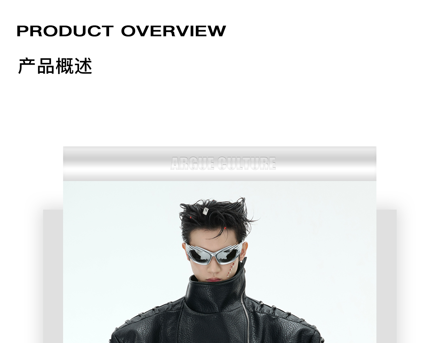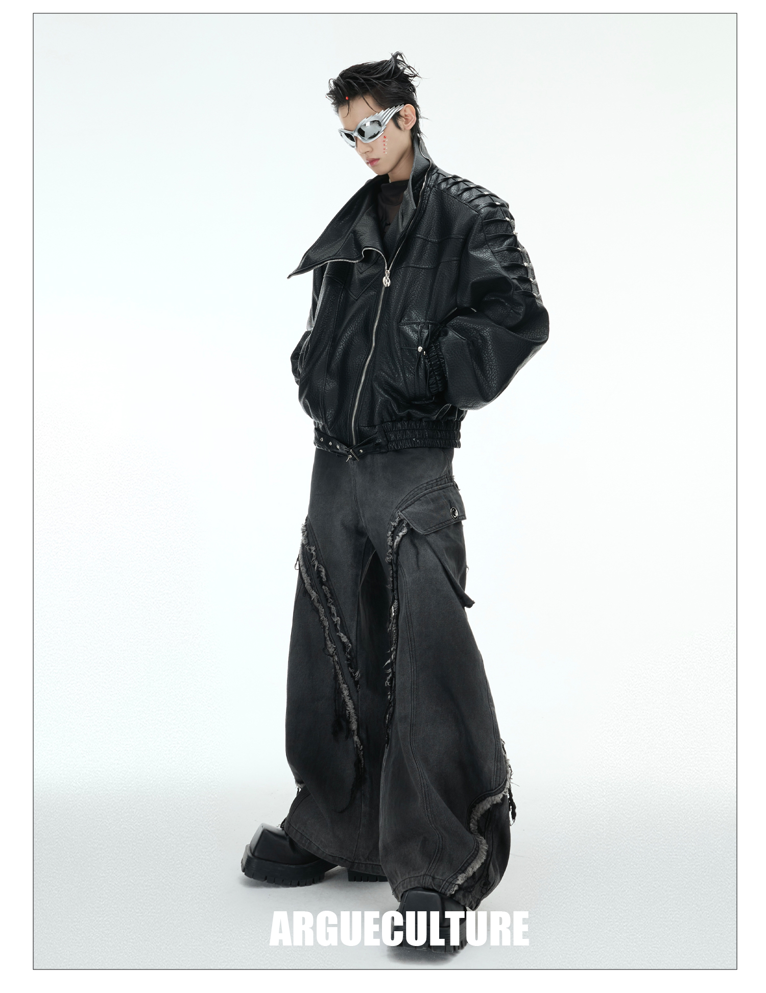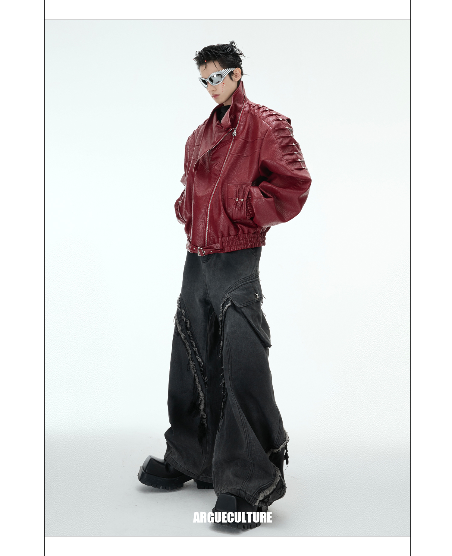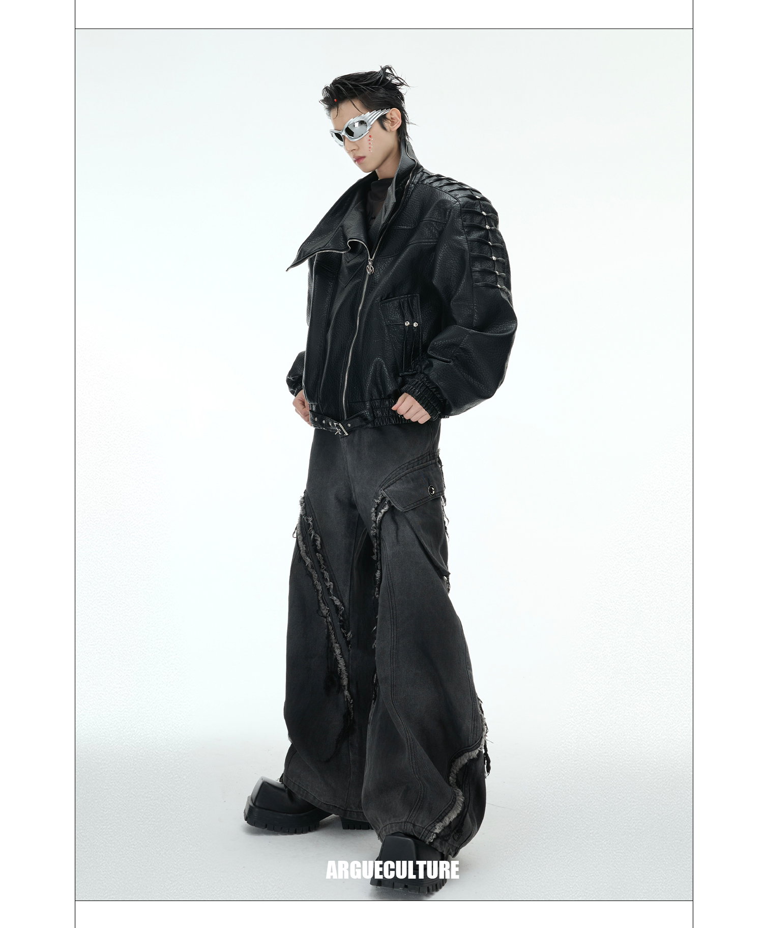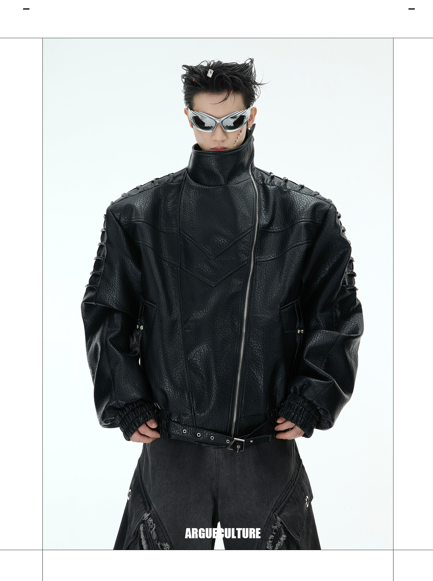 Argue Culture Split Niche Deconstructed Spine Crumpled Metal Studded Jacket Leather Coat for Men