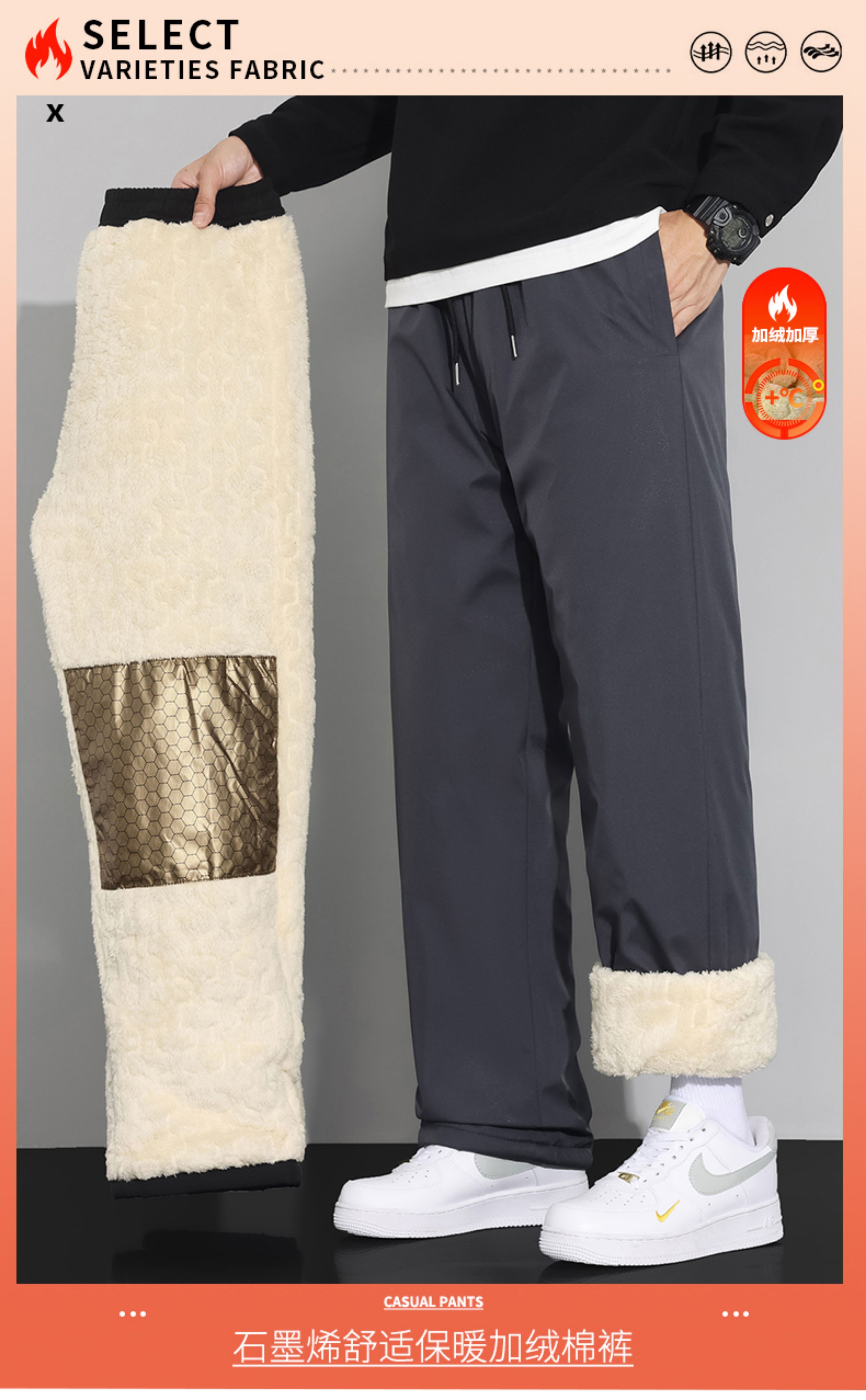 Wassup Felipe Graphene Lamb Wool Pants for Men, New Winter Style, Fleece-Lined and Thickened Cotton Pants, Outdoor Long Pants
