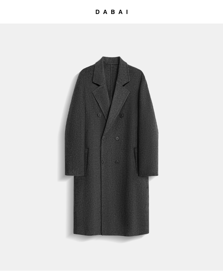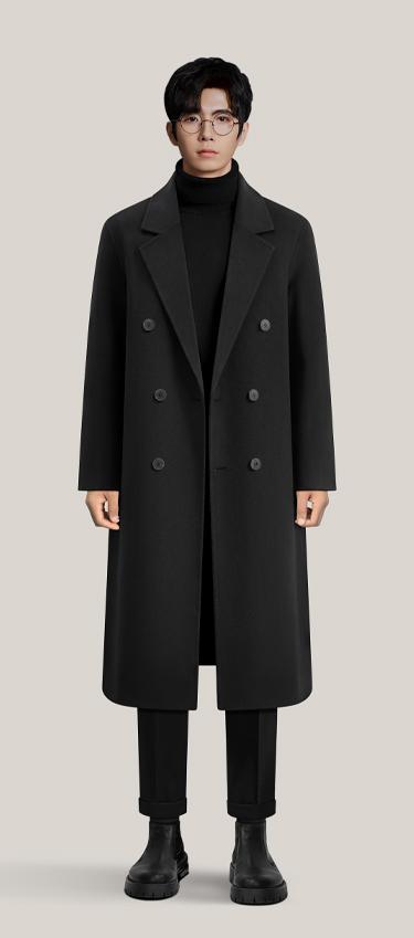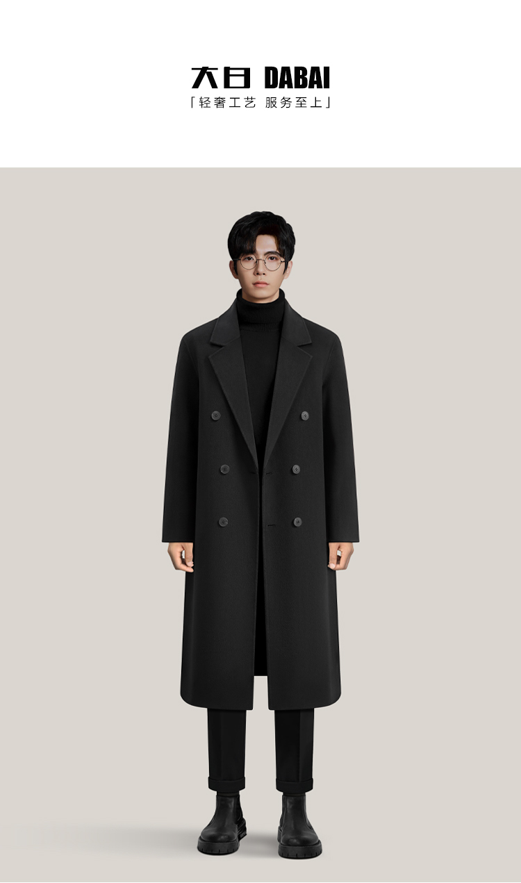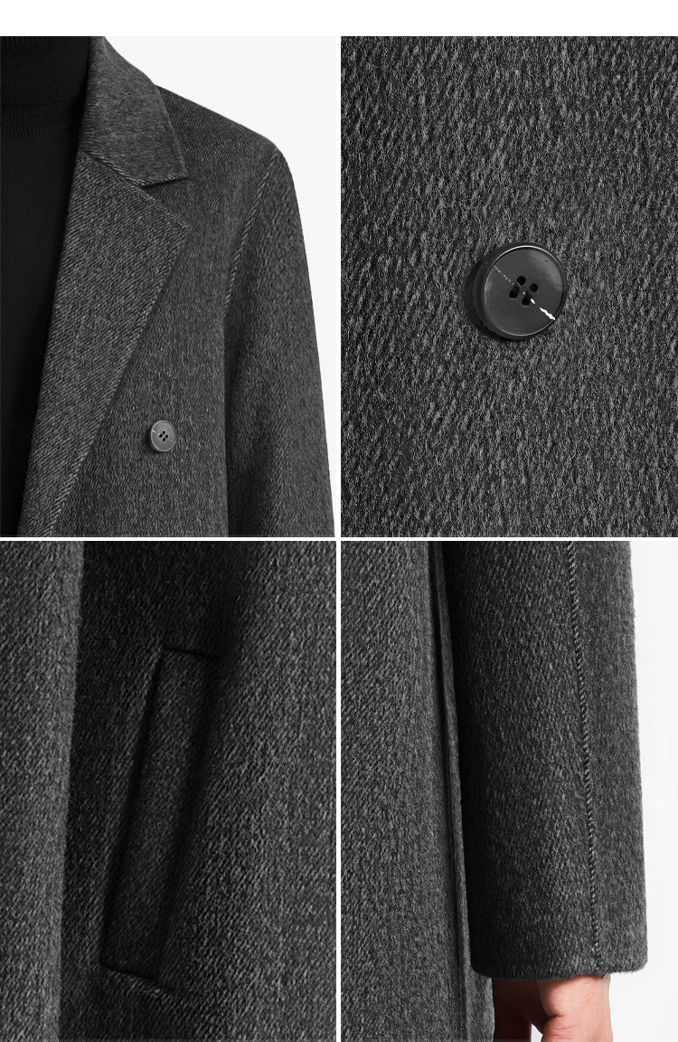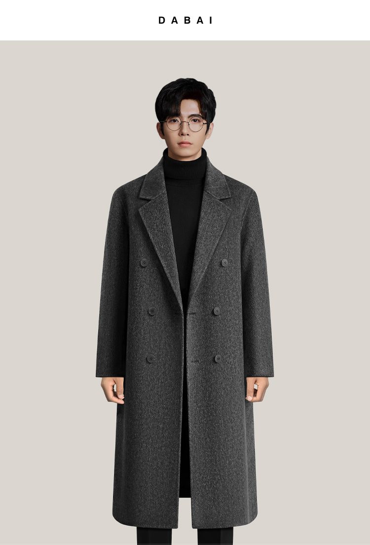 Autumn and Winter Double-Sided Woolen Coat for Men, Long Over-The-Knee Woolen Coat, Thickened High-End Trench Coat with Suit Collar