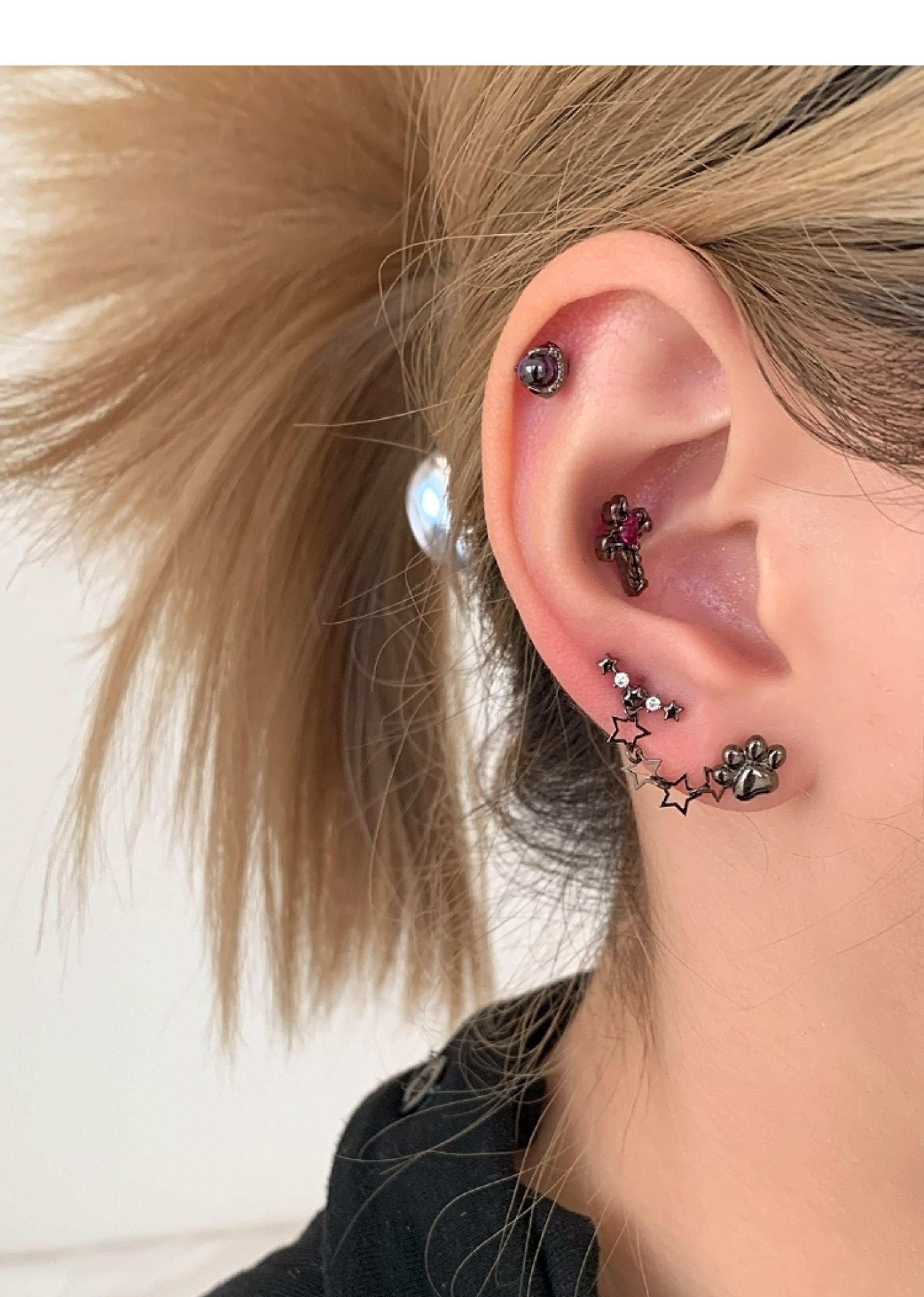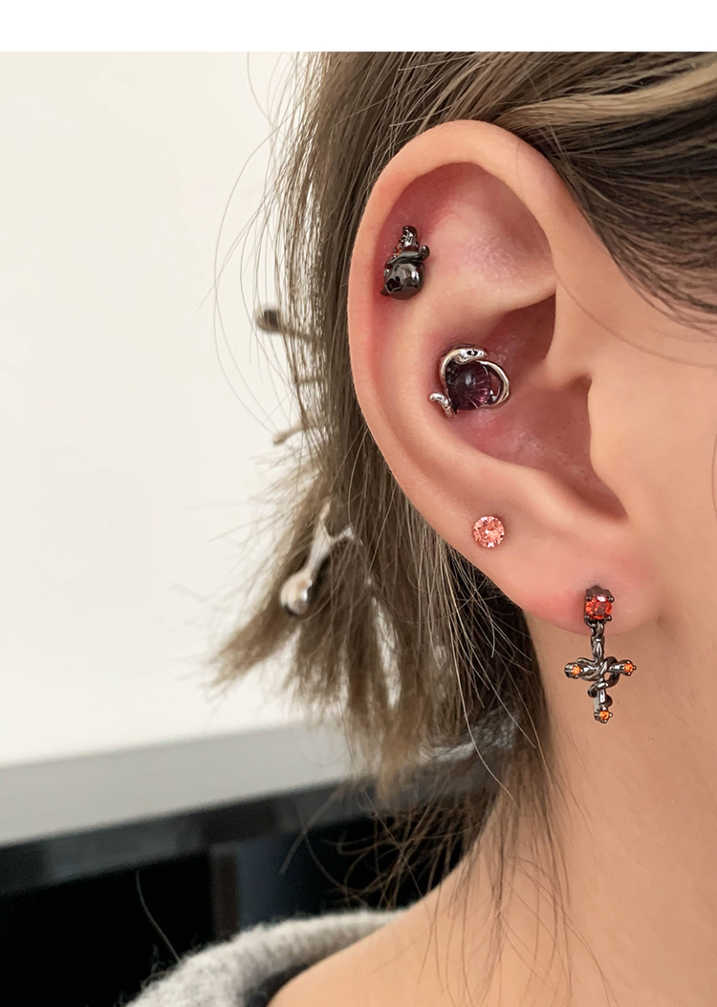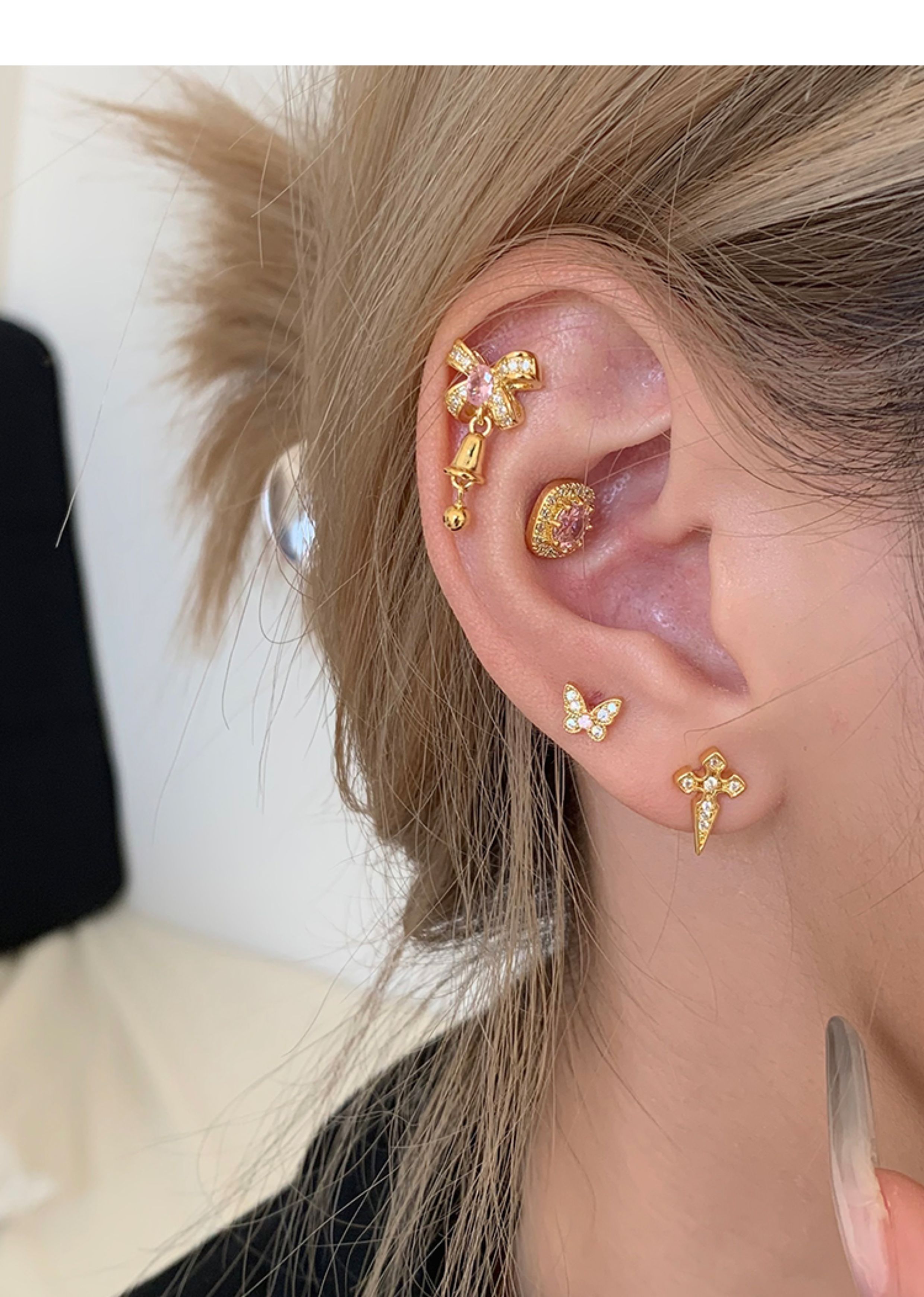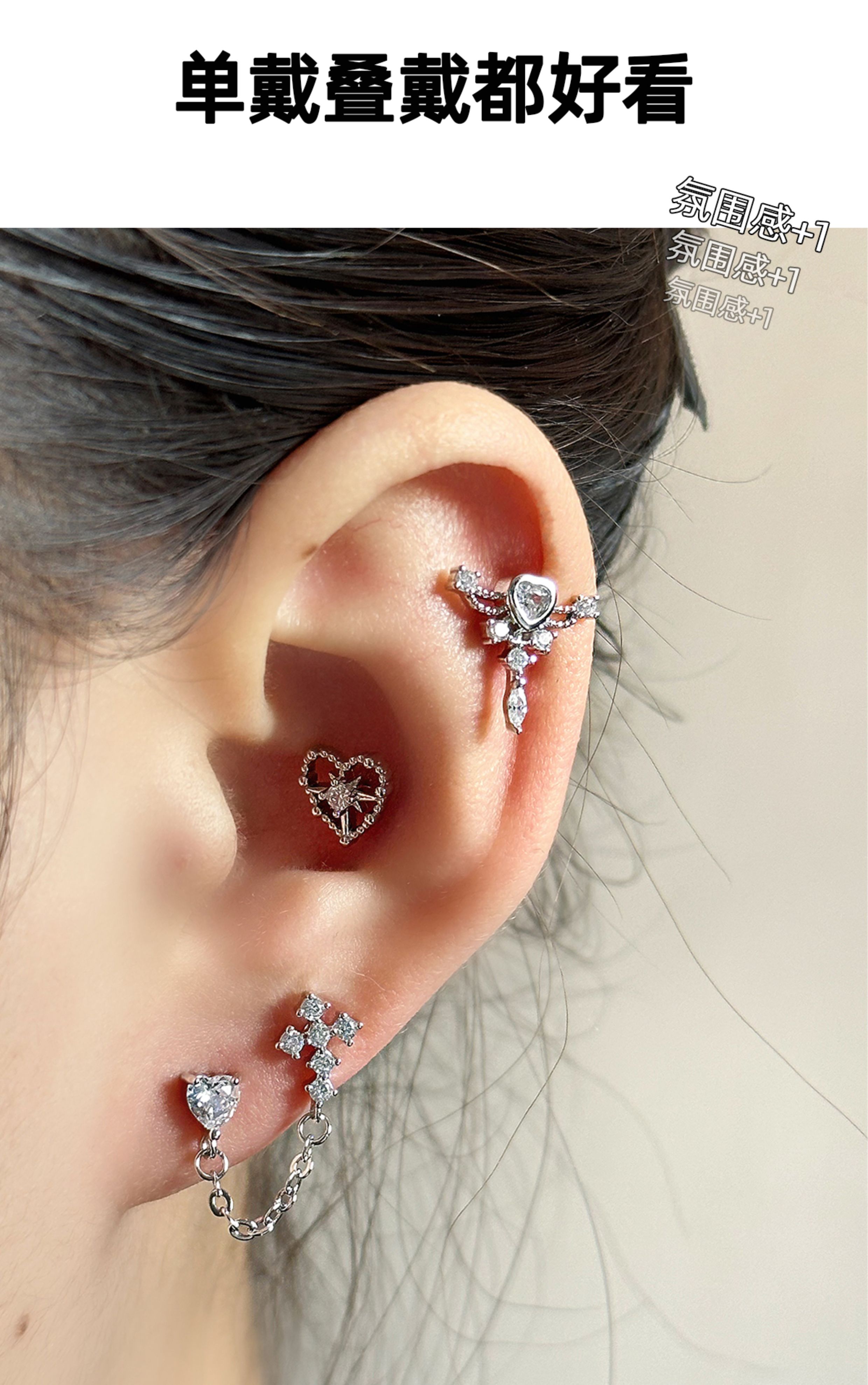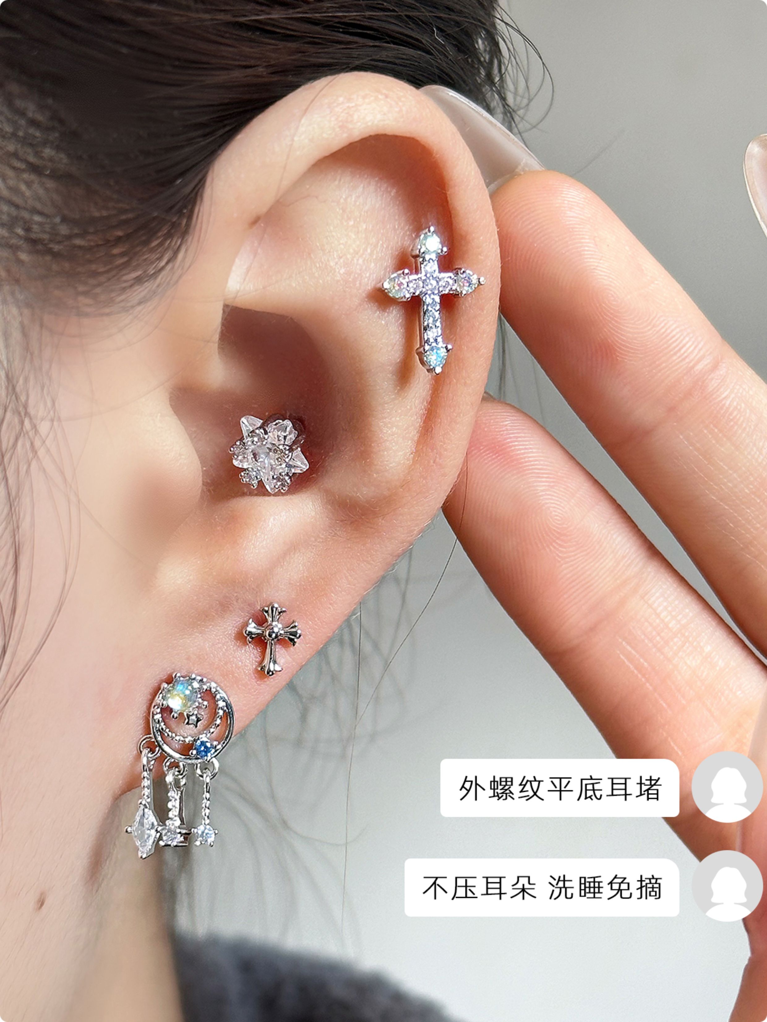 Ringring Store Cross Earrings Medical Titanium Steel Ear Bone Studs Titanium Alloy Zircon Cochlear Studs Earrings Ear Accessories