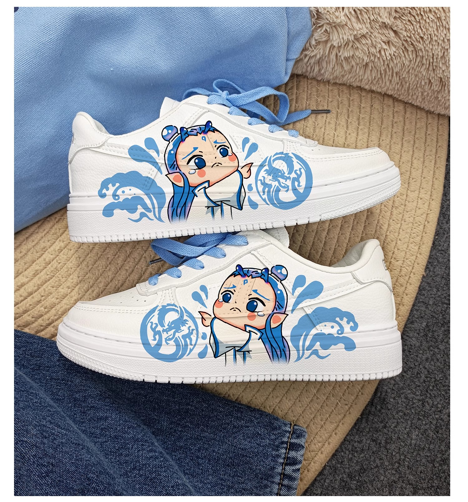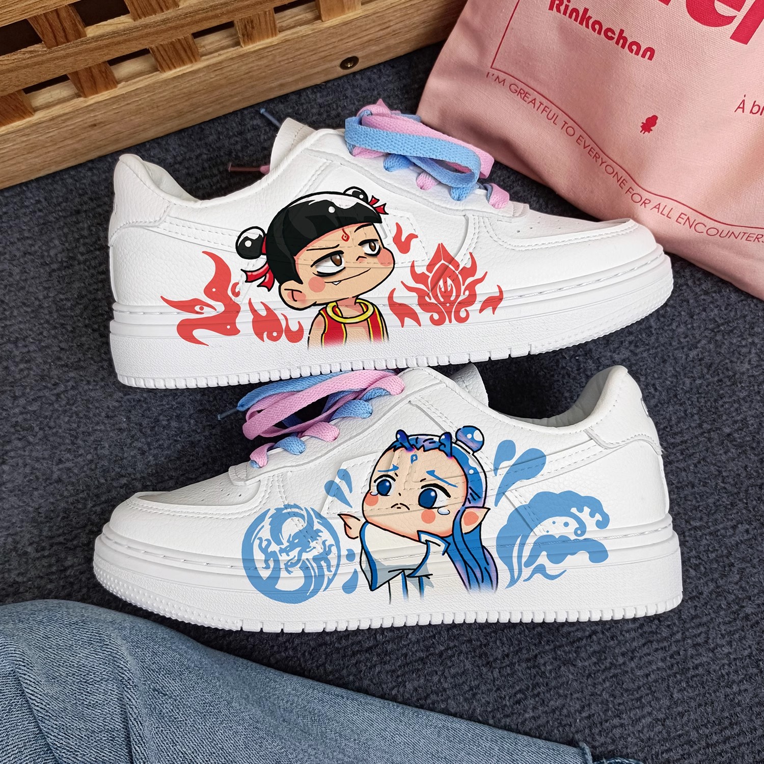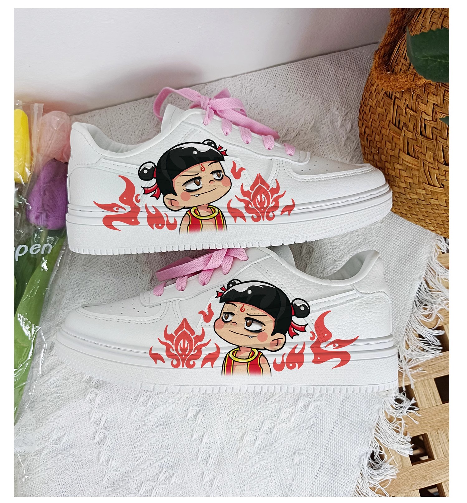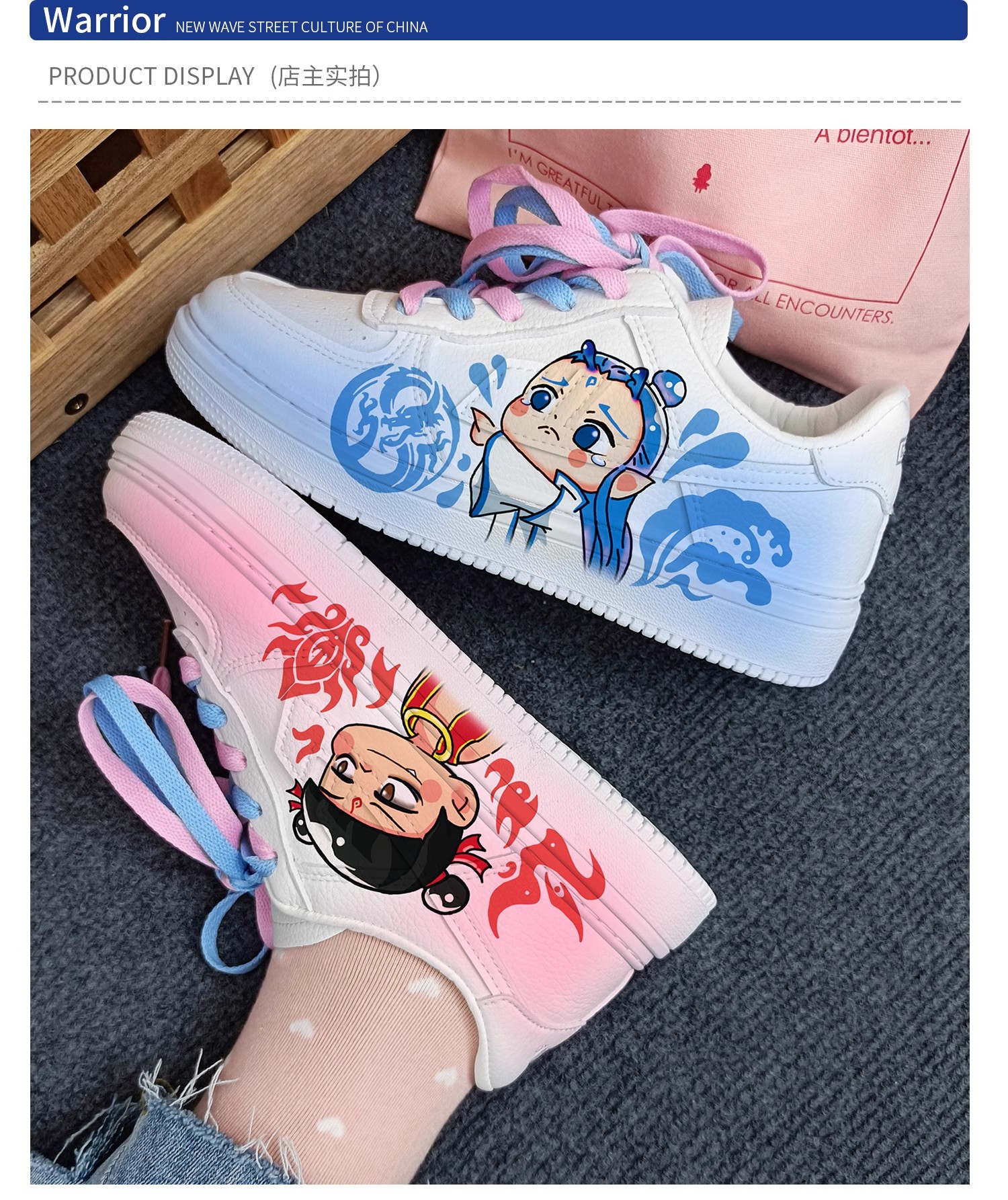 Warrior-Style Modified Nezha and Ao Bing Casual Sneakers for Men, 2025 Winter New Model, Niche Student Couple's Popular White Shoes