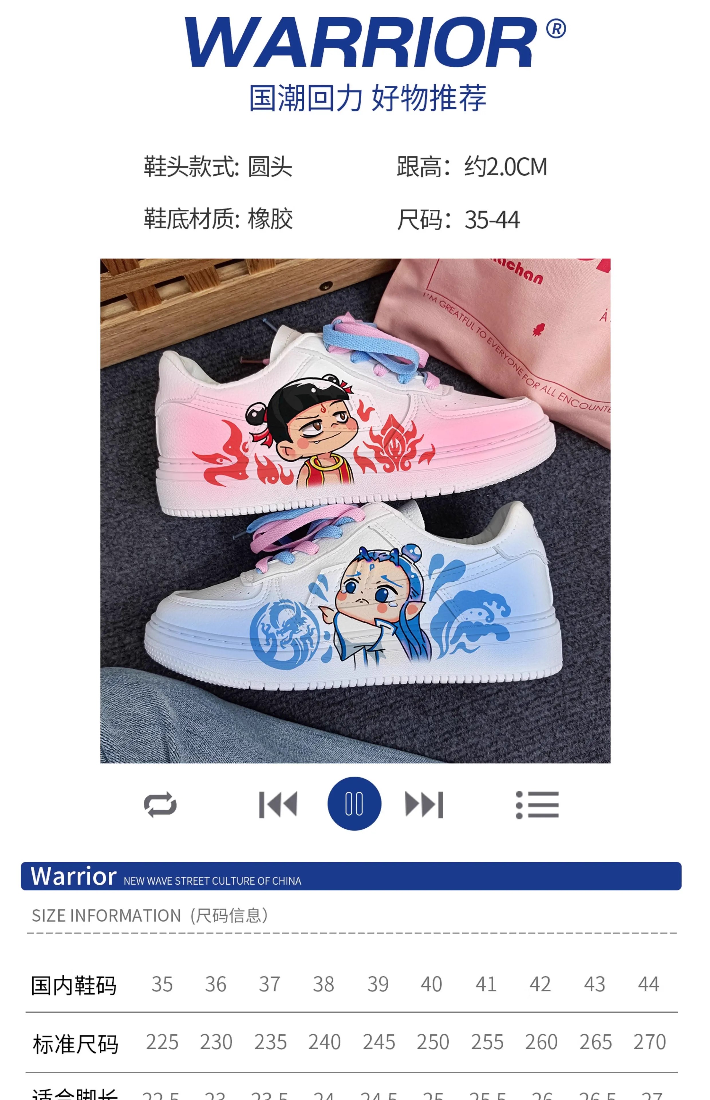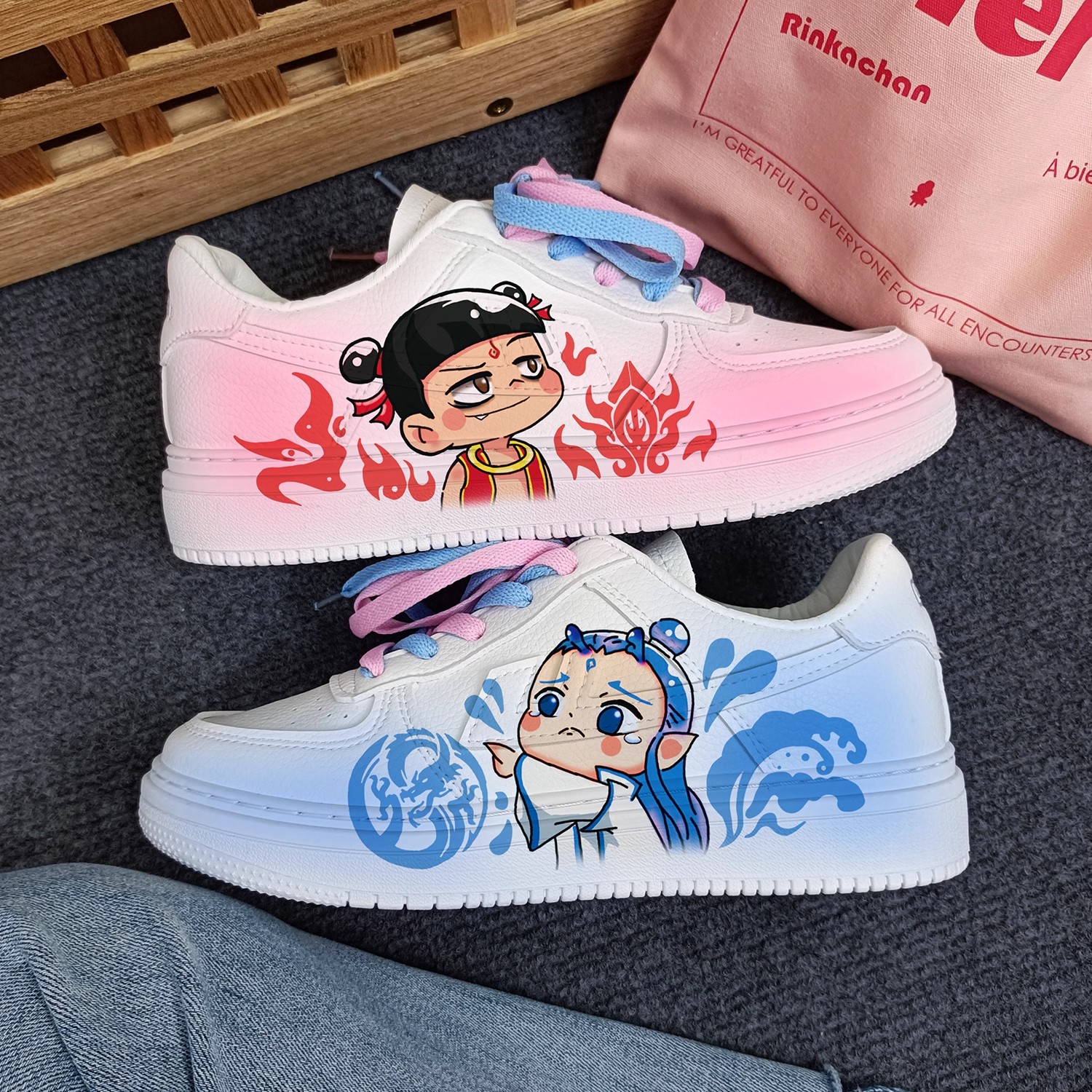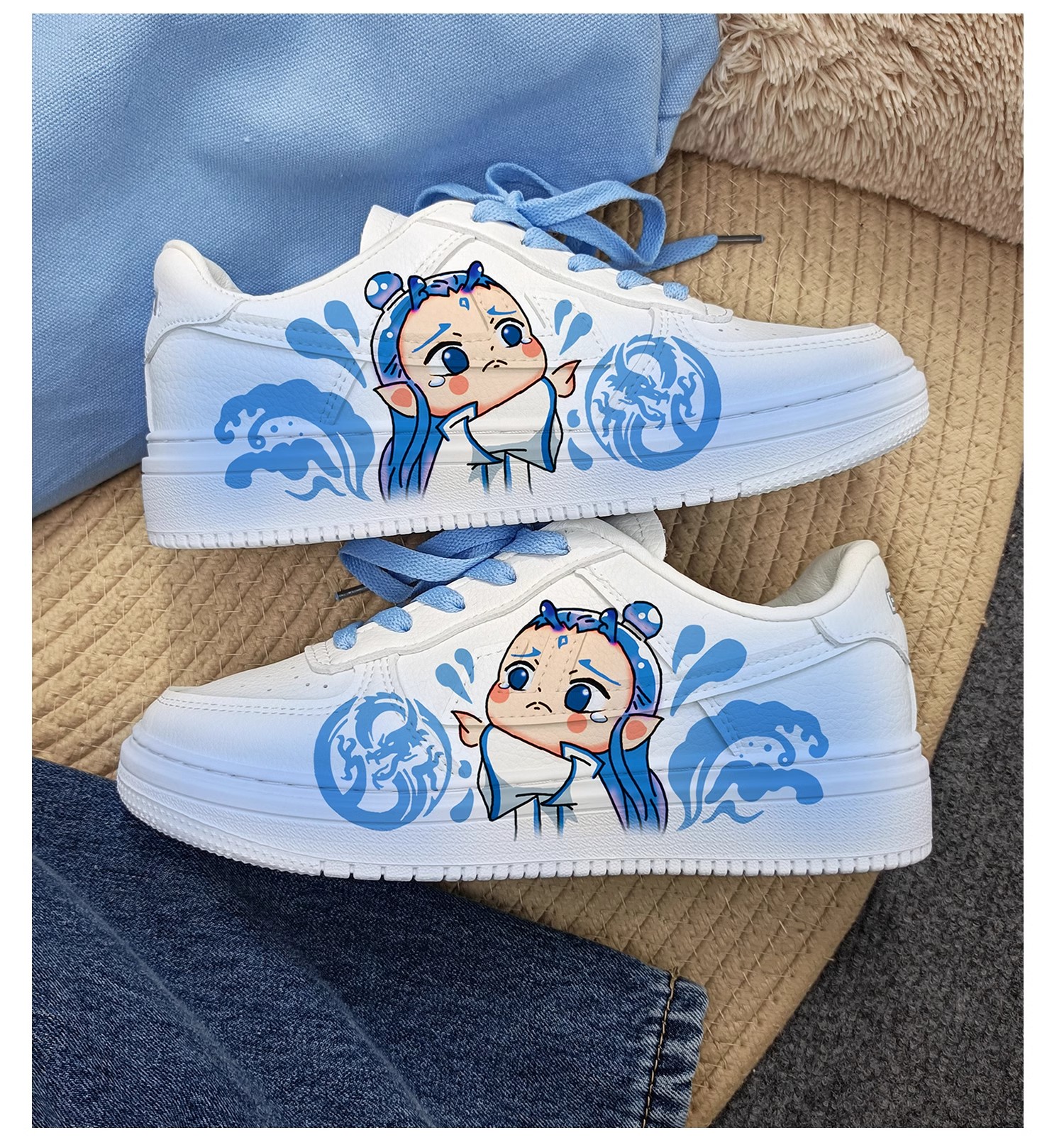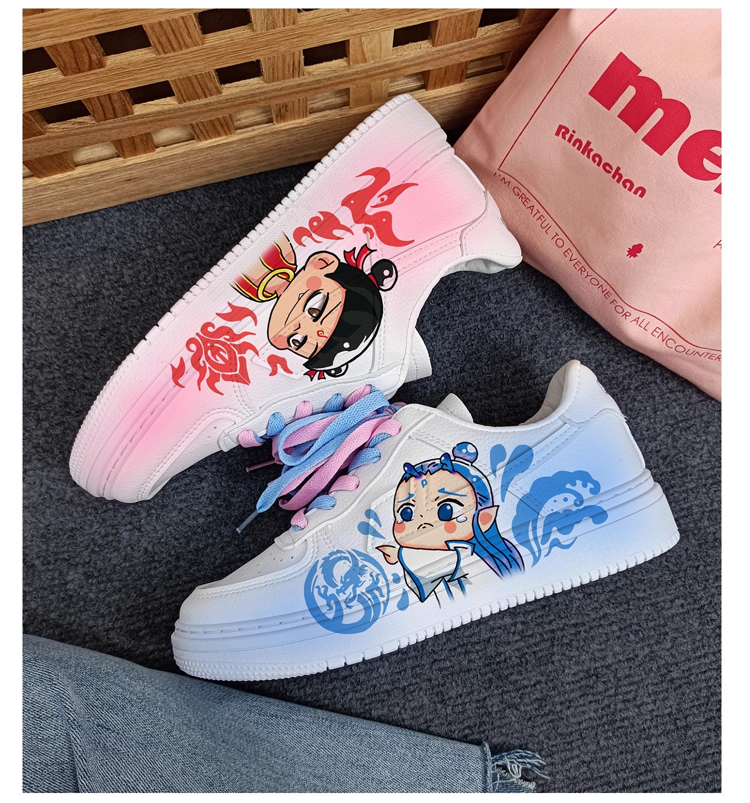 Warrior-Style Modified Nezha and Ao Bing Casual Sneakers for Men, 2025 Winter New Model, Niche Student Couple's Popular White Shoes