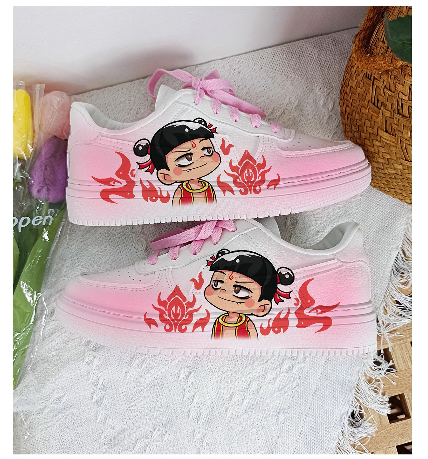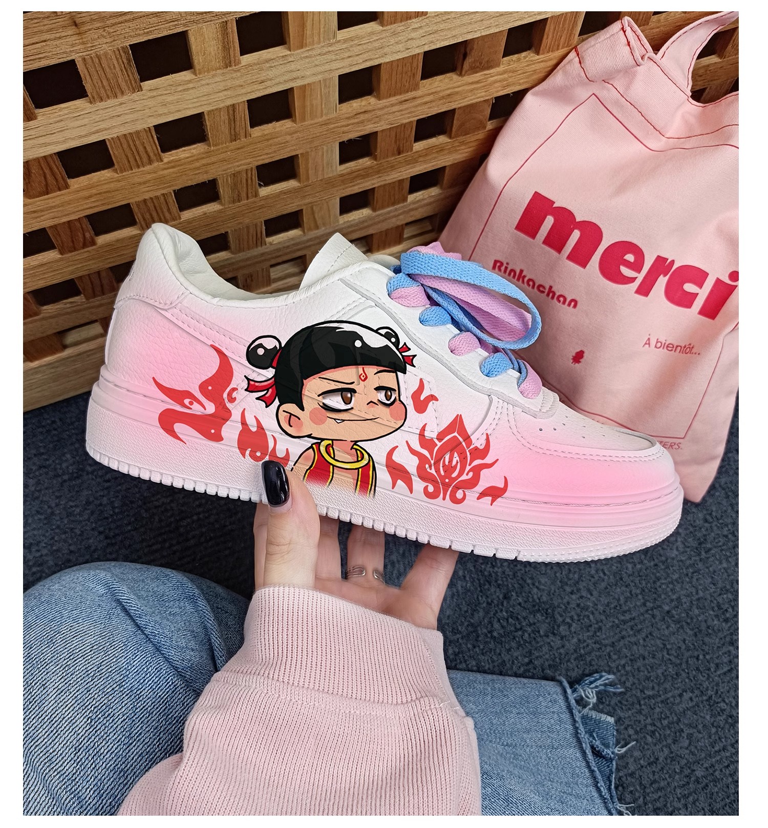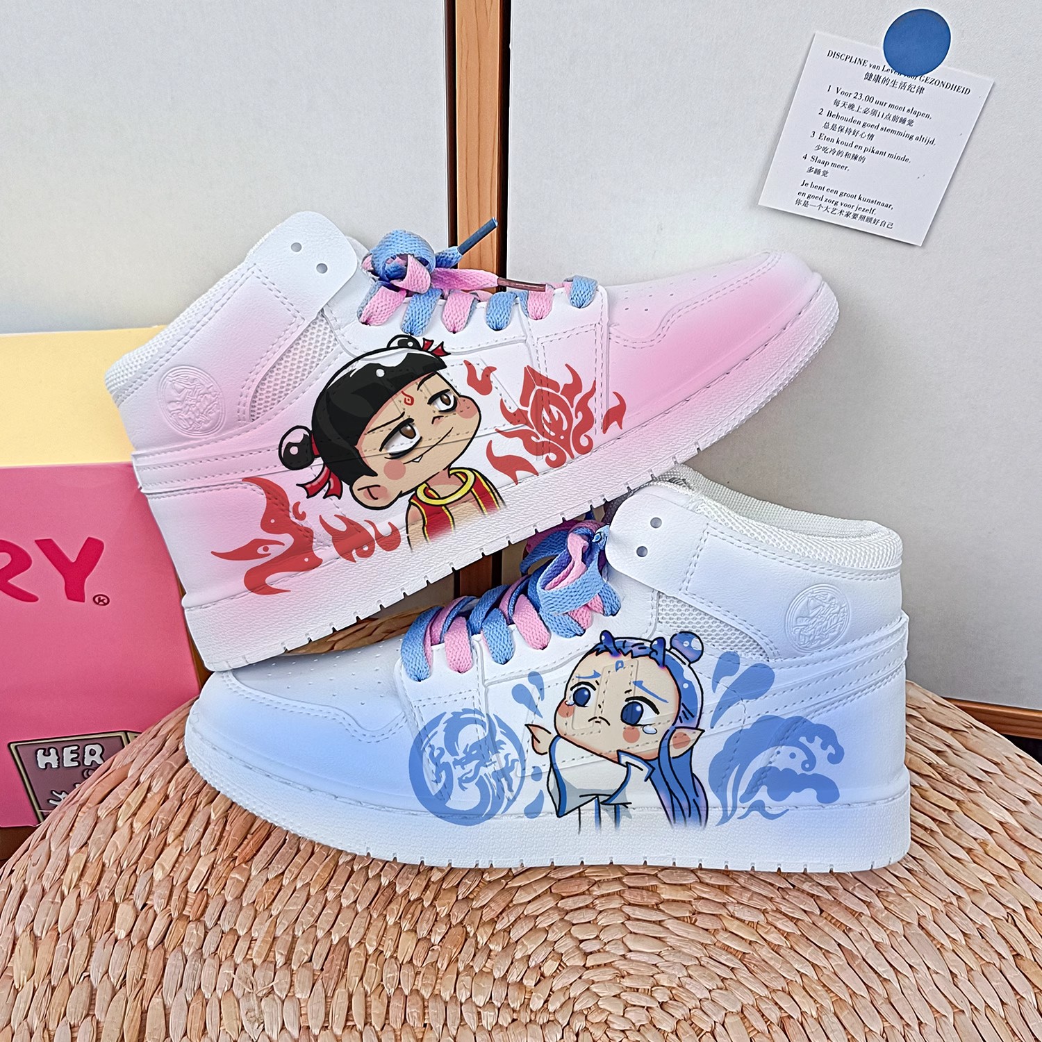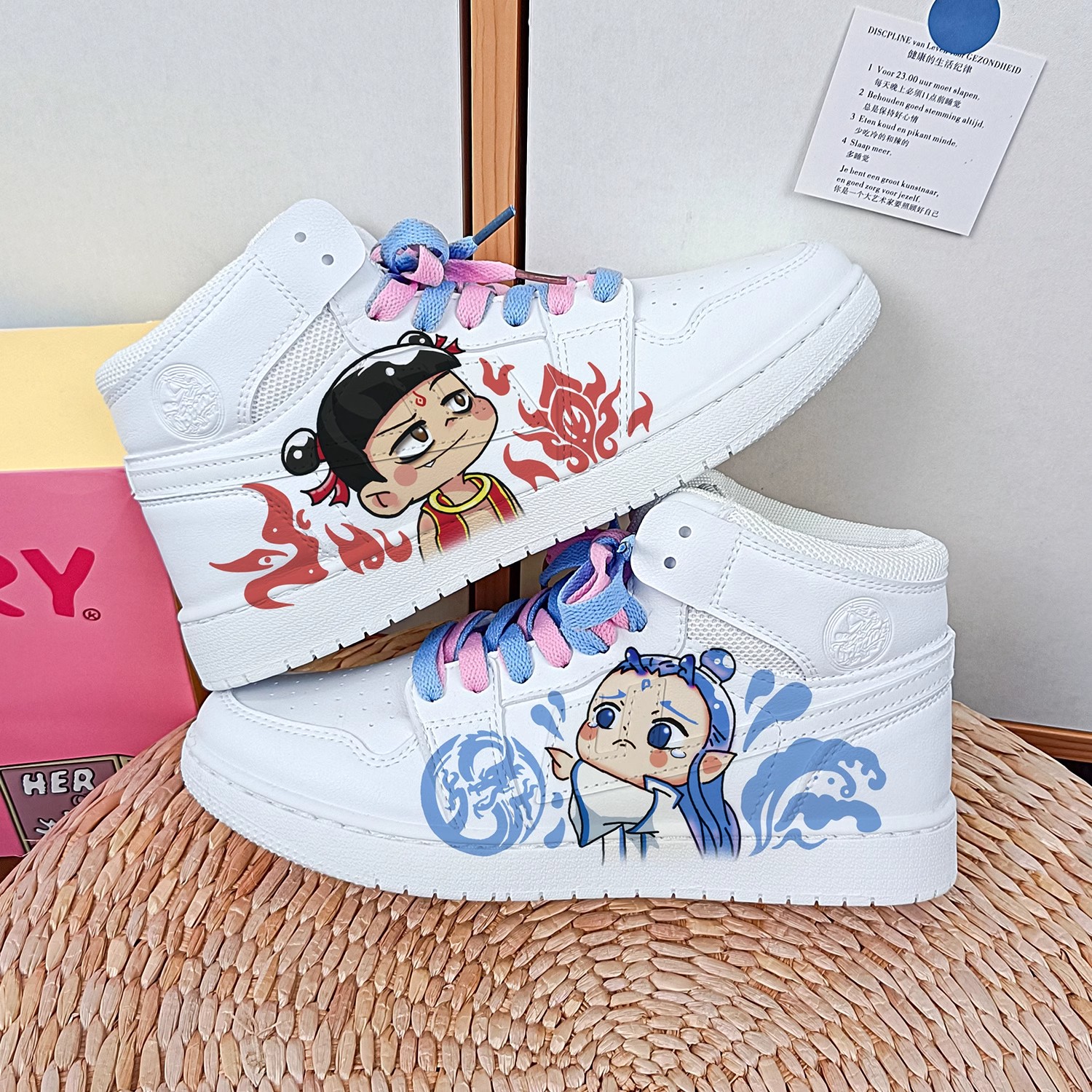 Warrior-Style Modified Nezha and Ao Bing Casual Sneakers for Men, 2025 Winter New Model, Niche Student Couple's Popular White Shoes