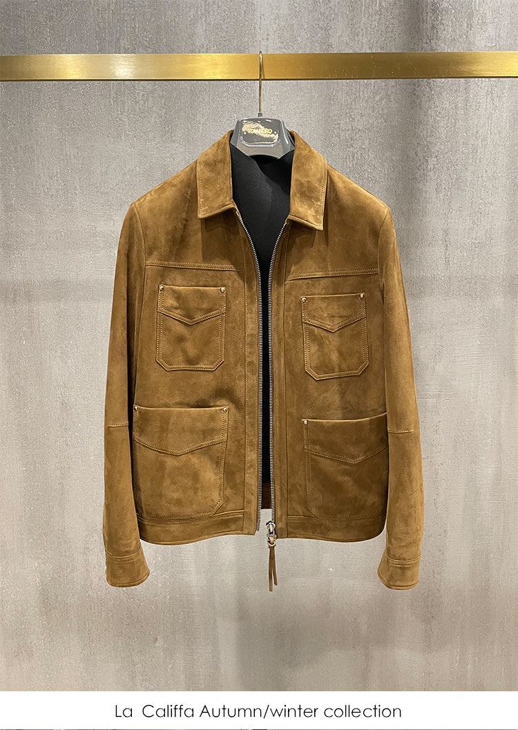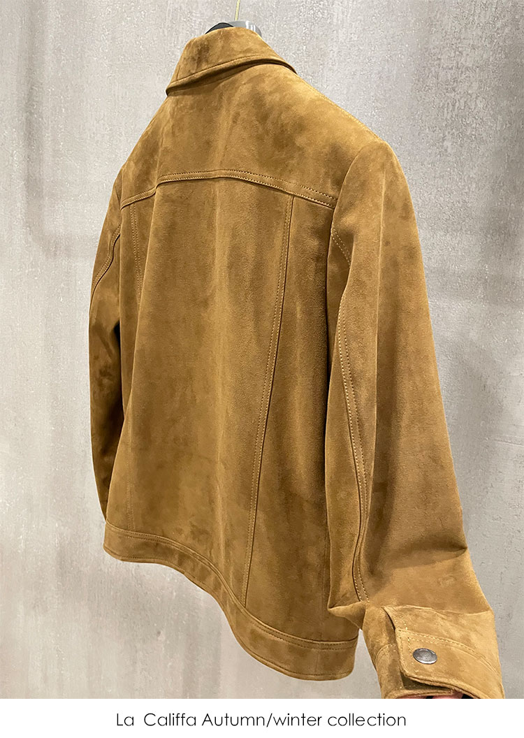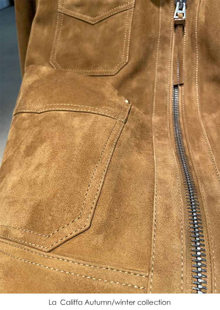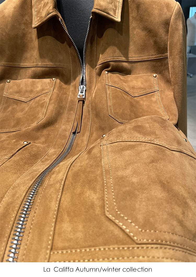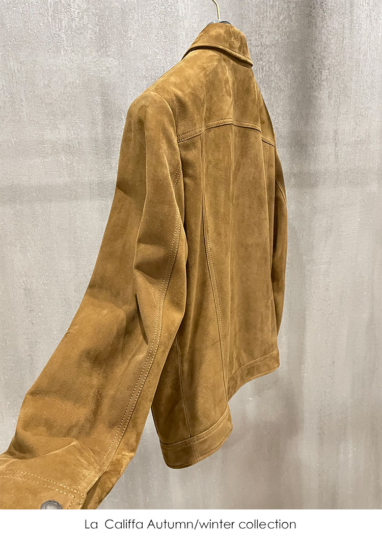 La Califfa "Sexy Boss Tobacco" Tf Velvet-Like Suede Lambskin Denim Jacket