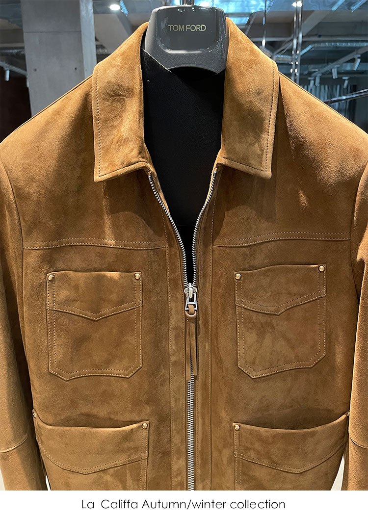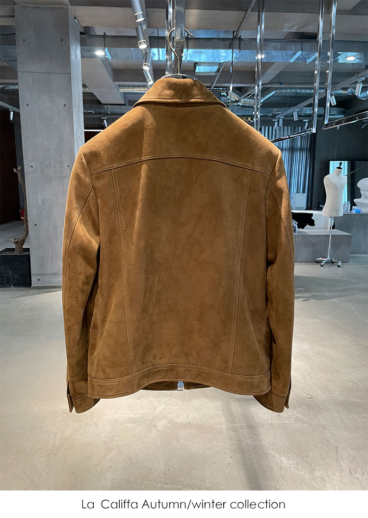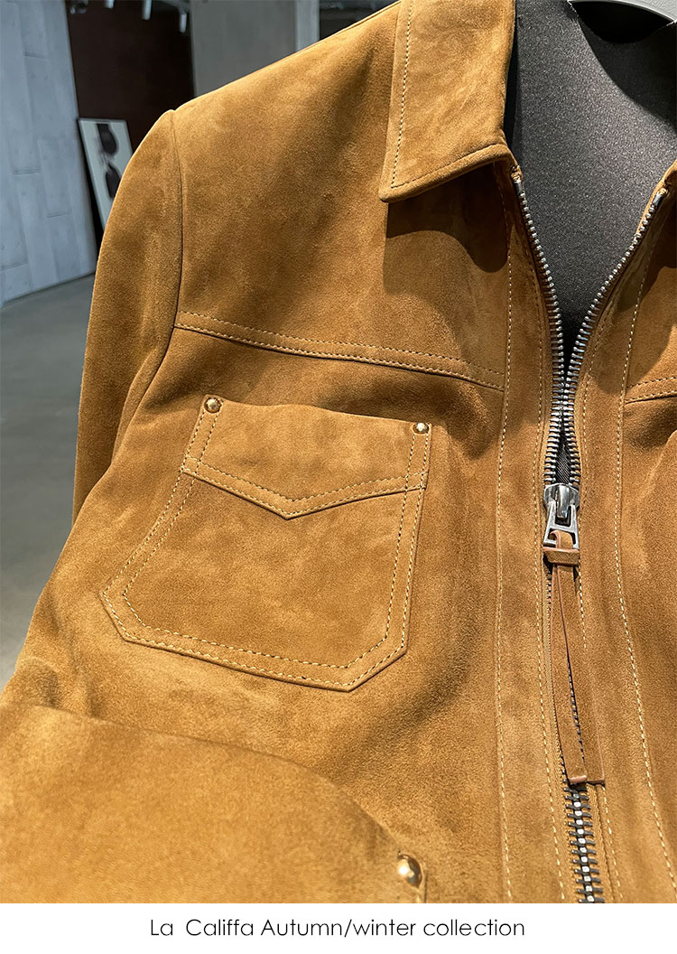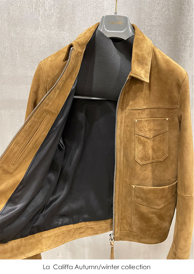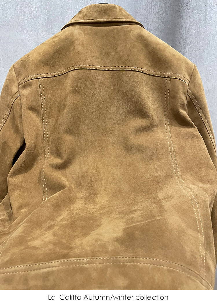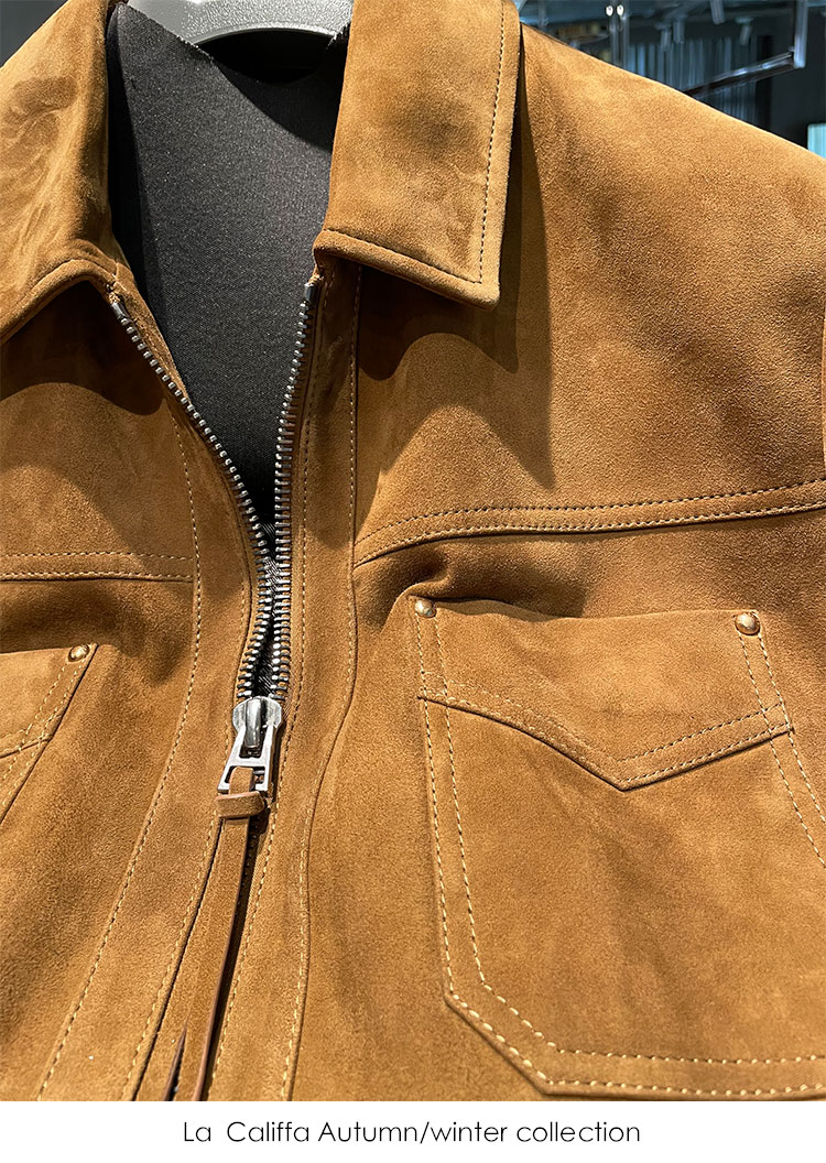 La Califfa "Sexy Boss Tobacco" Tf Velvet-Like Suede Lambskin Denim Jacket