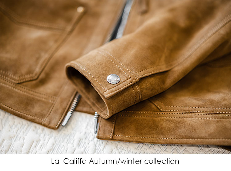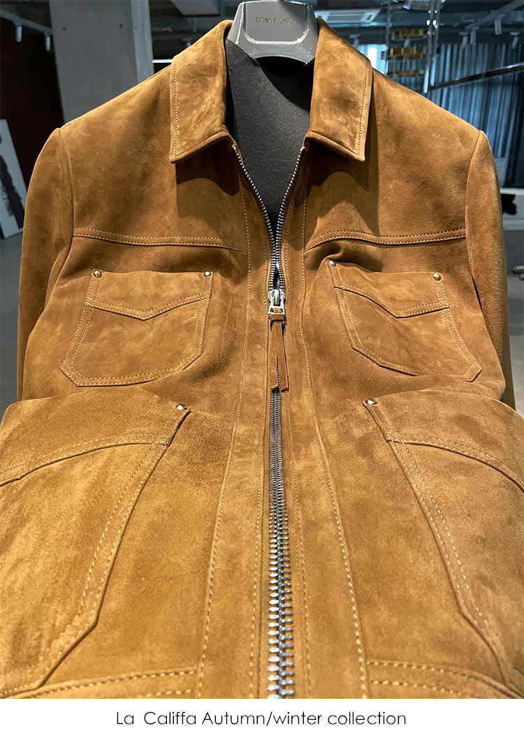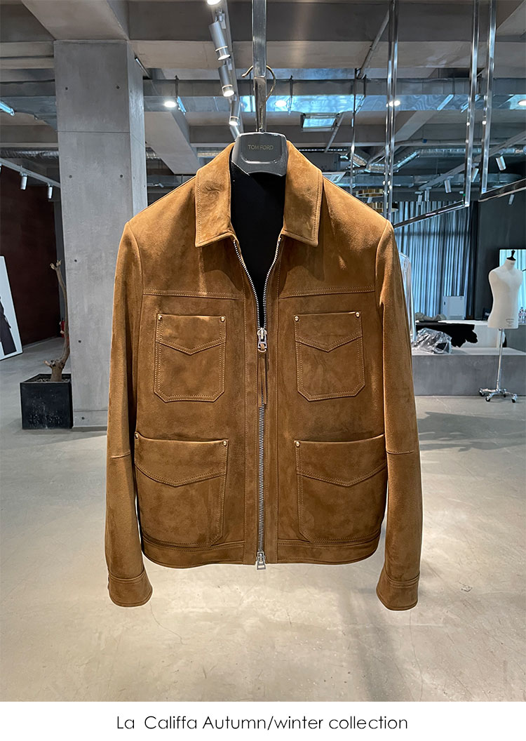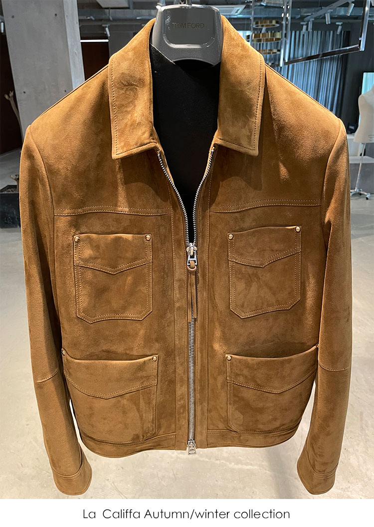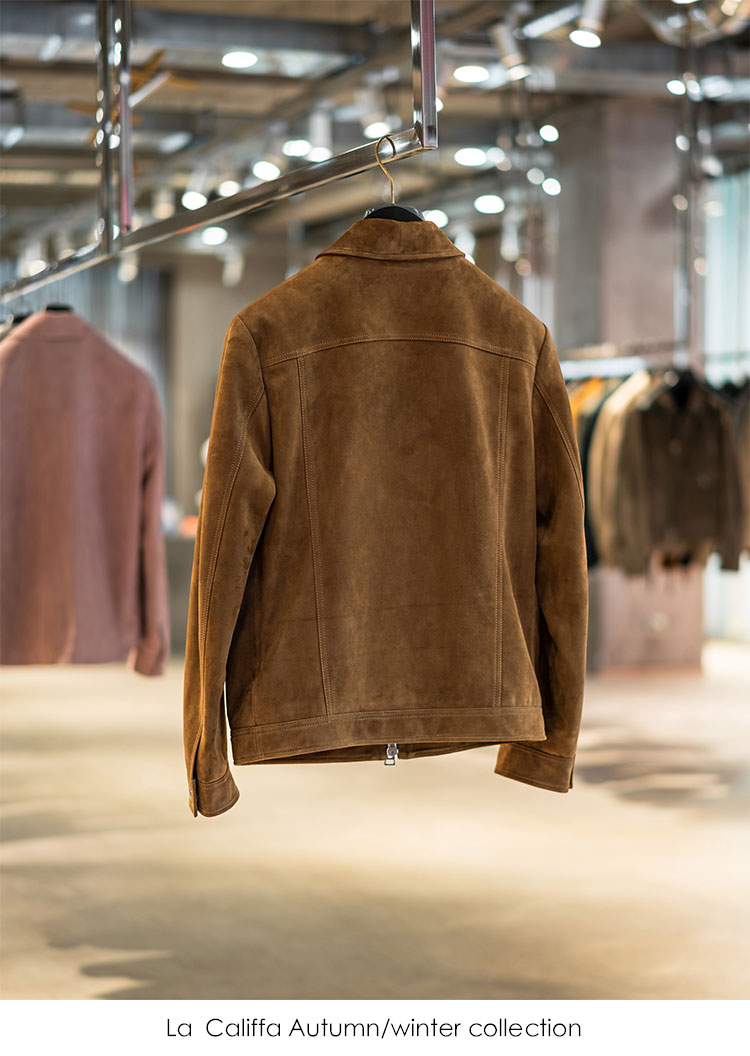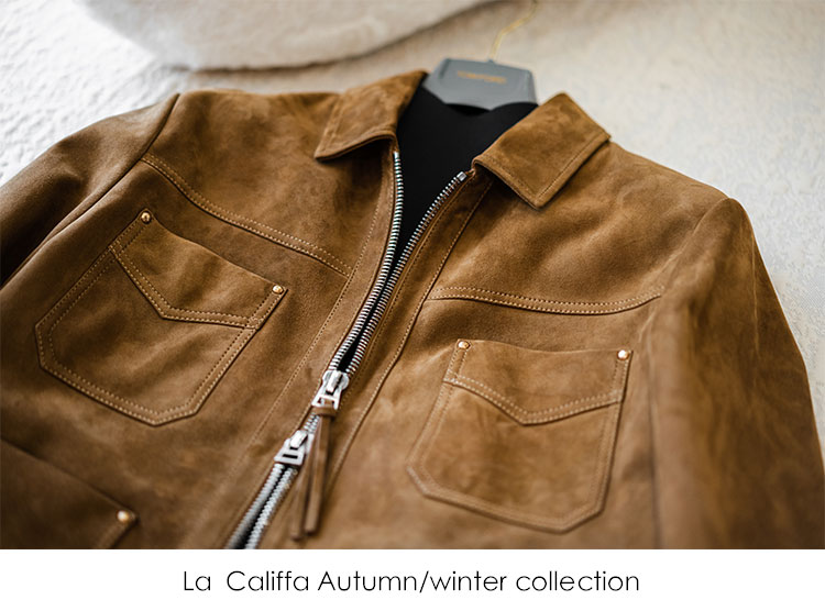 La Califfa "Sexy Boss Tobacco" Tf Velvet-Like Suede Lambskin Denim Jacket