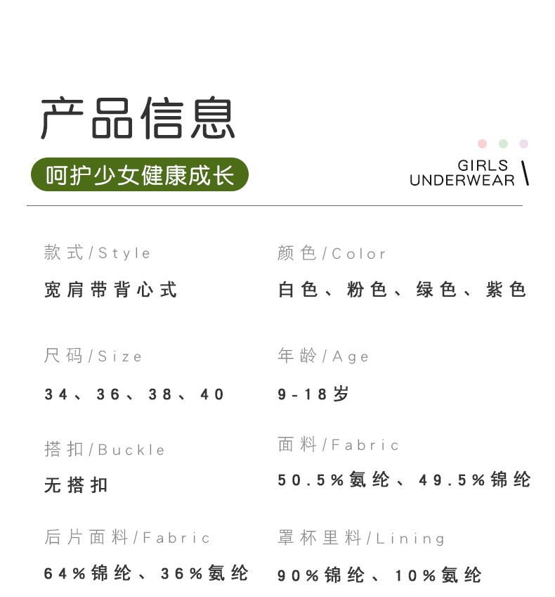 Adolescent Girls' Bras, Junior High and High School Students' Sports Vests, Older Children's Second-Stage Fixed-Cup Development Period Underwear