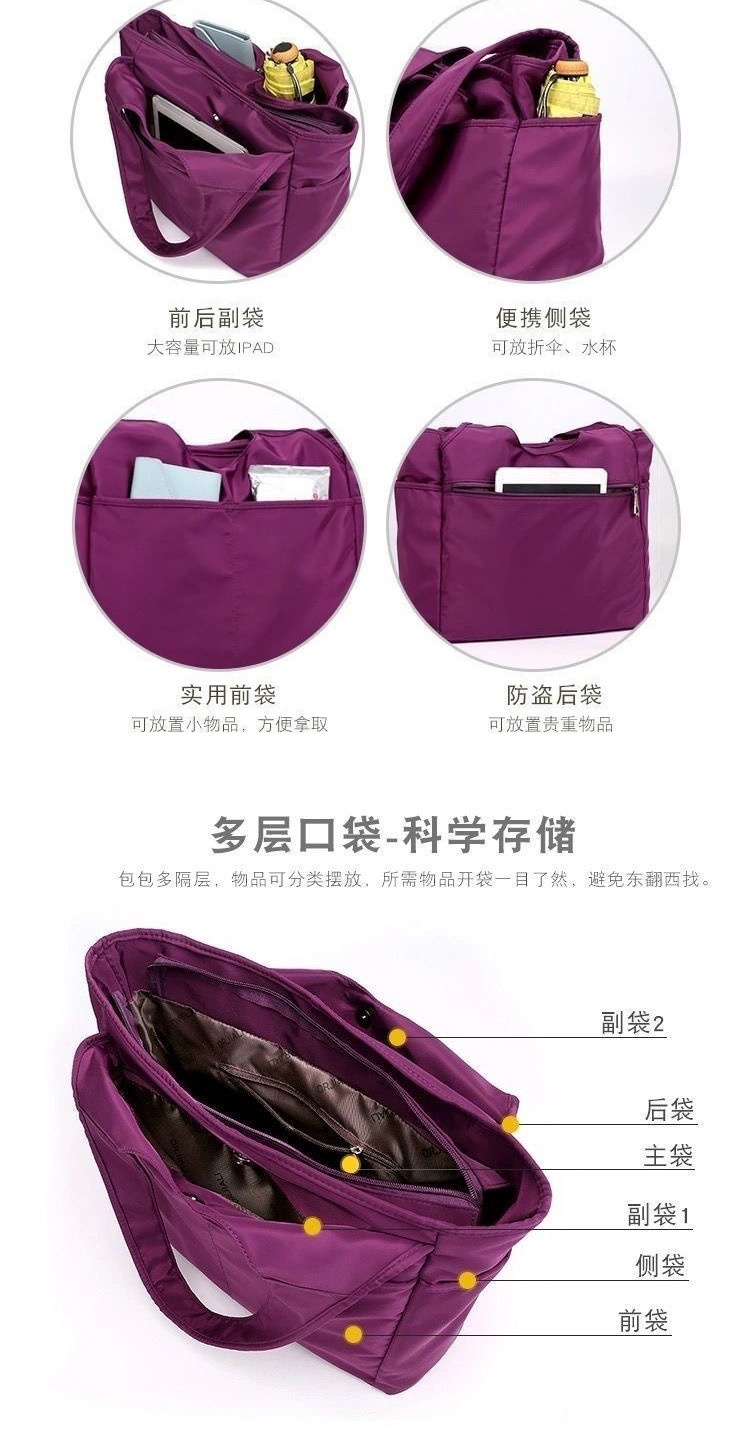 2025 New Trendy Oxford Cloth Women's Handbag Casual Multi-Pocket Large Capacity Travel Bag Nylon Shoulder Dance Bag