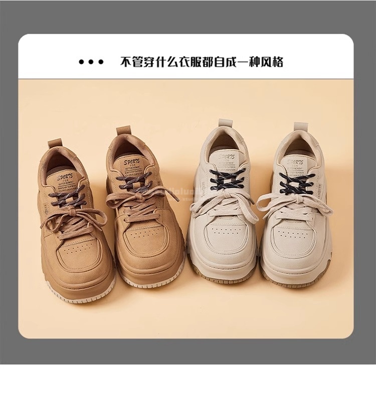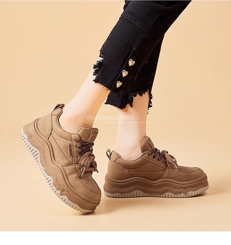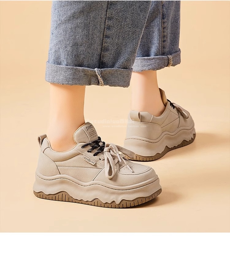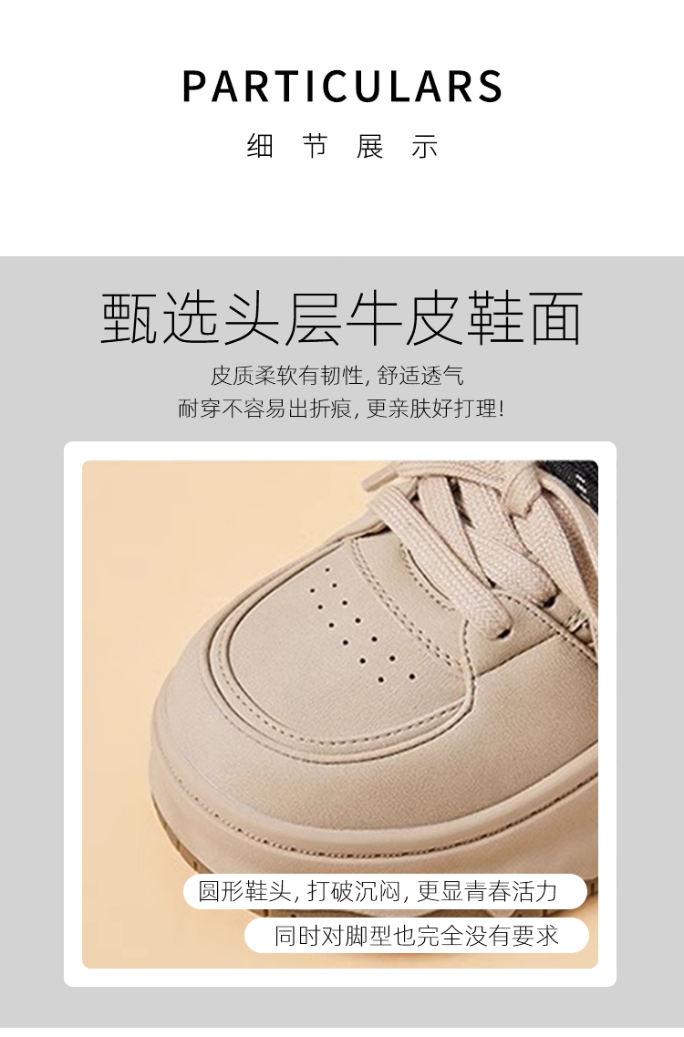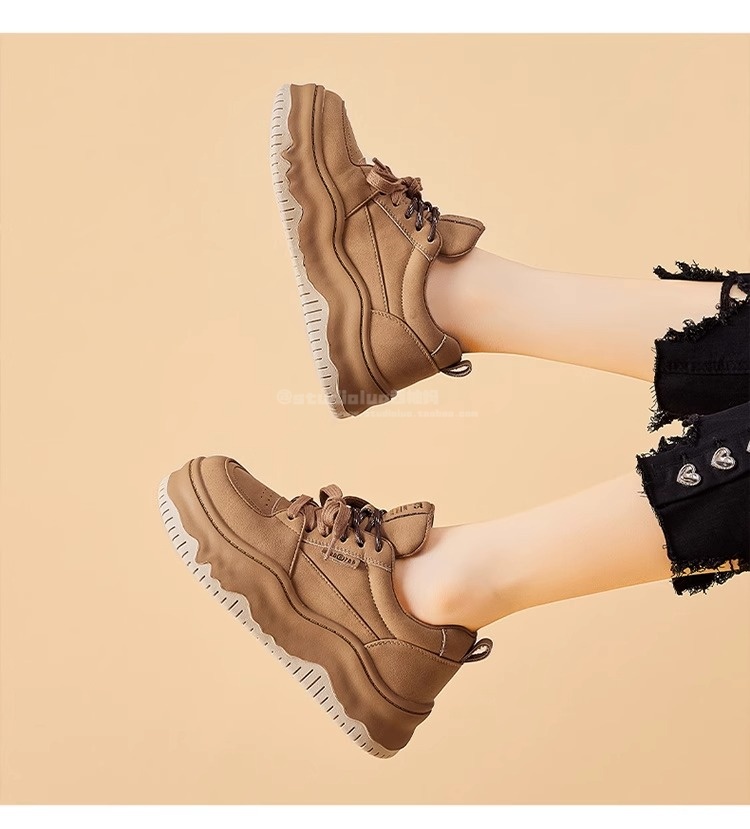 Hong Kong Genuine Leather Breathable Thick-Soled Versatile Sneakers for Women 2025 Spring and Autumn Comfortable Height-Increasing Non-Tiring Casual Shoes Sports Shoes