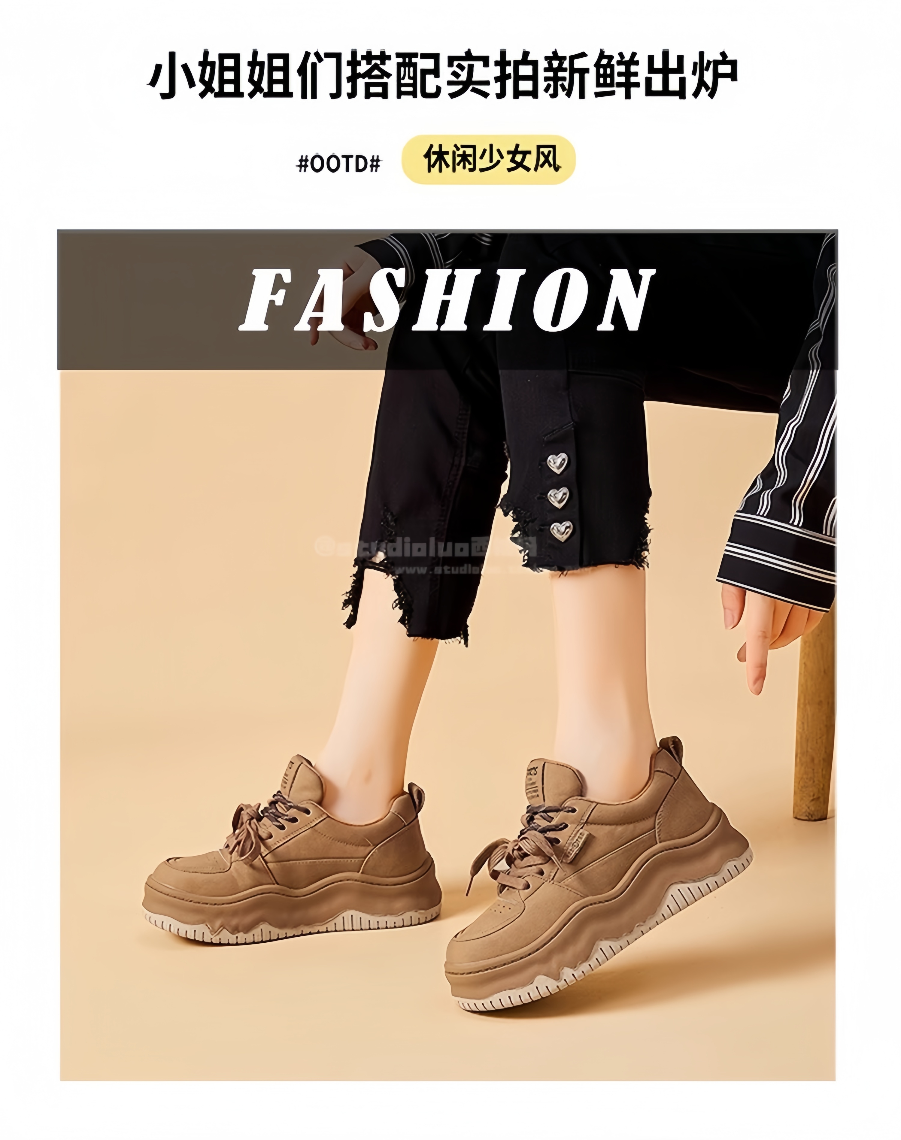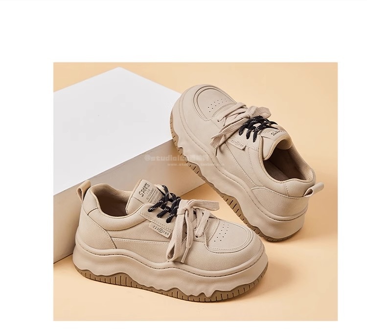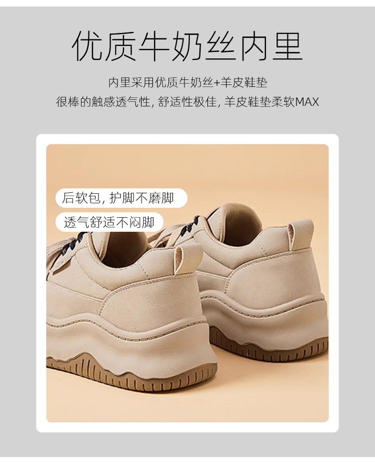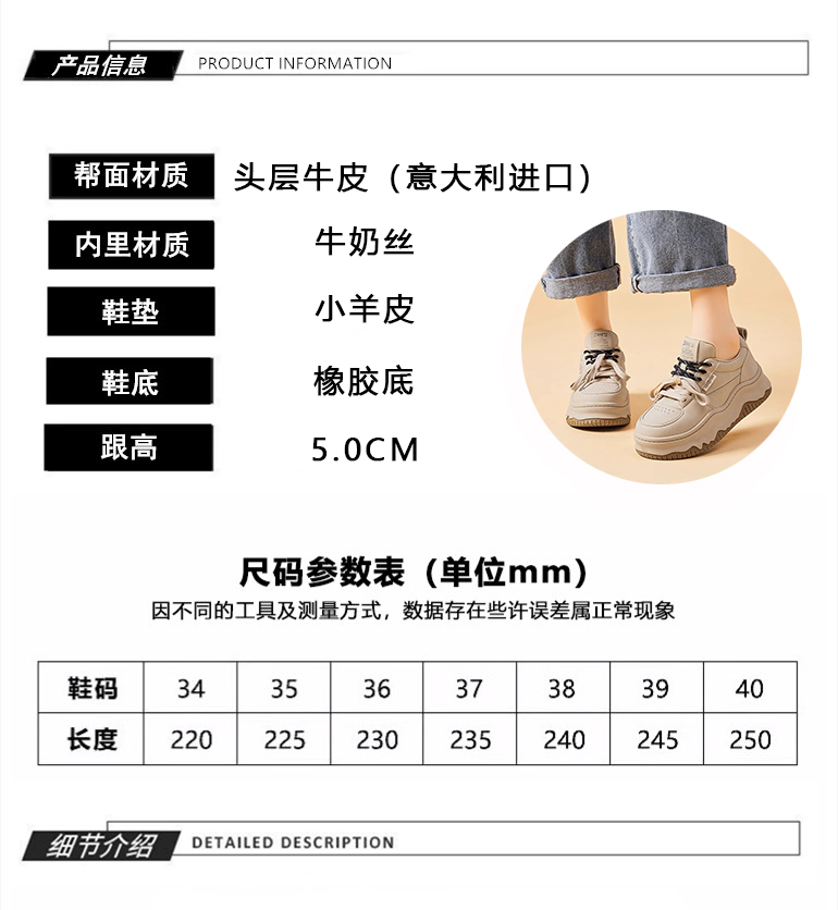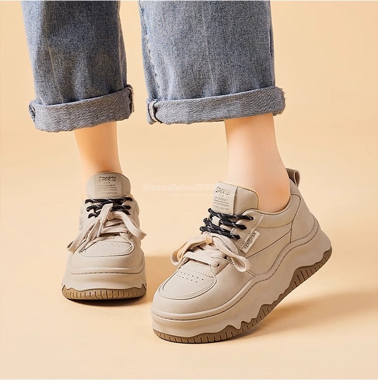 Hong Kong Genuine Leather Breathable Thick-Soled Versatile Sneakers for Women 2025 Spring and Autumn Comfortable Height-Increasing Non-Tiring Casual Shoes Sports Shoes