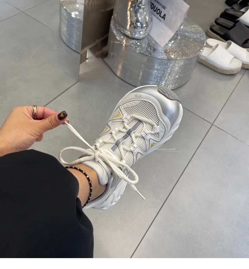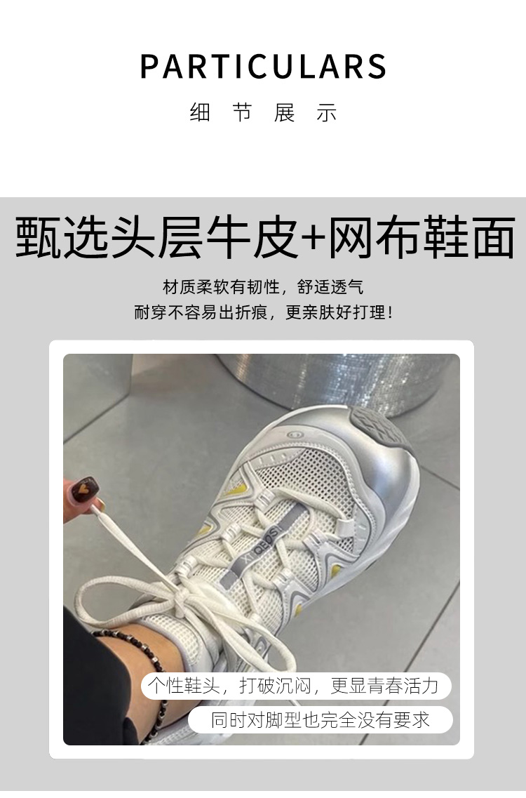 Hong Kong Genuine Leather Mesh Breathable Fashionable Casual Shoes for Women 2025 Summer New Versatile Mango Head Comfortable Dad Shoes