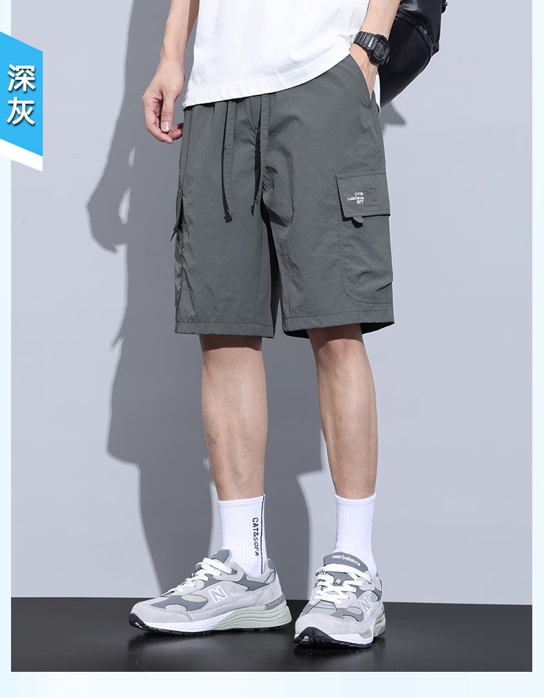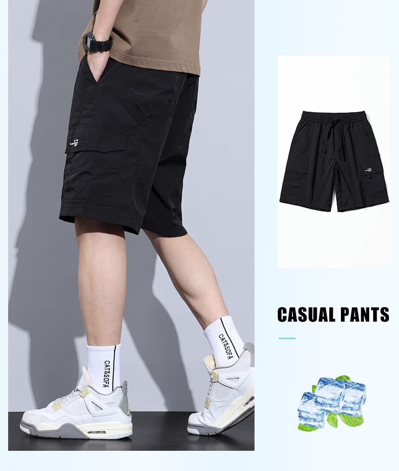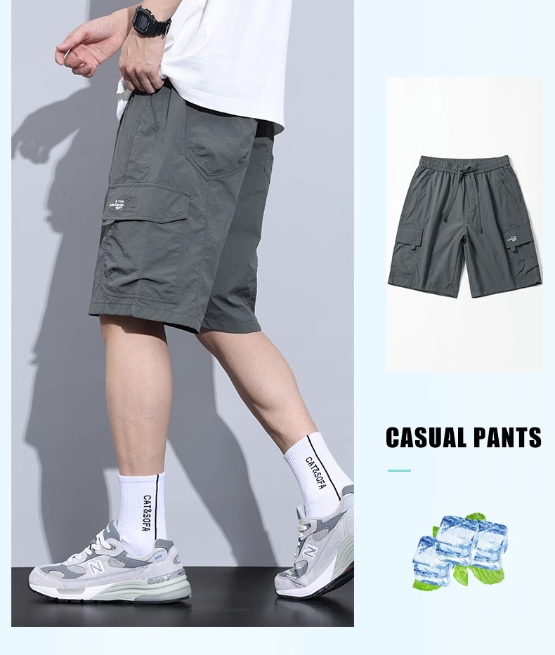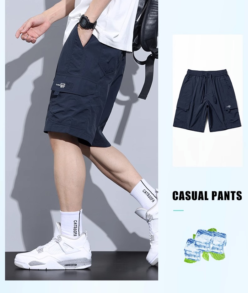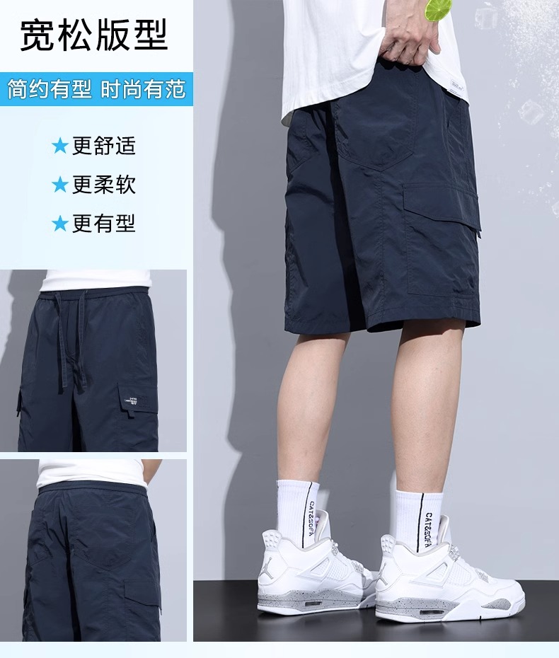 Jeanswest Ice Silk Work Shorts for Men, Summer Thin Style, Trendy Brand, Loose Fit, Large Size, Quick-Drying, Sports Casual Five-Point Shorts