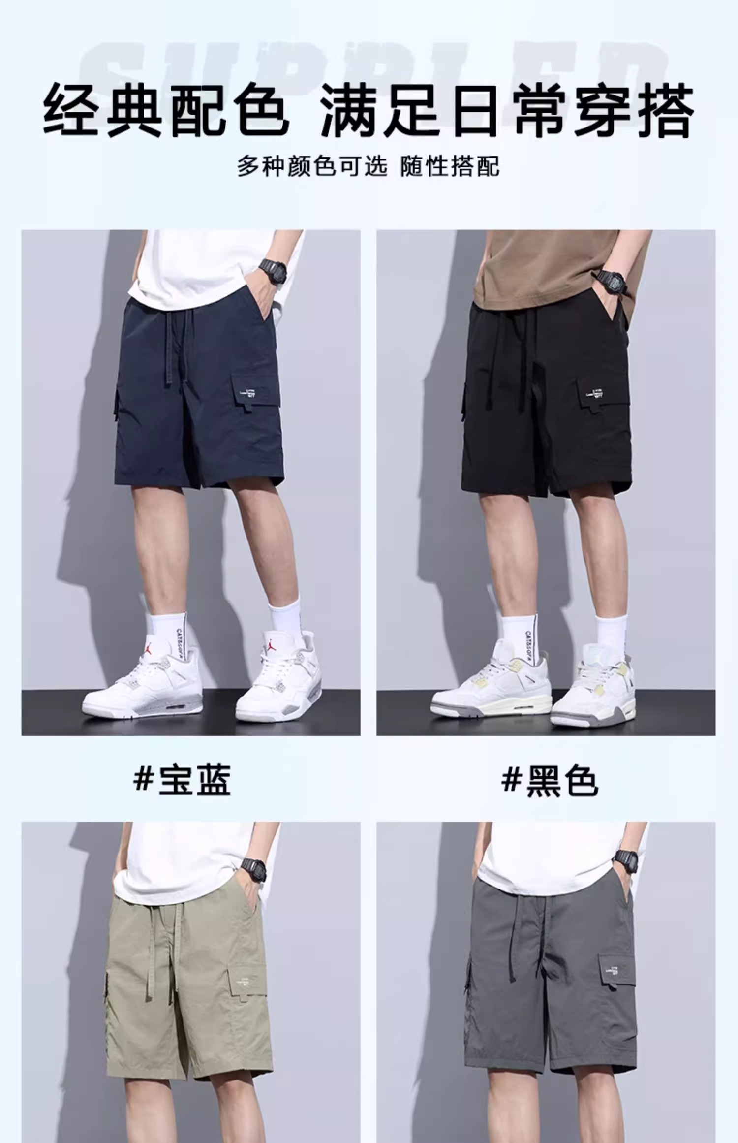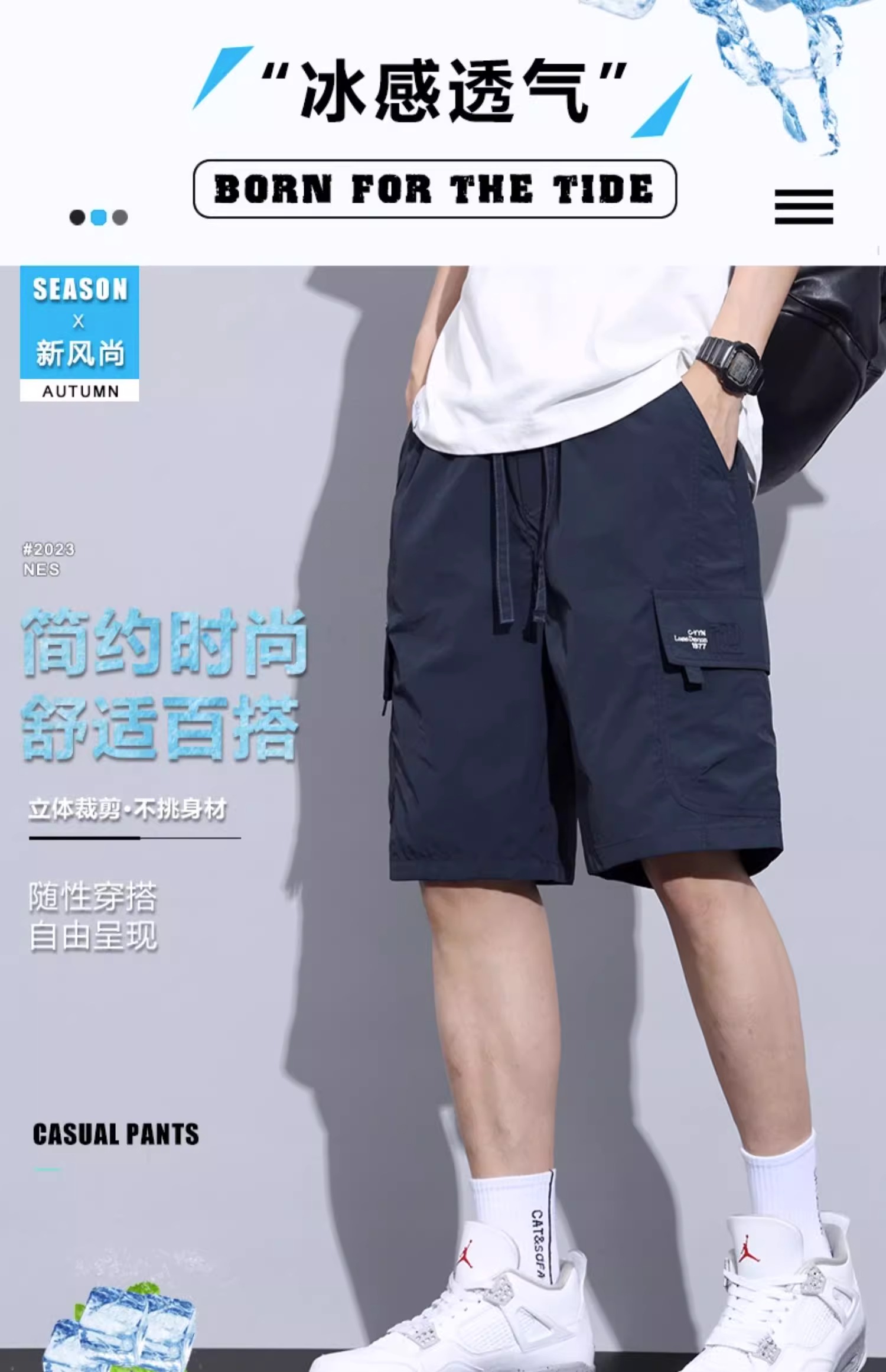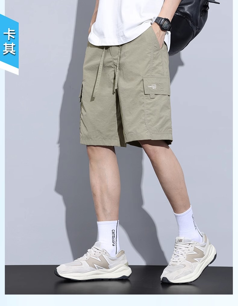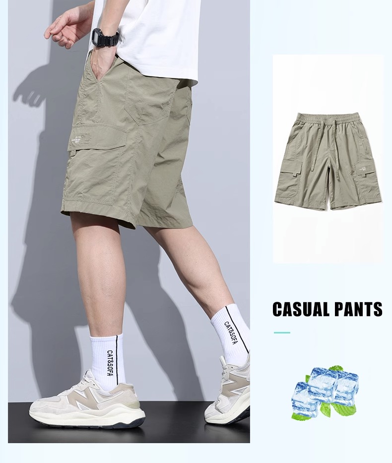 Jeanswest Ice Silk Work Shorts for Men, Summer Thin Style, Trendy Brand, Loose Fit, Large Size, Quick-Drying, Sports Casual Five-Point Shorts