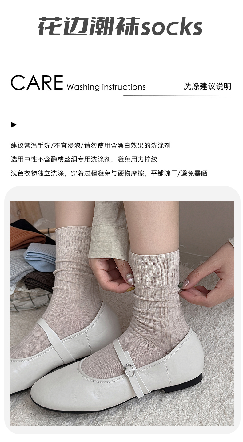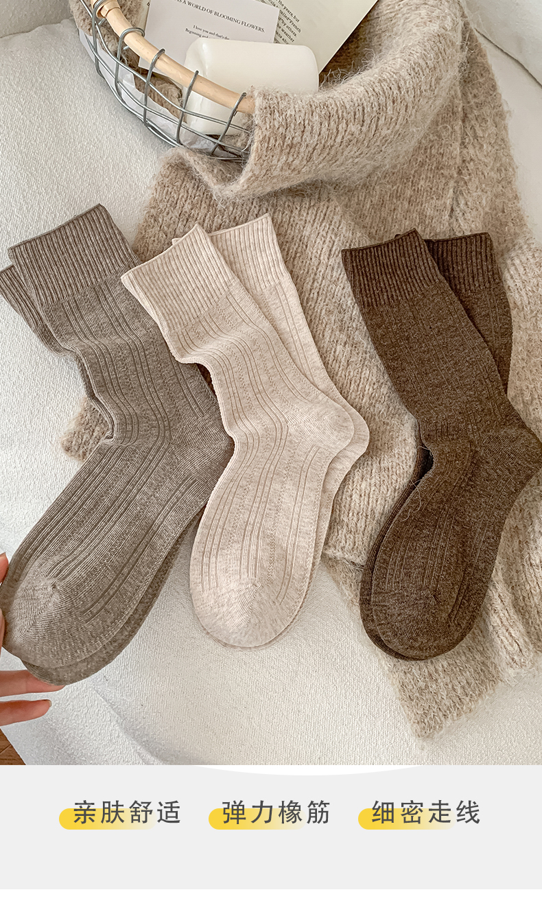 Oatmeal-Colored Women's Mid-Calf Socks, Miu Style, Paired with Birkenstock Shoes, Autumn and Winter Amber Shimmer Style Slouch Socks
