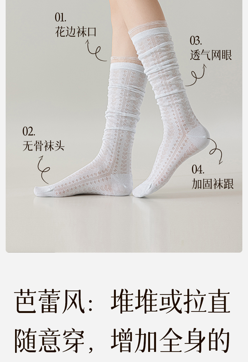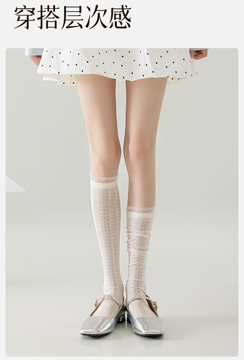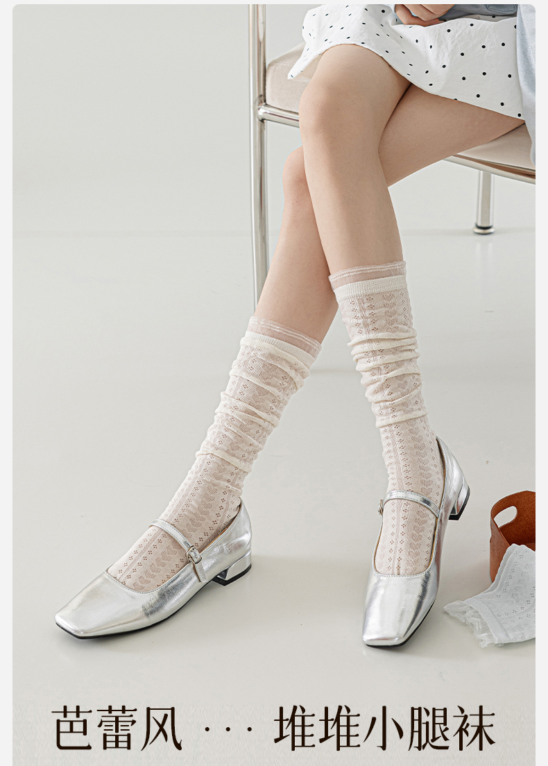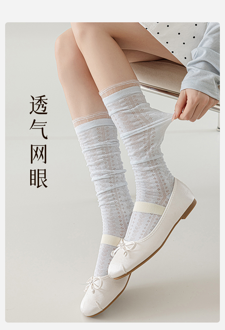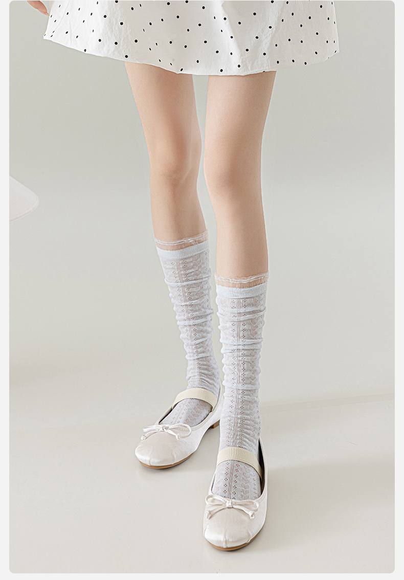 Long Socks for Women, Ballet Style Calf Socks, Summer Thin White Lace Slouch Socks, Lolita Slimming High Socks