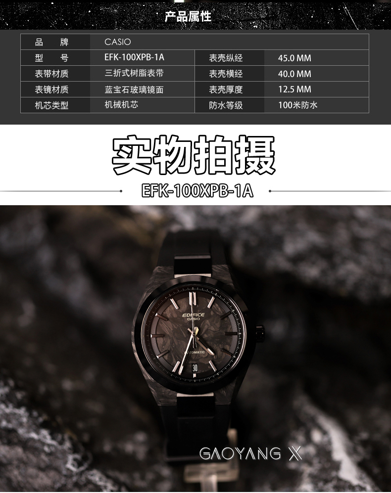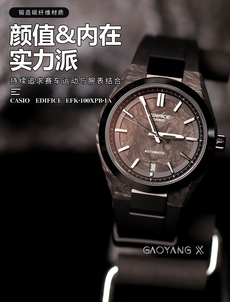 New Casio Forged Carbon Fiber Automatic Mechanical Men's Watch Pointer Business Casual Efk-100Xpb-1A