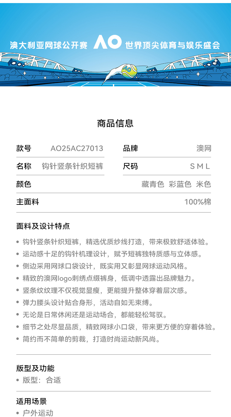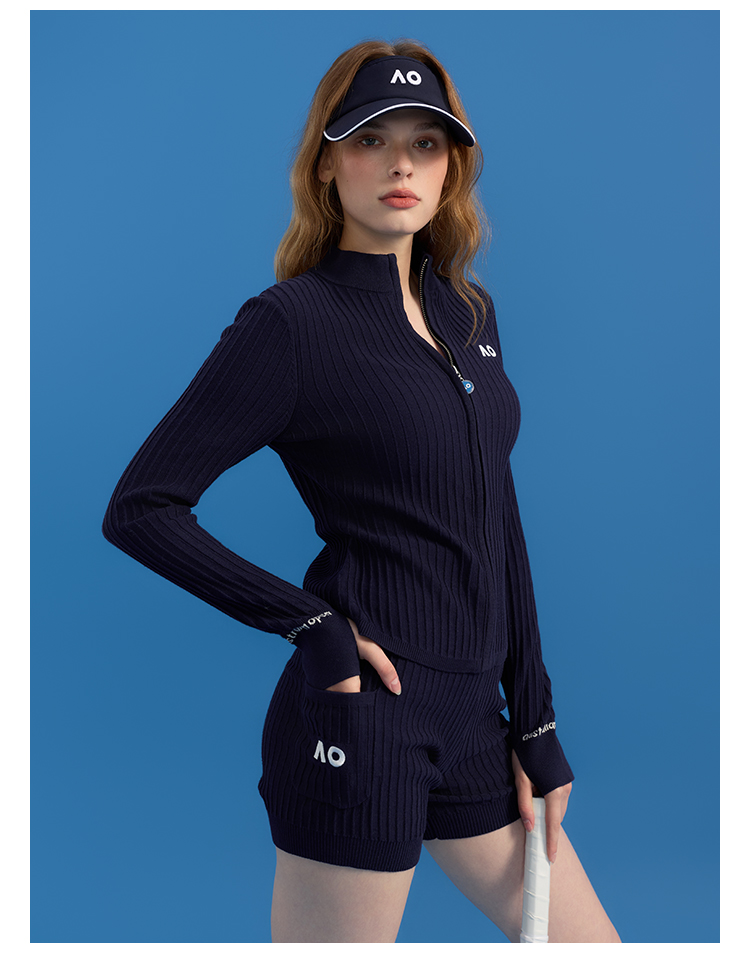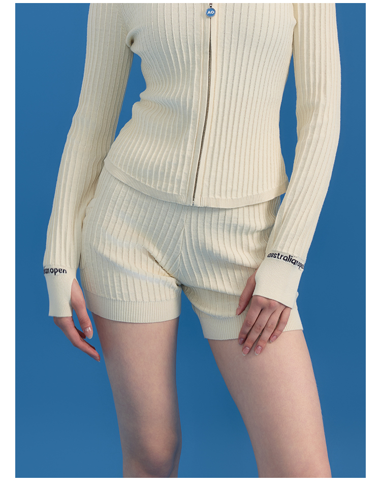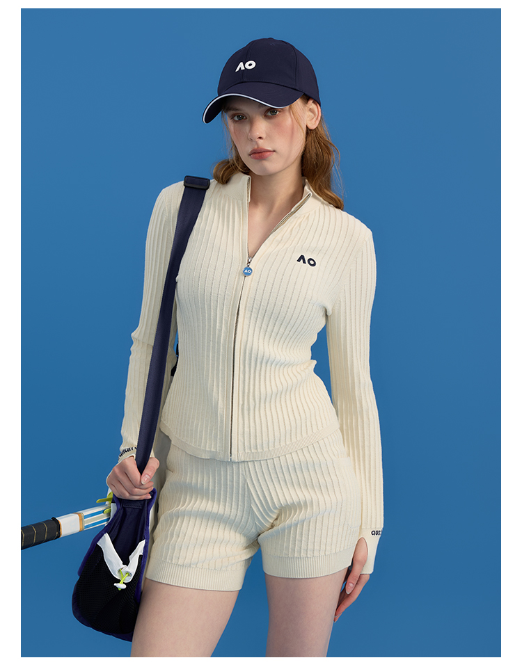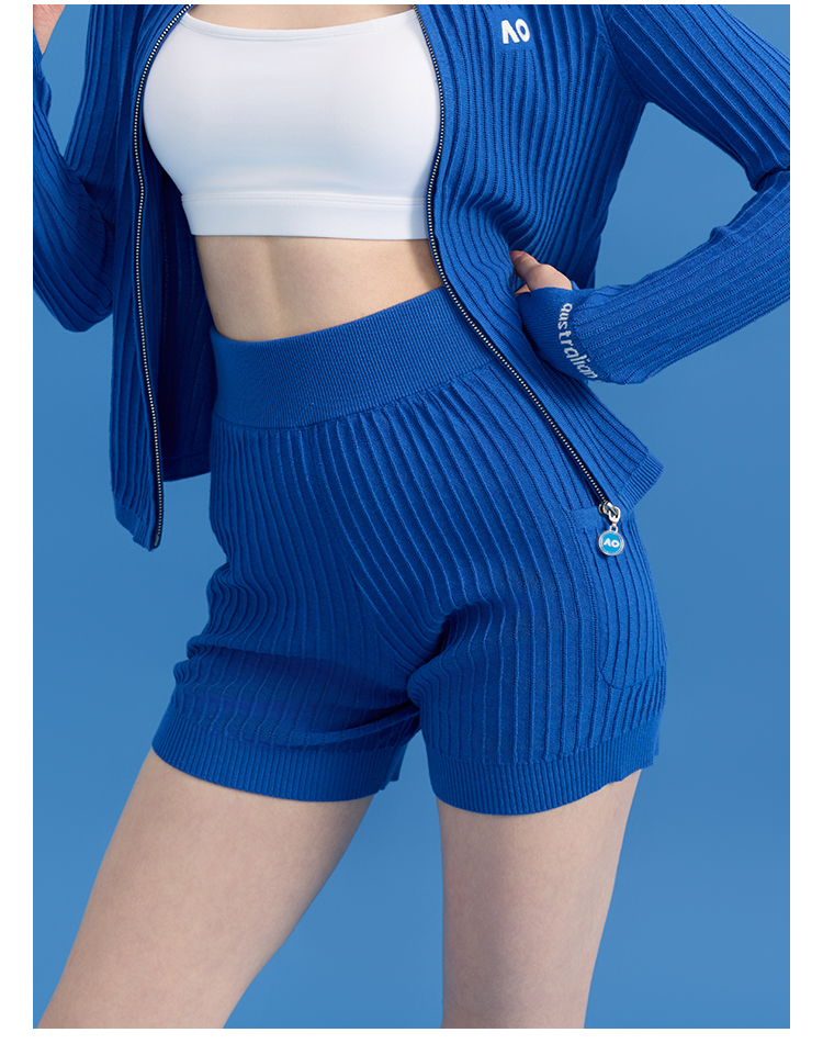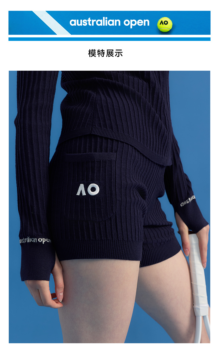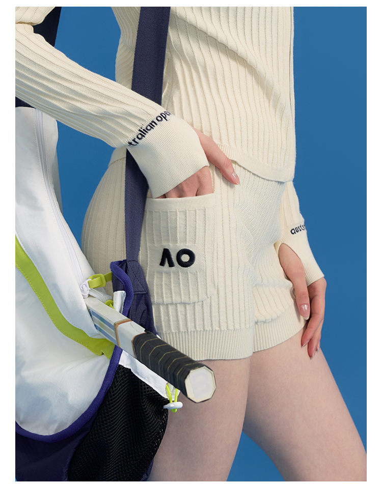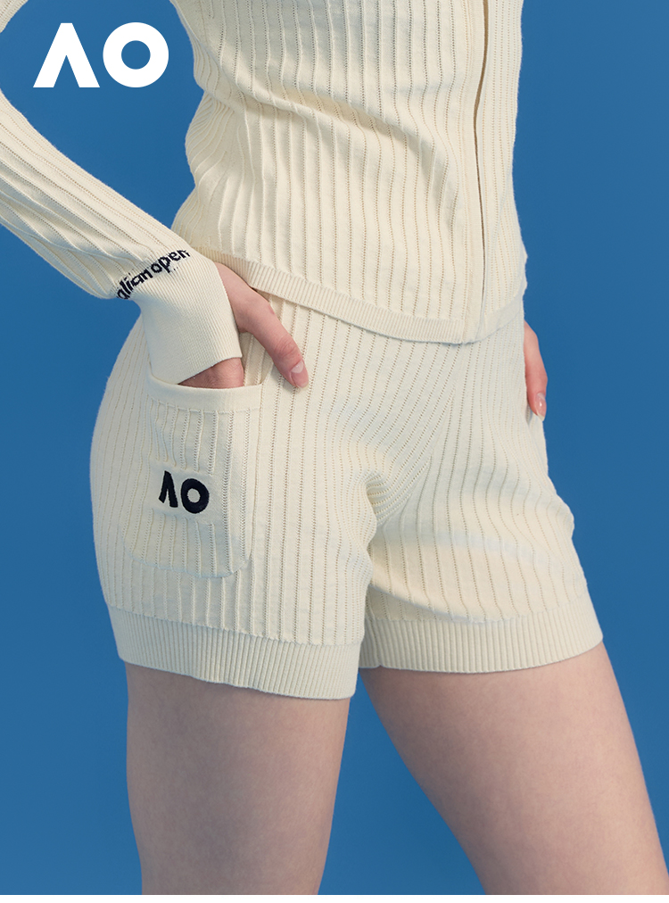 Ao Australian Open Crochet Vertical Stripe Knit Sports Tennis Running Fitness Yoga Shorts for Women Summer Outerwear 2025 New Style