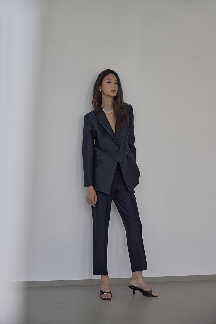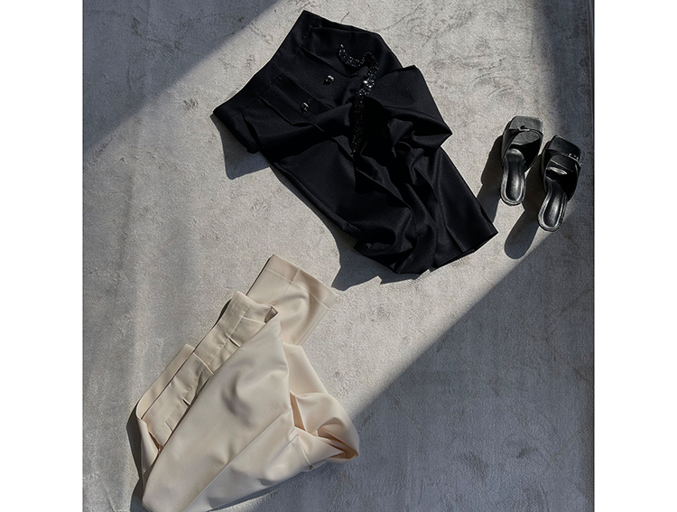 王艺搭配的白色丝缎衬衫为23SS新品 点击图片查看