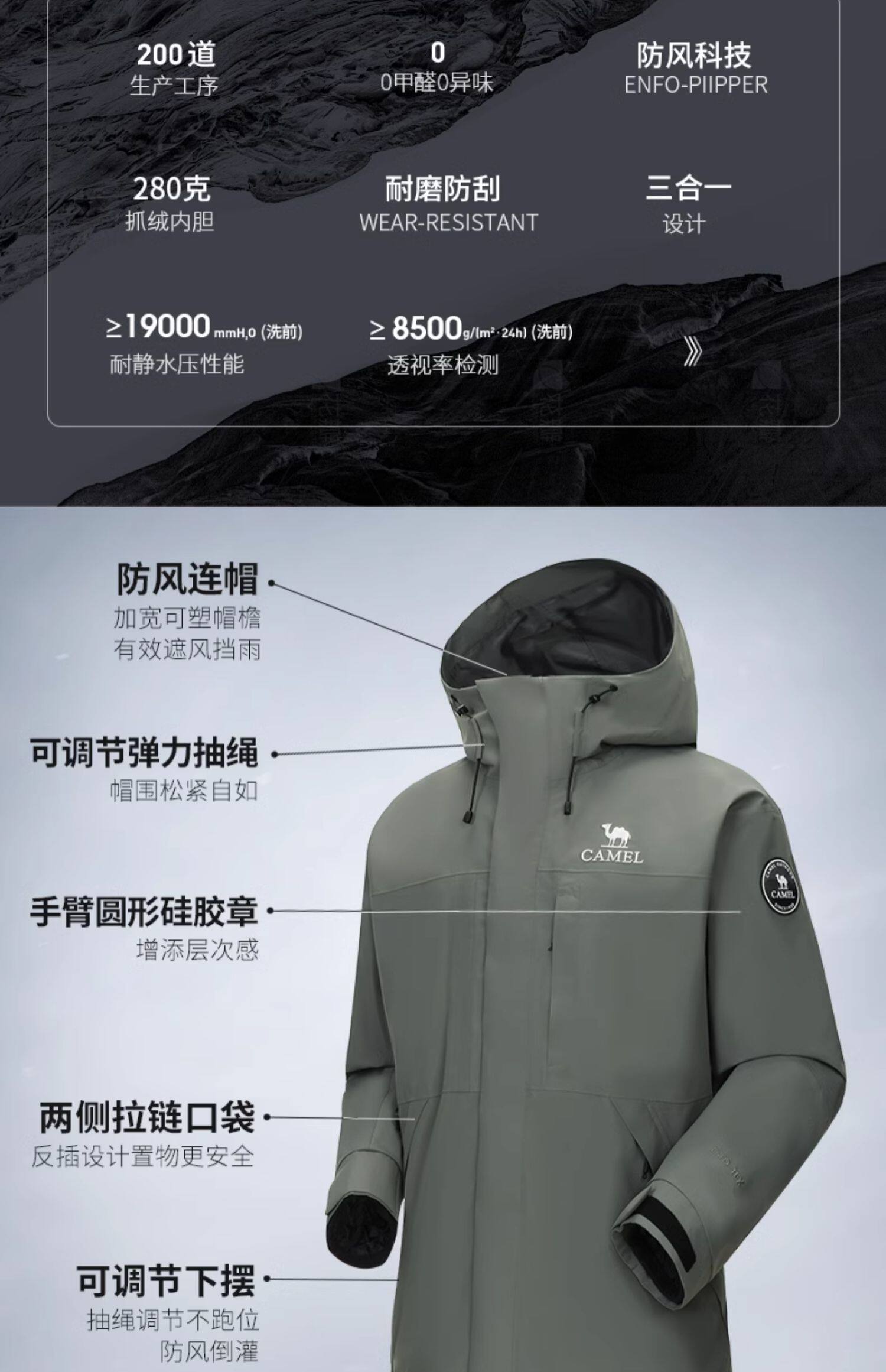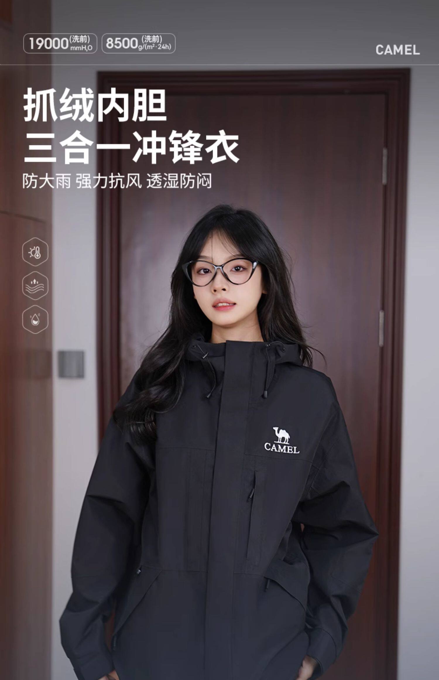 [Rain Dancer] Camel Outdoor 3-in-1 Jacket for Women, New Model for Tibet, Waterproof Mountaineering Jacket, Hiking Jacket