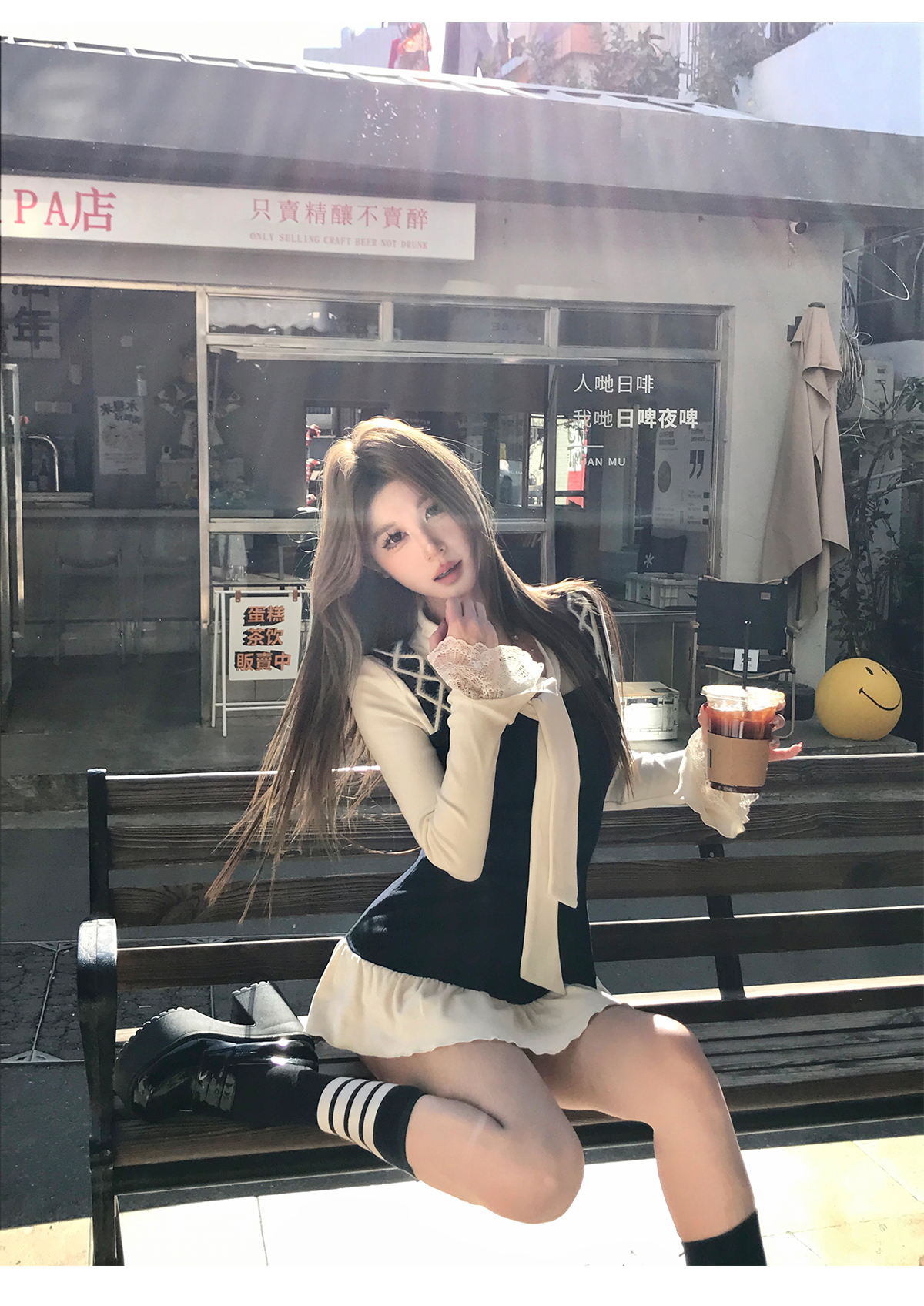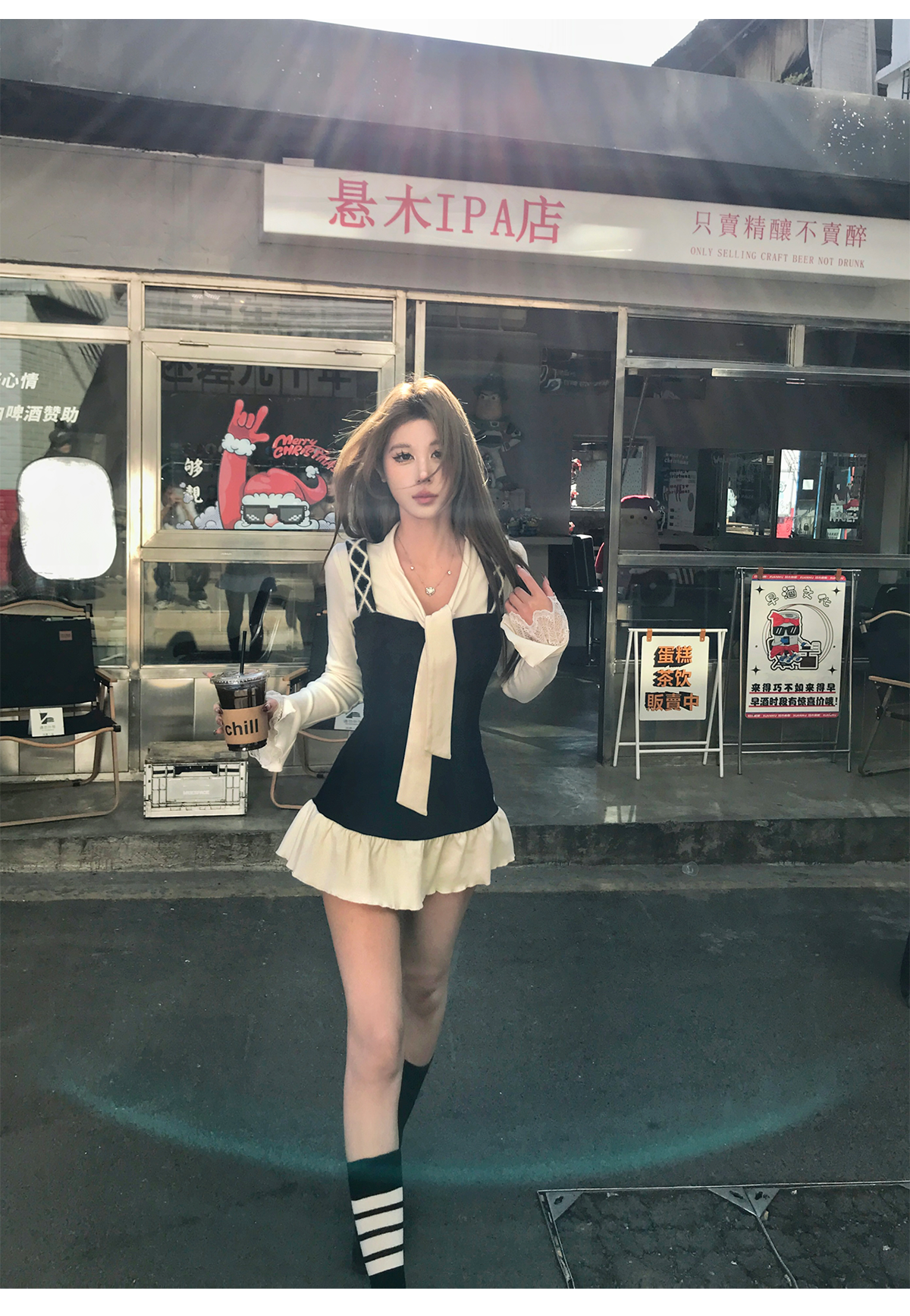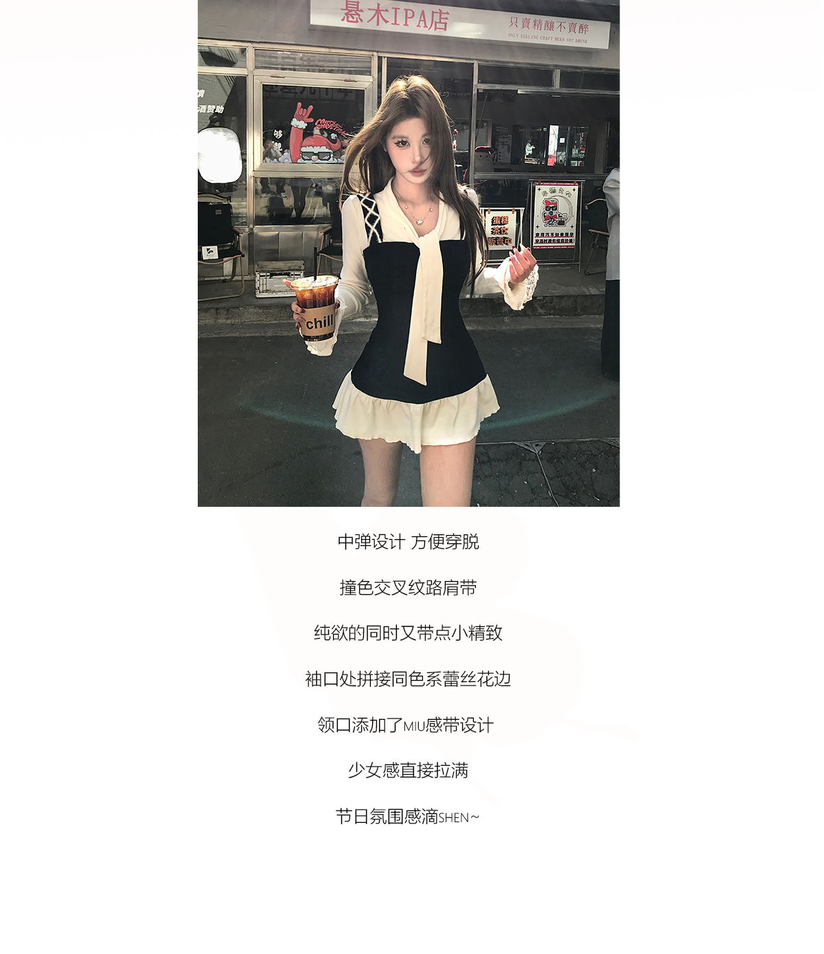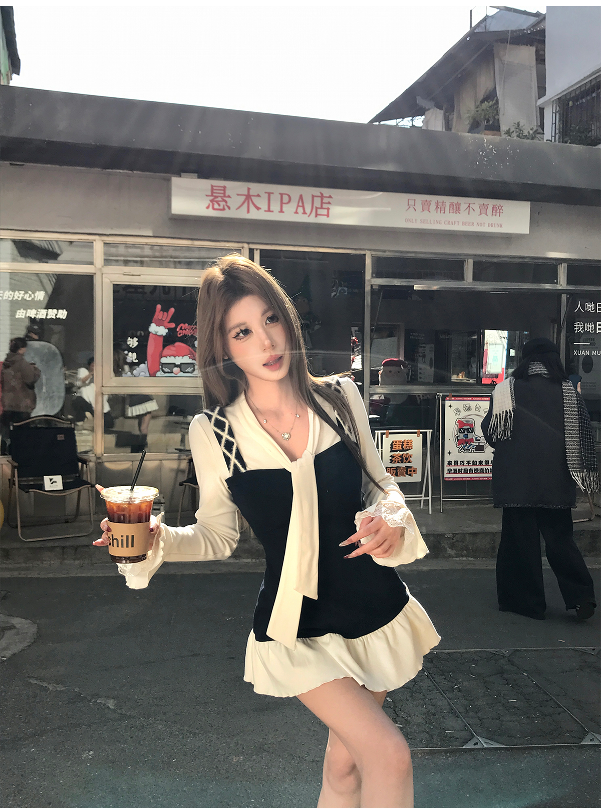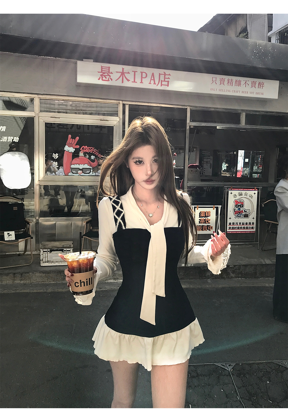 Mejiu Mijiu [Half Paper Wind and Frost] Fake Two-Piece Waist-Cinching Dress Women's Long-Sleeve High-End Spring Elegant Dress