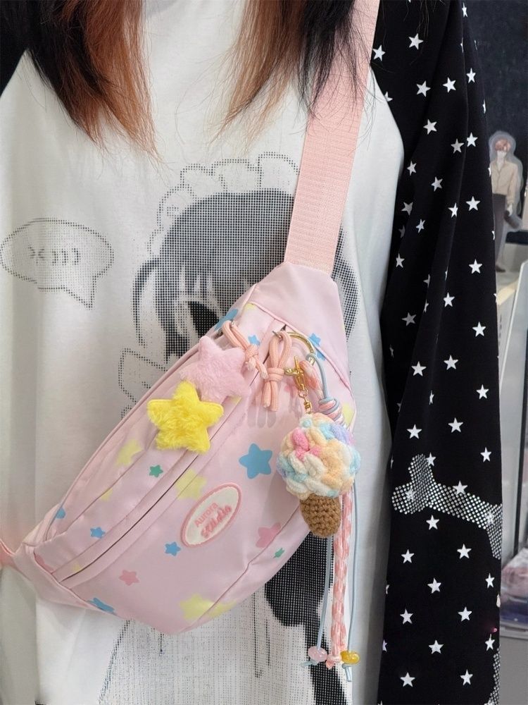 Outdoor Lightweight Small Crossbody Bag, New Cute Star Girl Chest Bag, Korean and Japanese Style, Casual Versatile Waist Bag