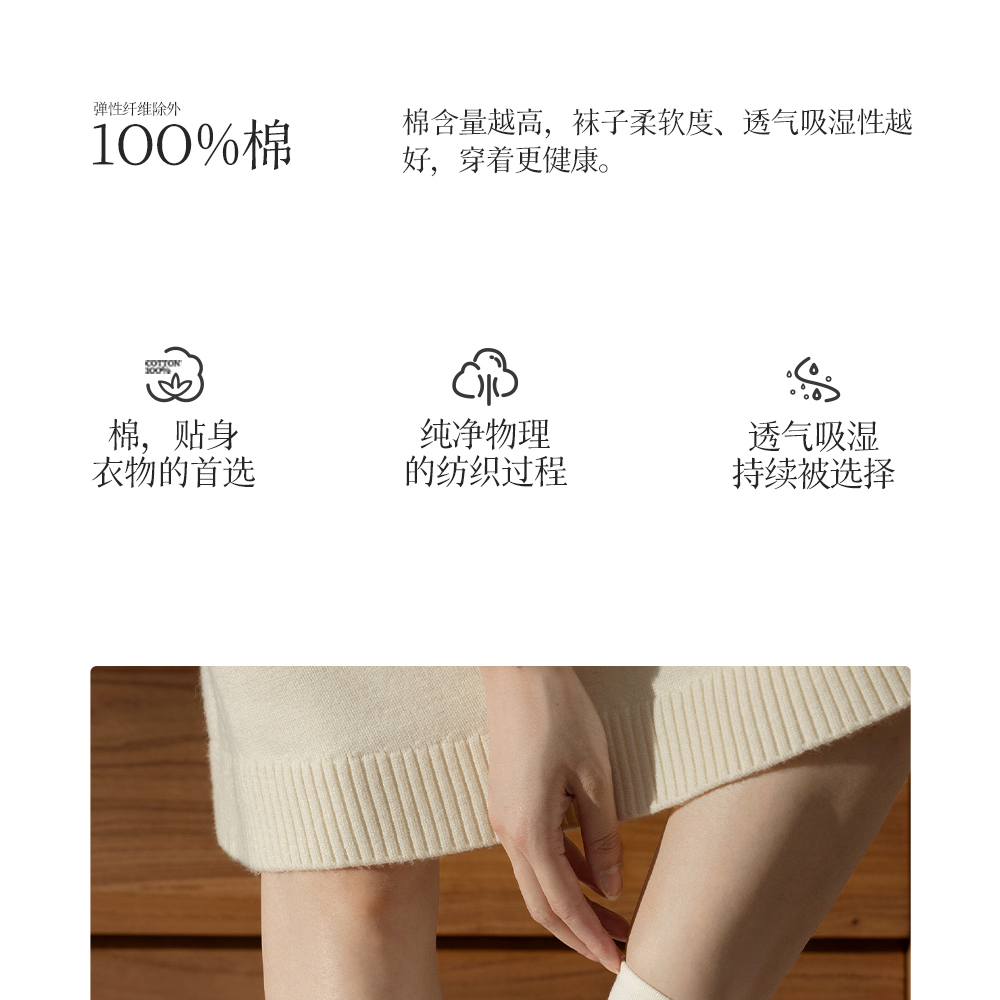 100% Cotton Socks for Women, Autumn and Winter Pure Cotton Mid-Calf Socks, Odor-Resistant, Sweat-Absorbent, Slouch Socks, All-Cotton White Seamless Socks