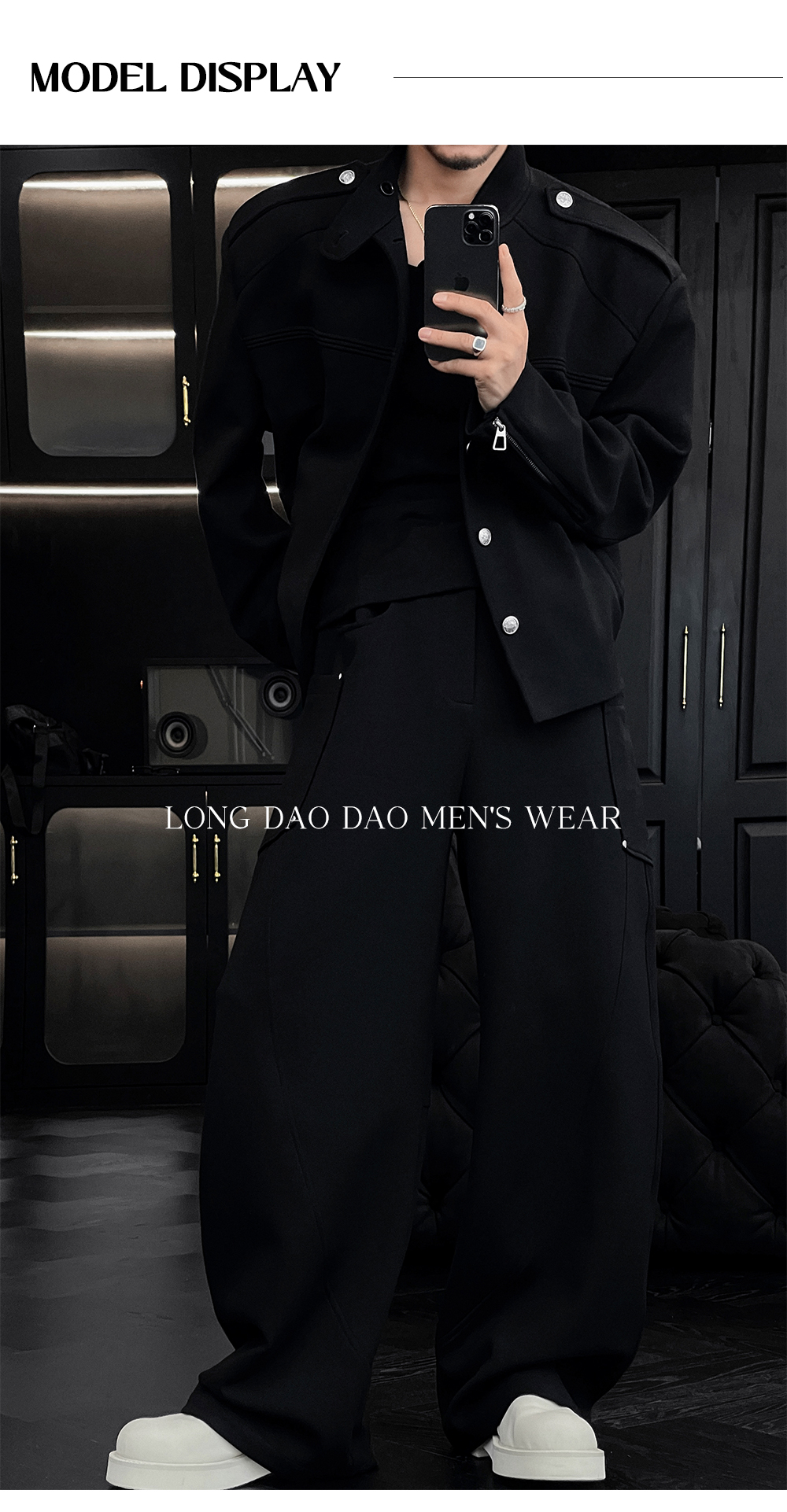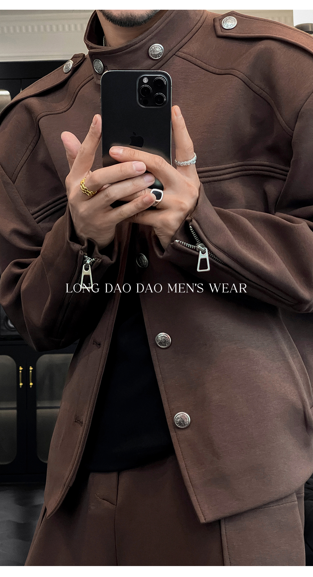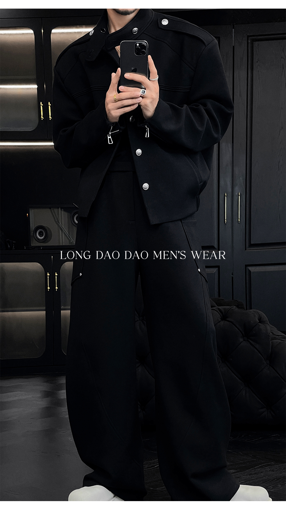 Longtao 2024 Autumn New Arrival Heavyweight Stand Collar Design Jacket Set Simple Casual Sports Long Pants Jacket