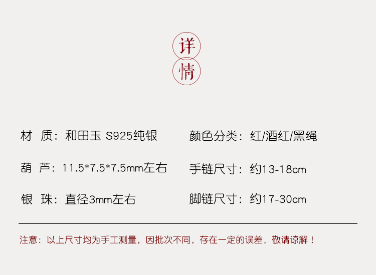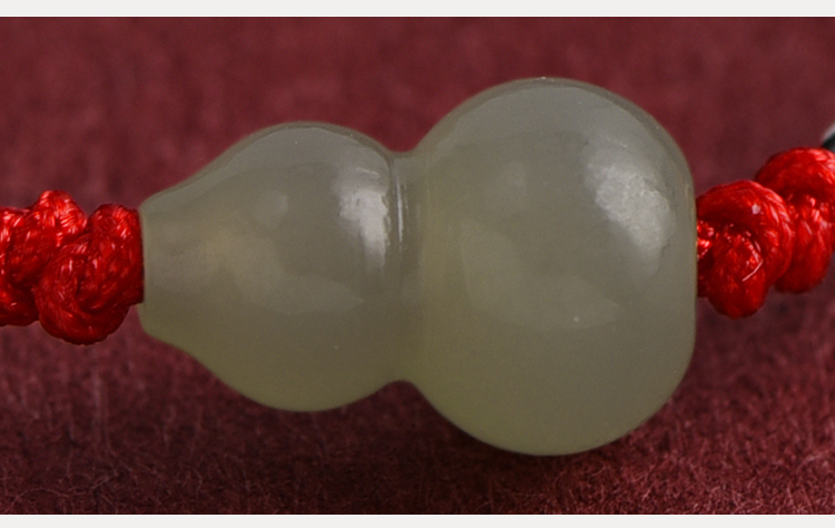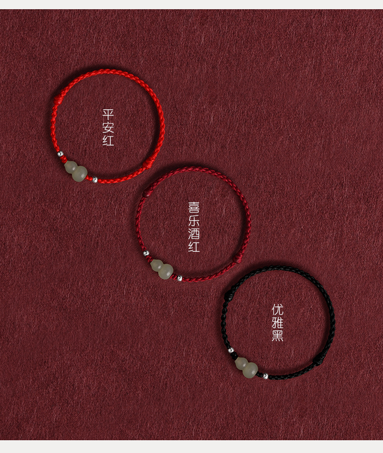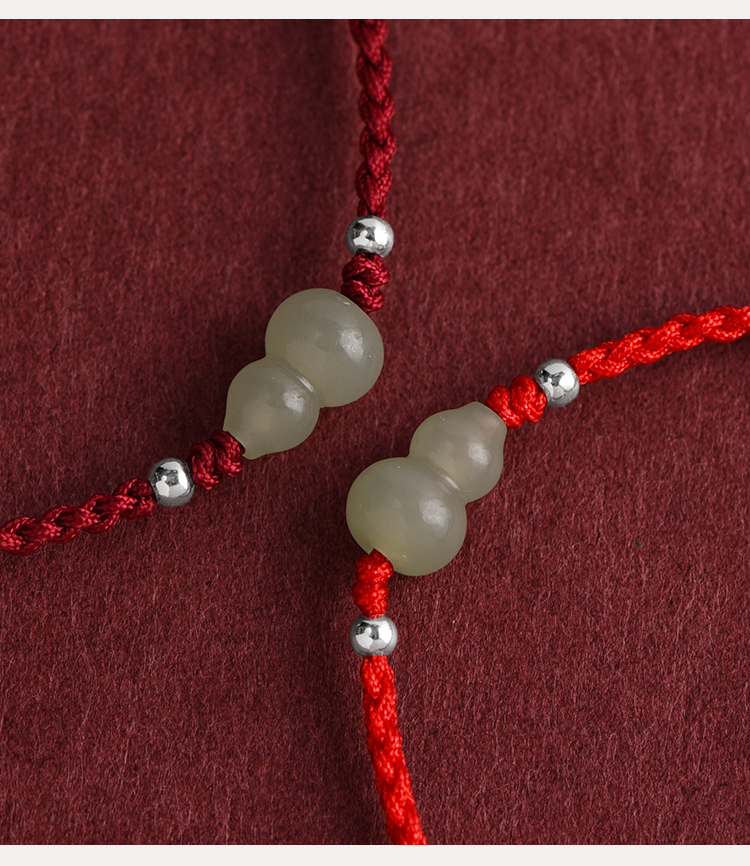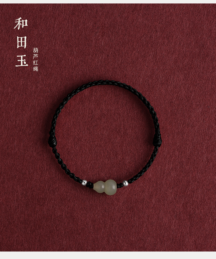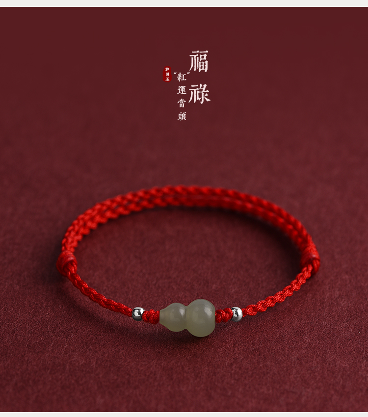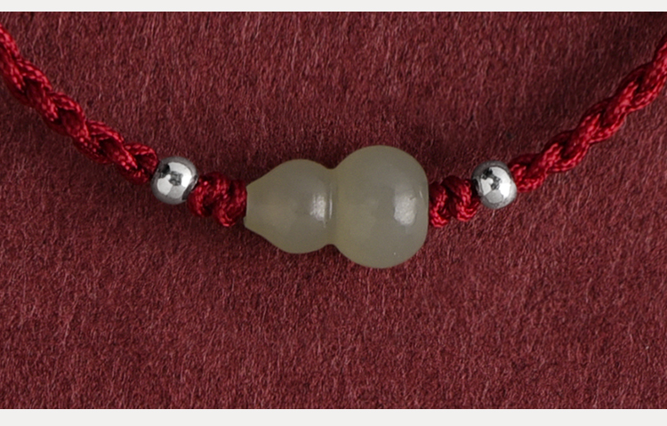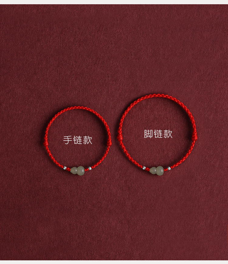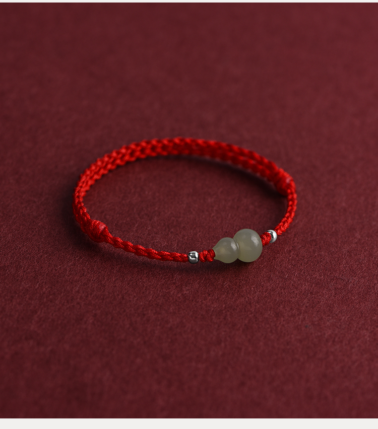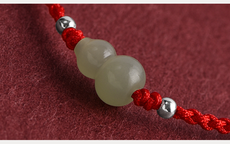 Natural Hetian Jade Small Gourd Red String Bracelet Anklet for Men and Women with Sterling Silver Transfer Beads for the Year of Birth, Safe Woven Bracelet