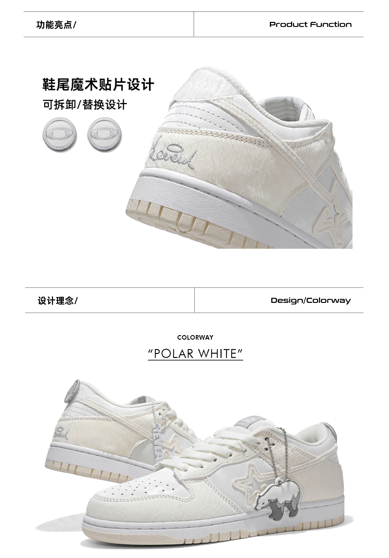 Ripstar/Explosion Star White Casual Star Sneakers for Women, Autumn and Winter New Sports Shoes [Polar Bear]
