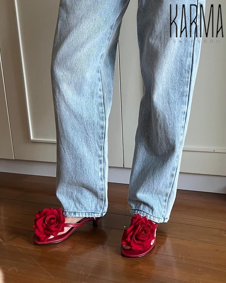Love Bug Herringbone Sandals, Vacation Style, Custom Three-Dimensional Flower Stiletto High Heels [China Authorized]
