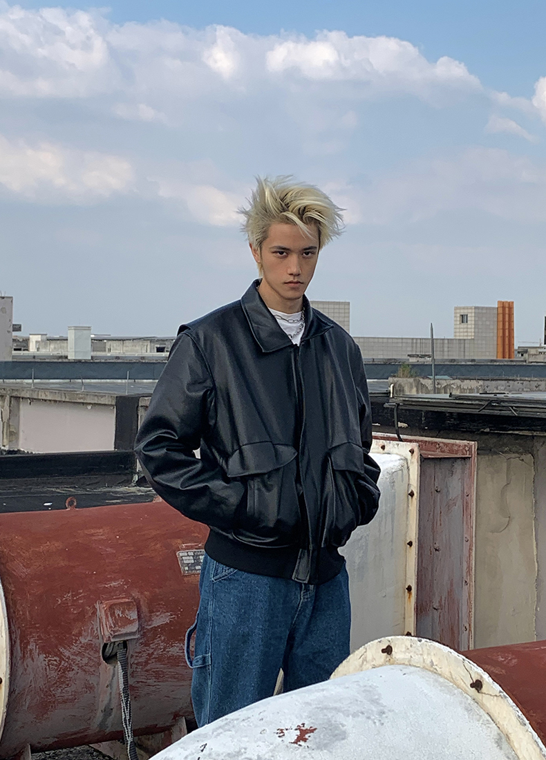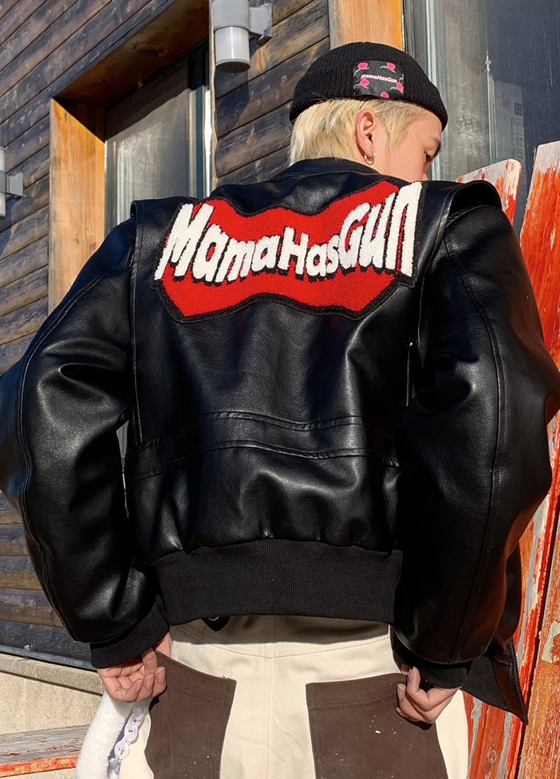 Mamahasgun American California Retro Towel Embroidery Contrasting Color Exaggerated Logo Loose Leather Jacket Cotton Jacket