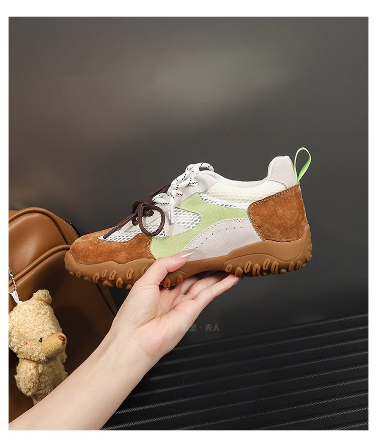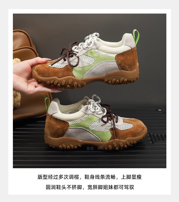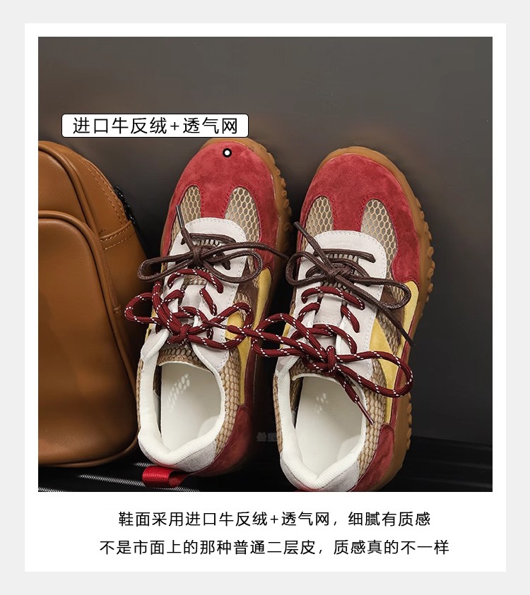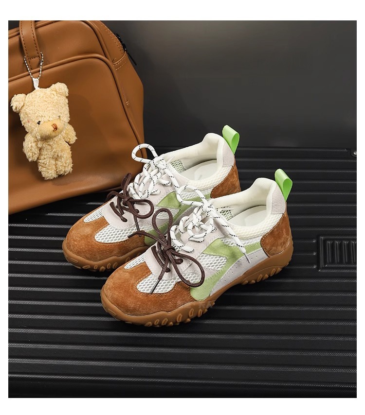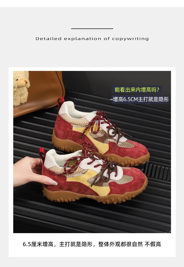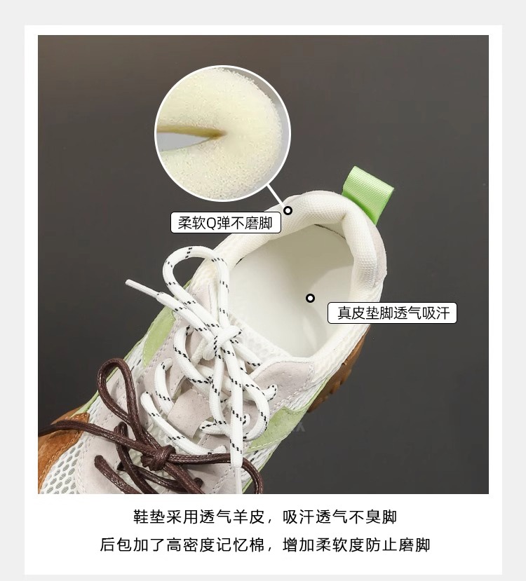 Sanli Genuine Leather Versatile Height-Increasing Casual Shoes for Women 2025 Spring/Summer New Thick-Soled Breathable Mesh German Training Shoes