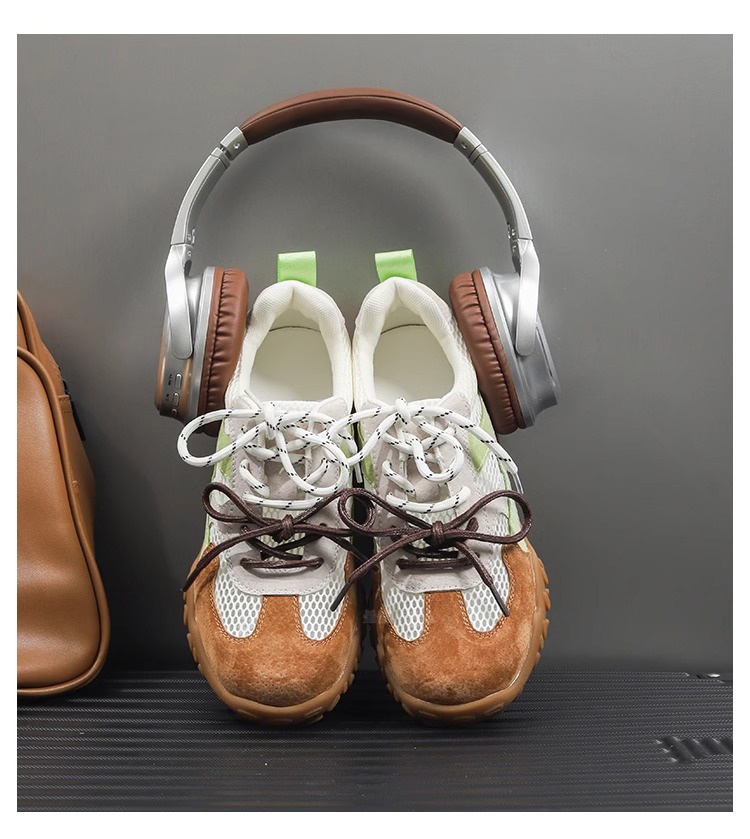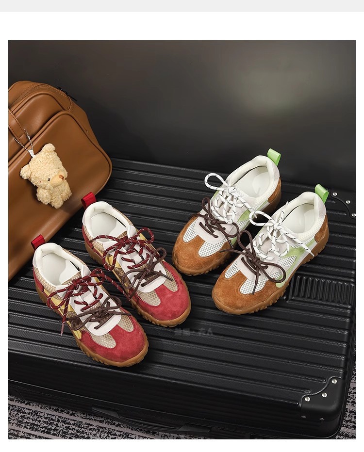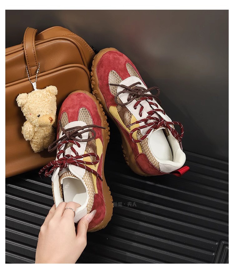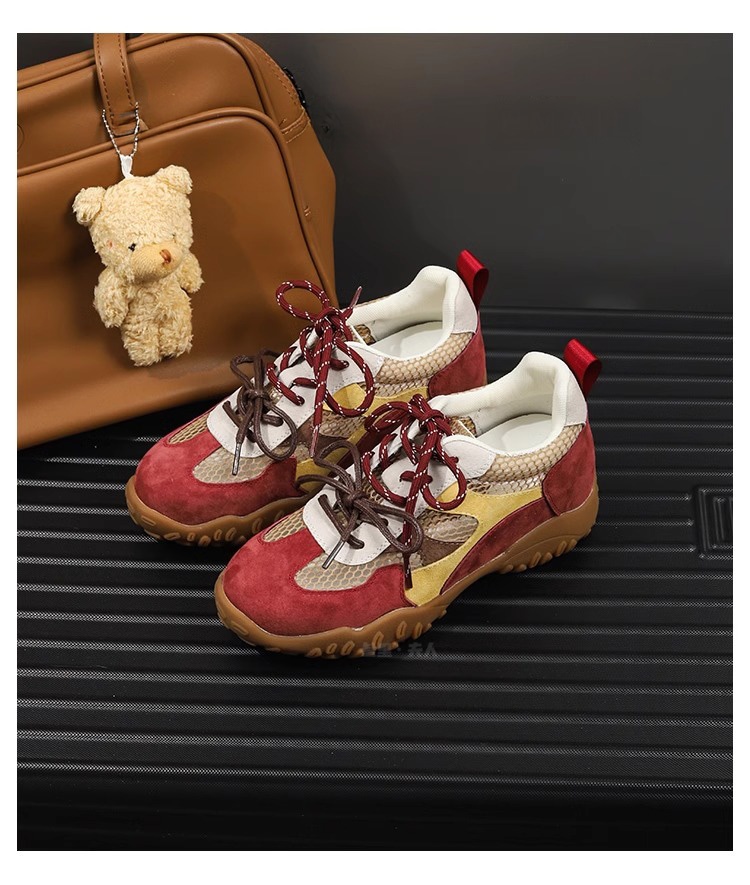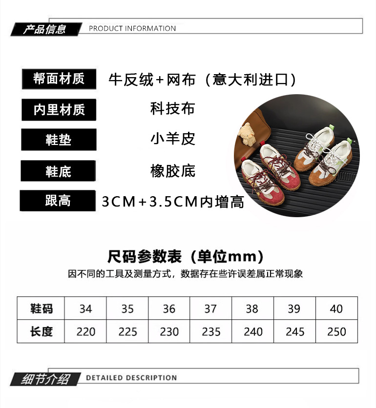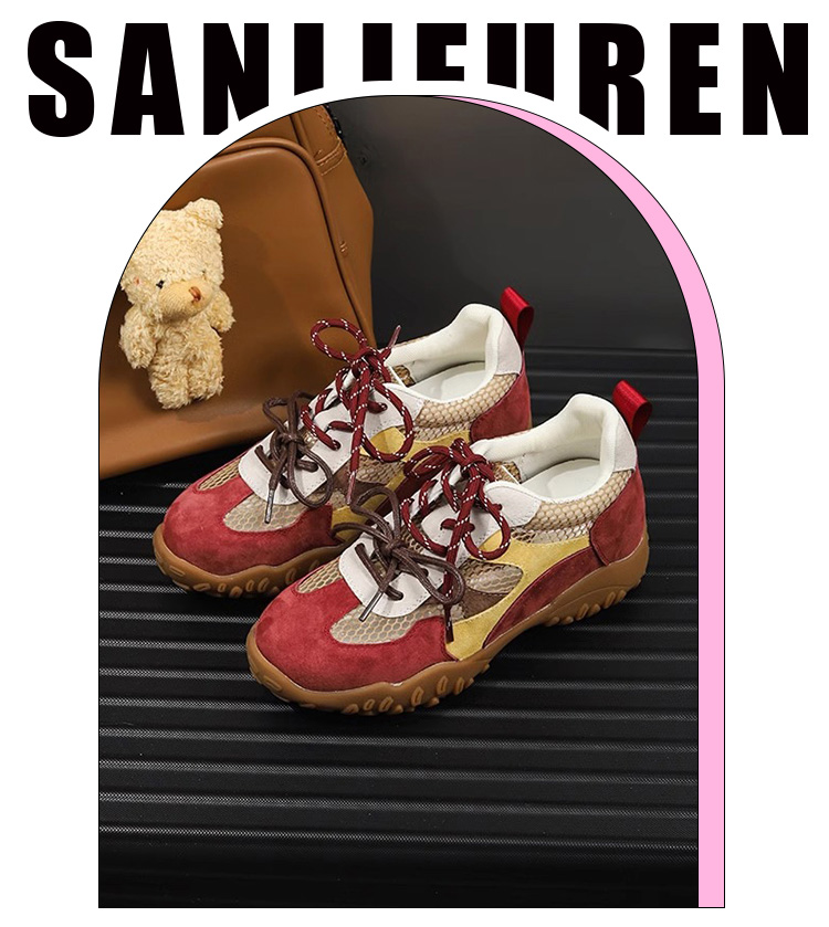 Sanli Genuine Leather Versatile Height-Increasing Casual Shoes for Women 2025 Spring/Summer New Thick-Soled Breathable Mesh German Training Shoes
