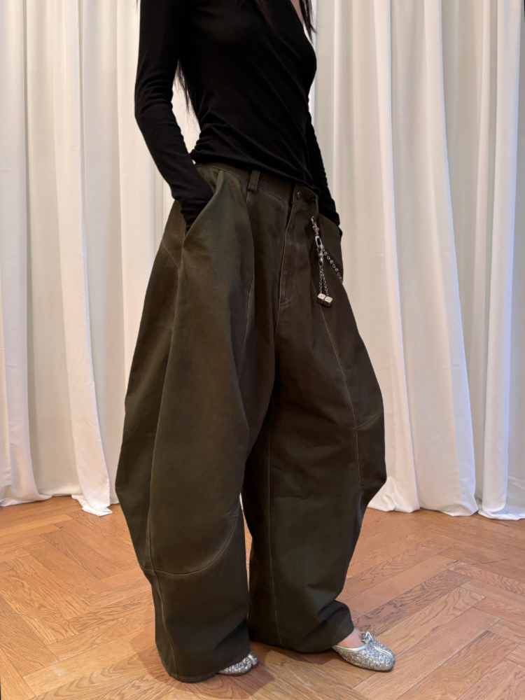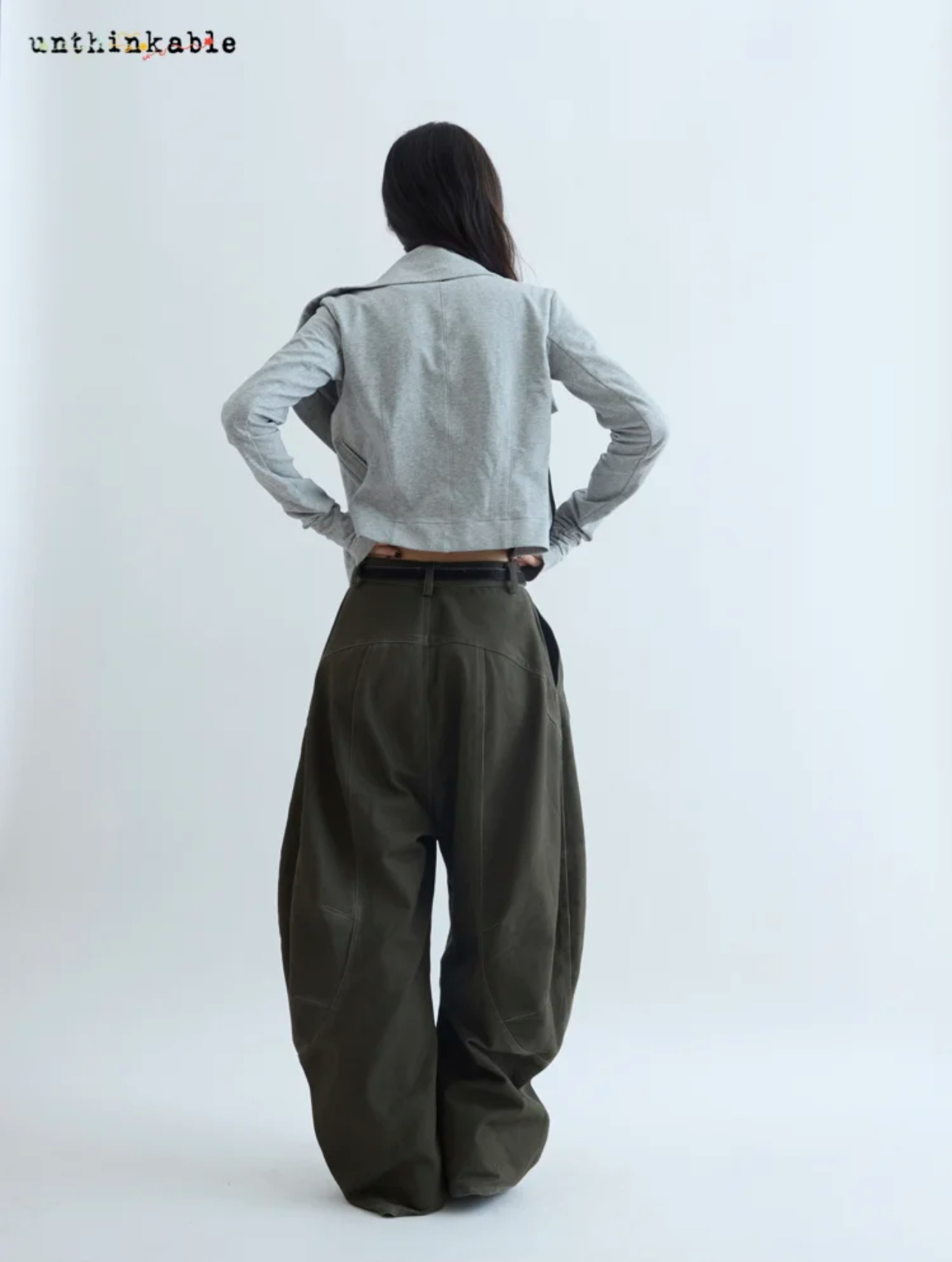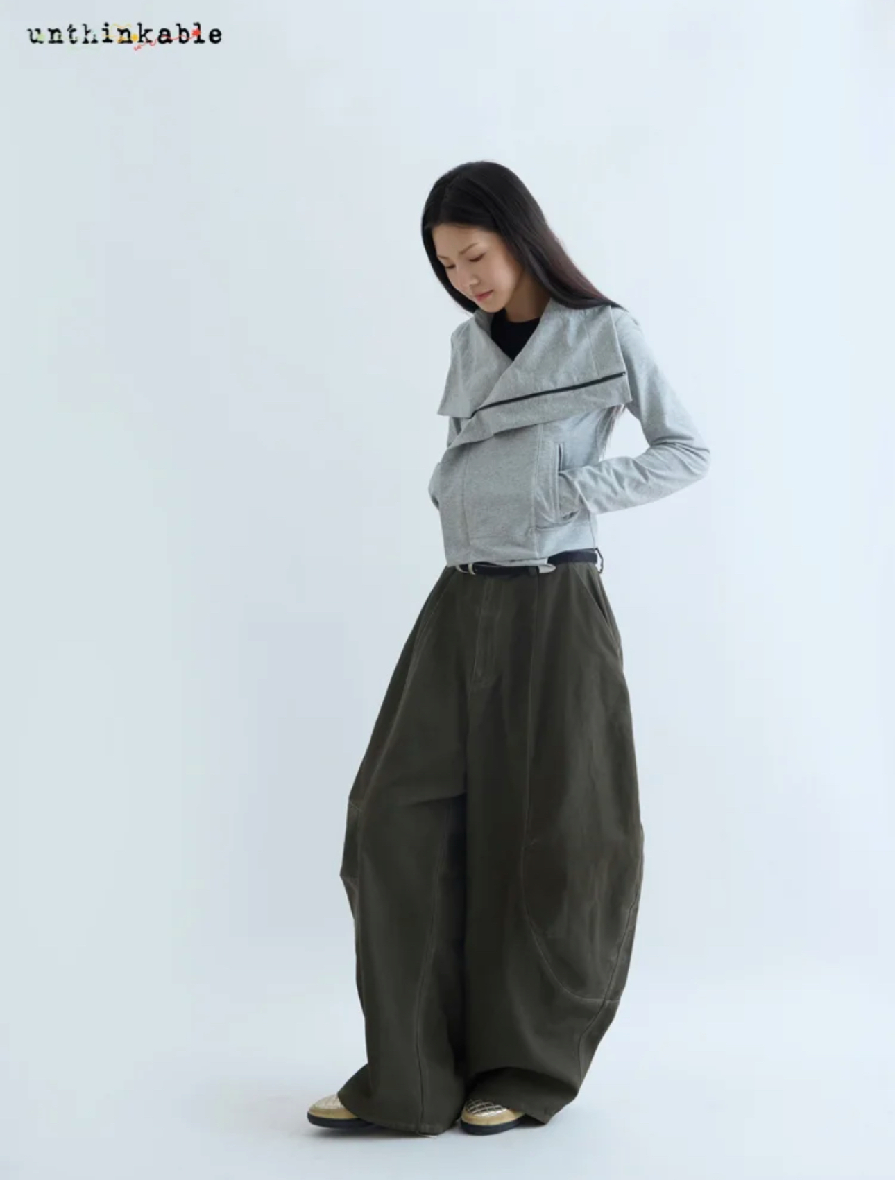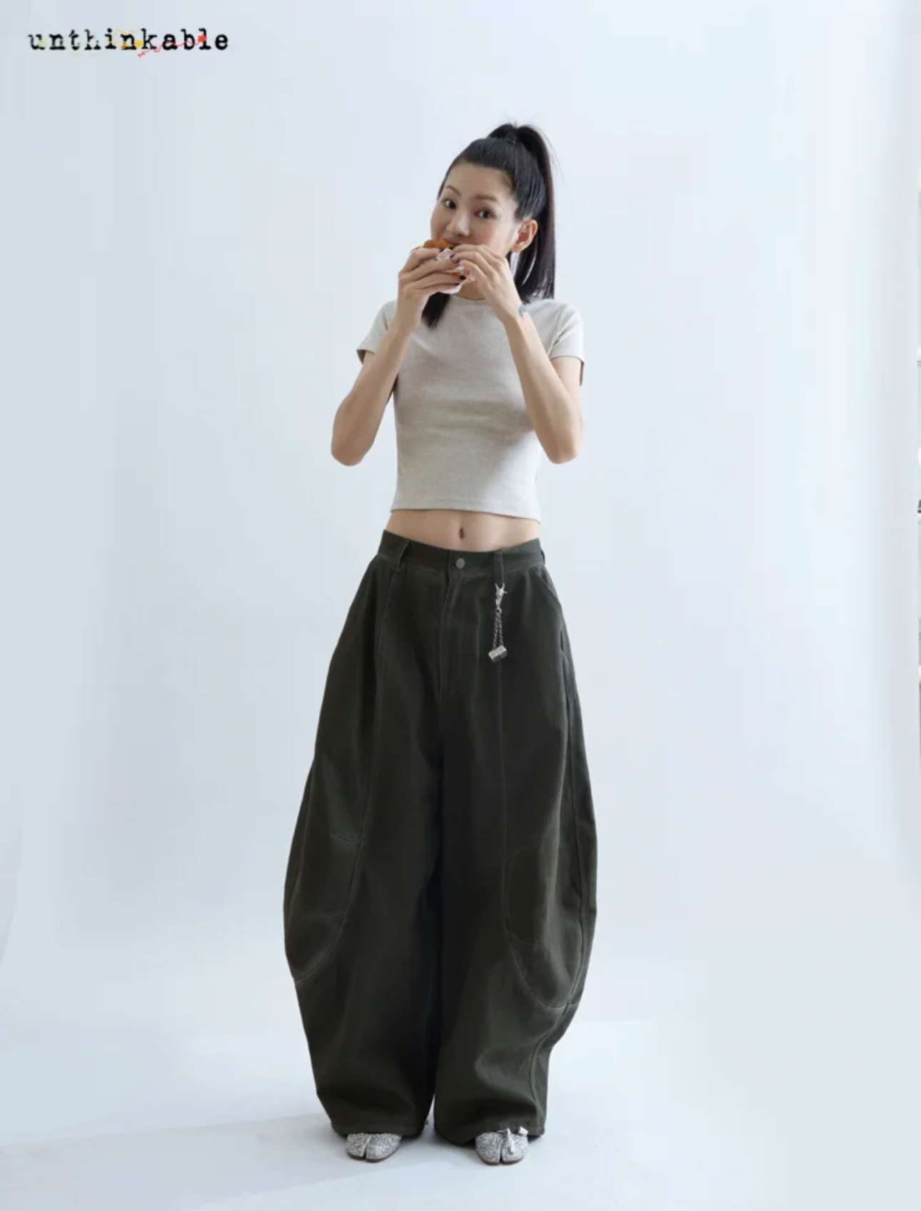 Unthinkable* Crescent Pants - Moon Phase 02 Moon Phases-02 Two-Tone Versatile Silhouette Washed Long Pants